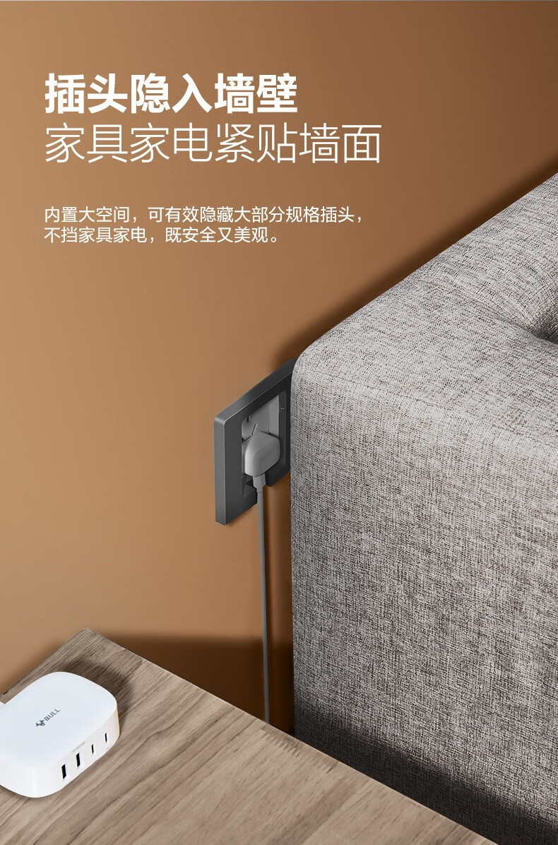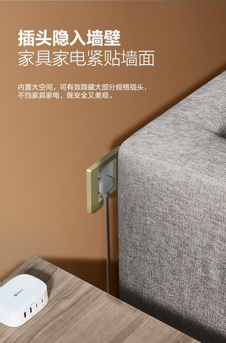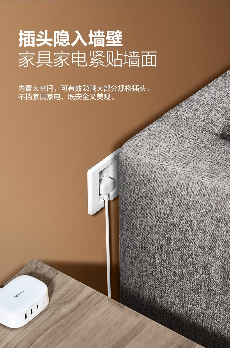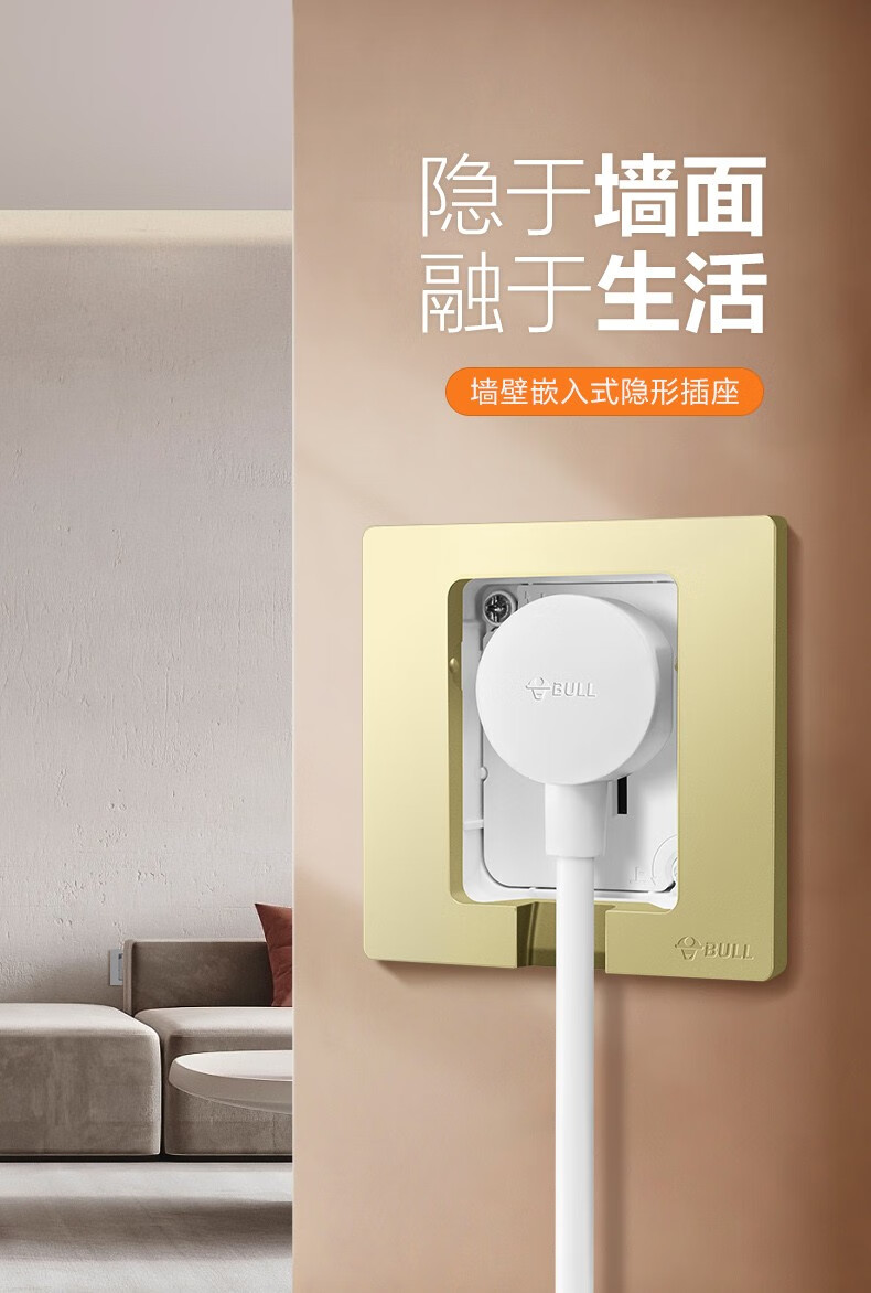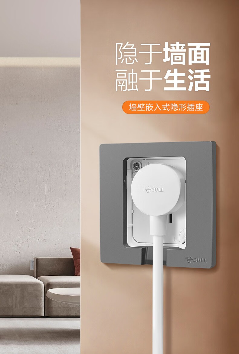 公牛(BULL)插座 86型墙壁开关 嵌入式插座 隐藏式插座 内嵌式 隐藏式五孔插座-白色