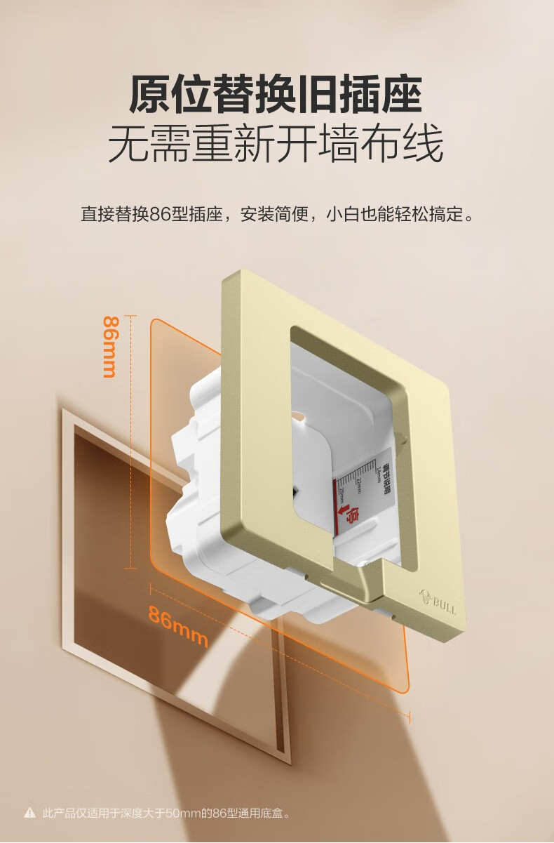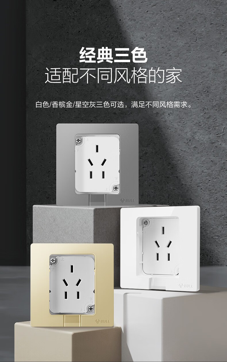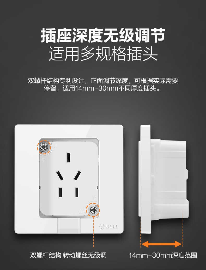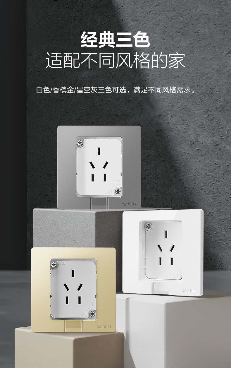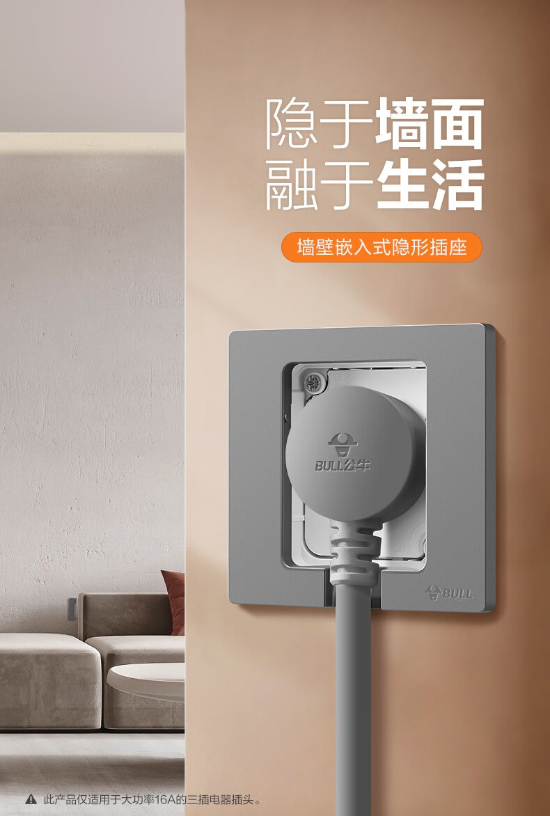 公牛(BULL)插座 86型墙壁开关 嵌入式插座 隐藏式插座 内嵌式 隐藏式五孔插座-白色