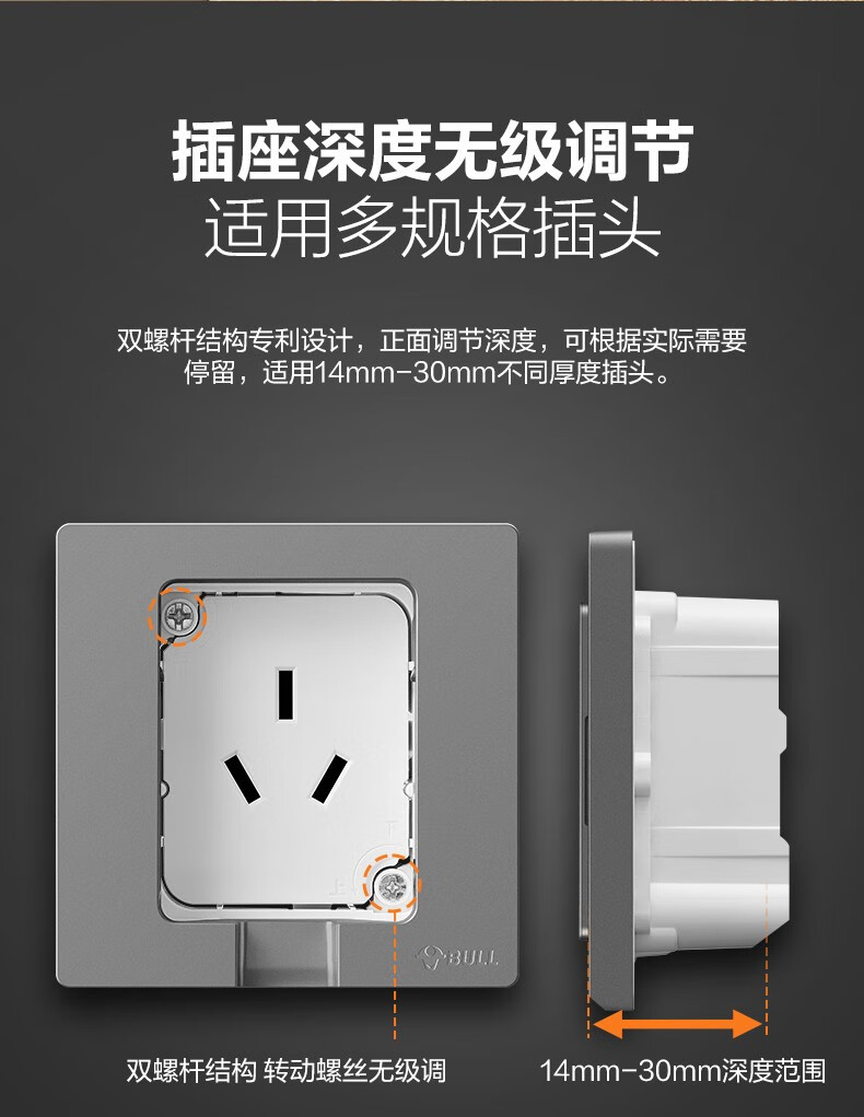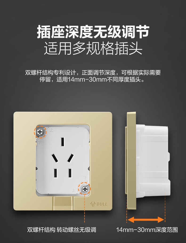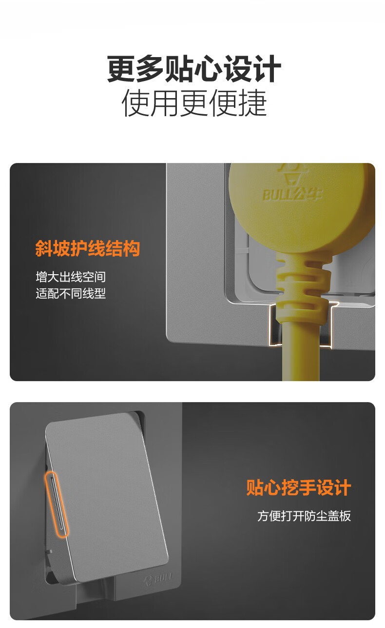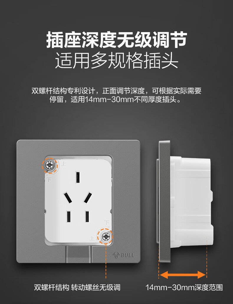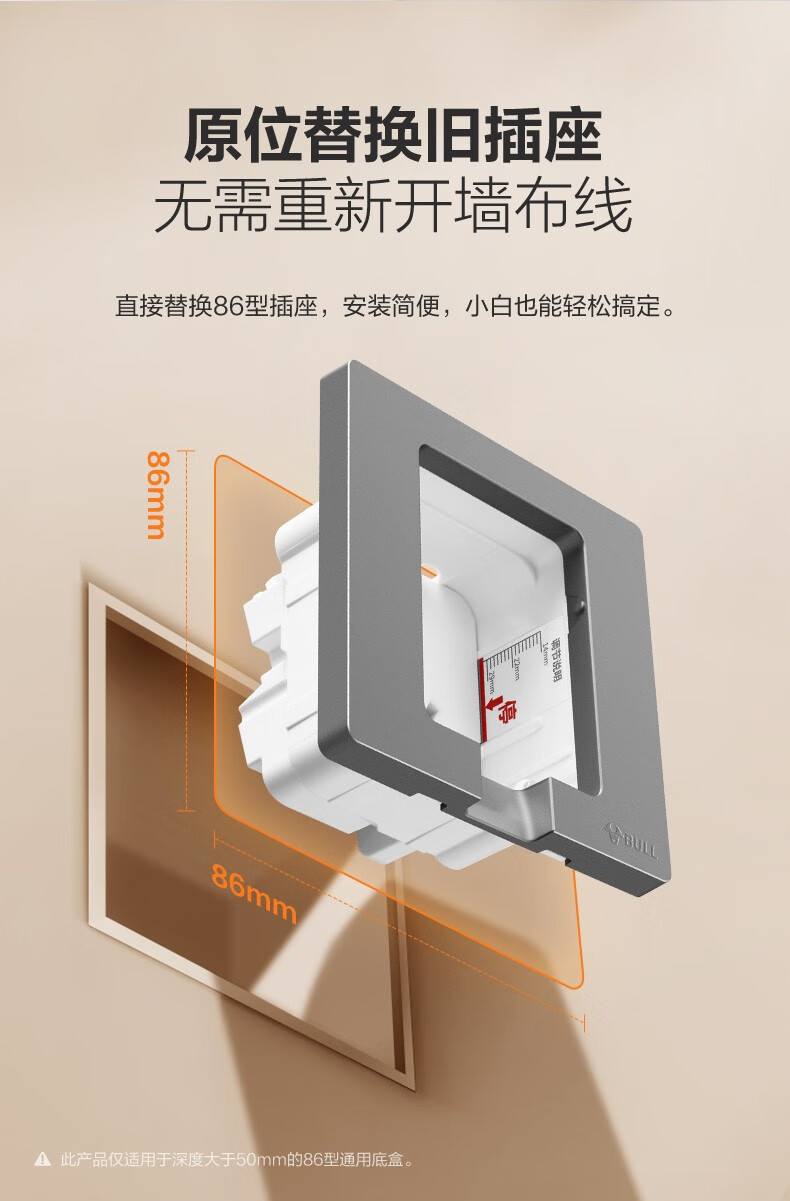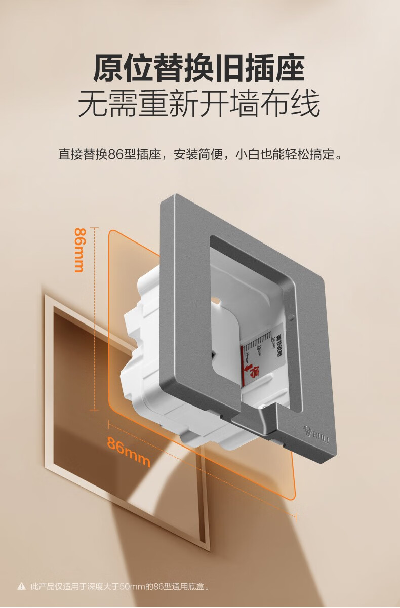 公牛(BULL)插座 86型墙壁开关 嵌入式插座 隐藏式插座 内嵌式 隐藏式五孔插座-白色