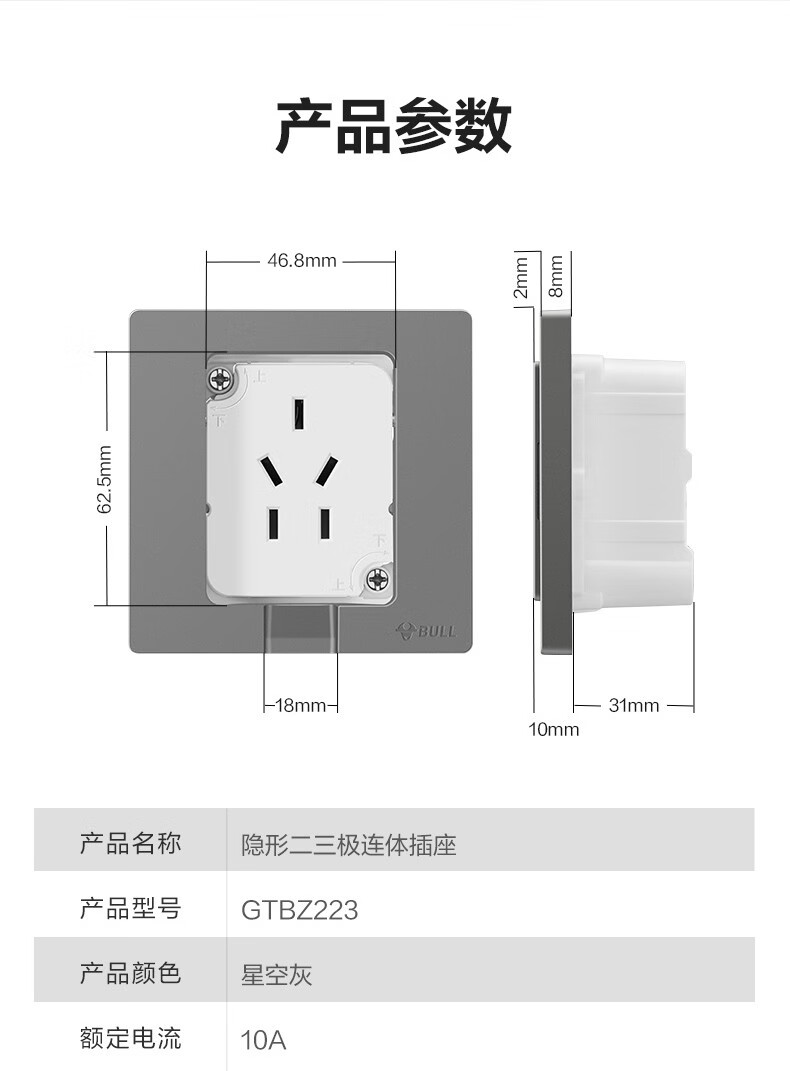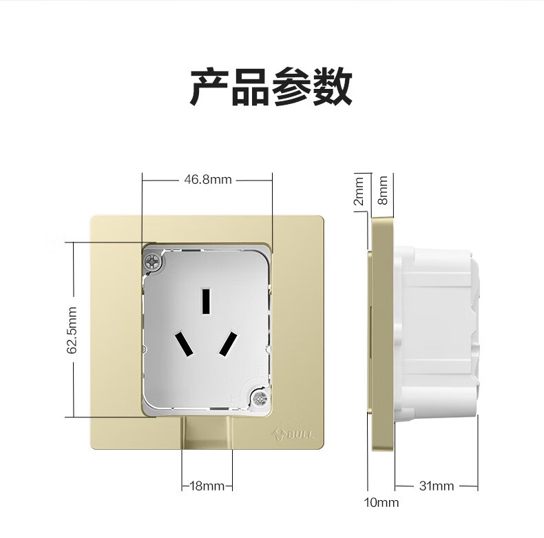 公牛(BULL)插座 86型墙壁开关 嵌入式插座 隐藏式插座 内嵌式  隐藏式五孔插座-白色