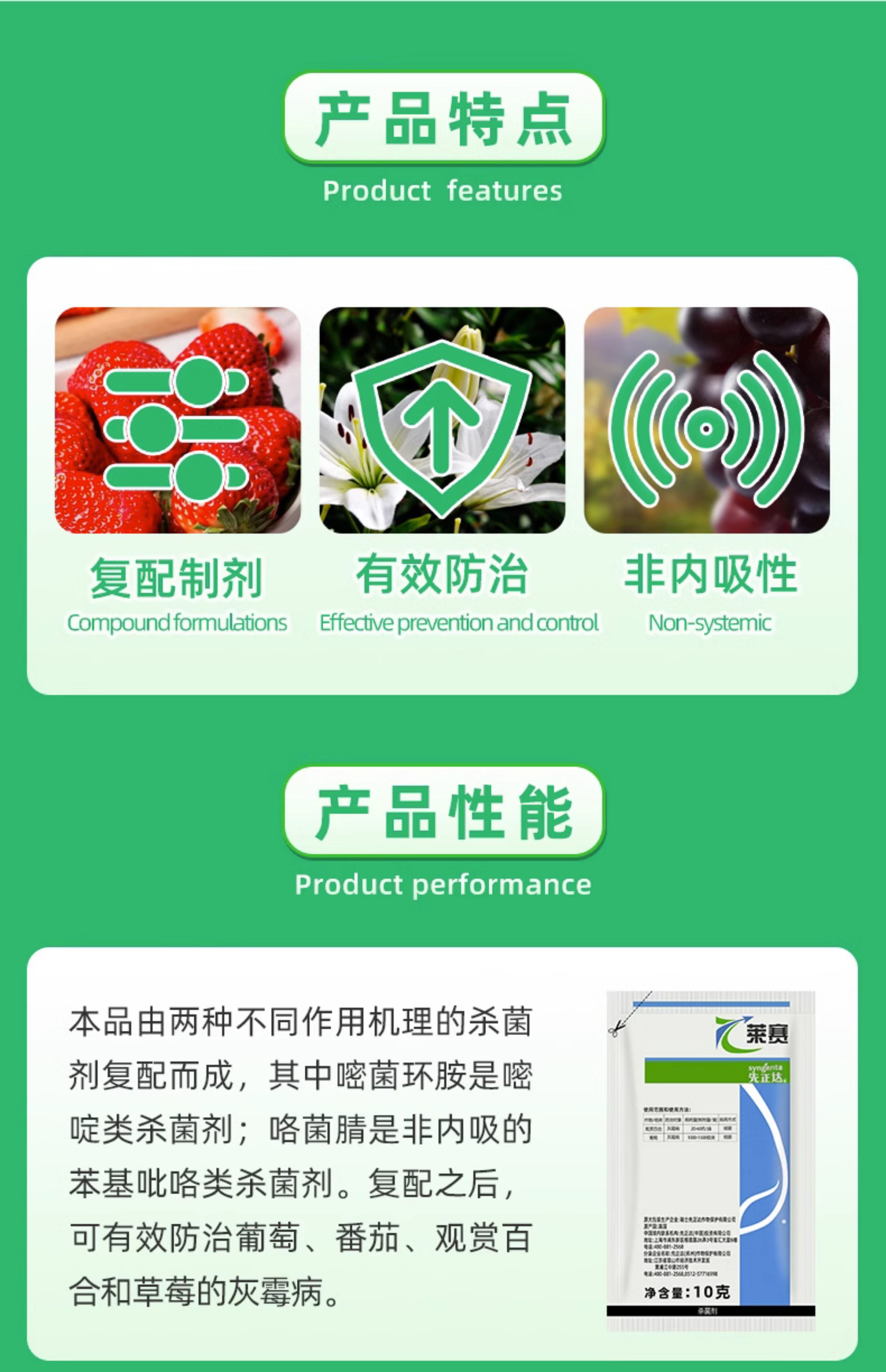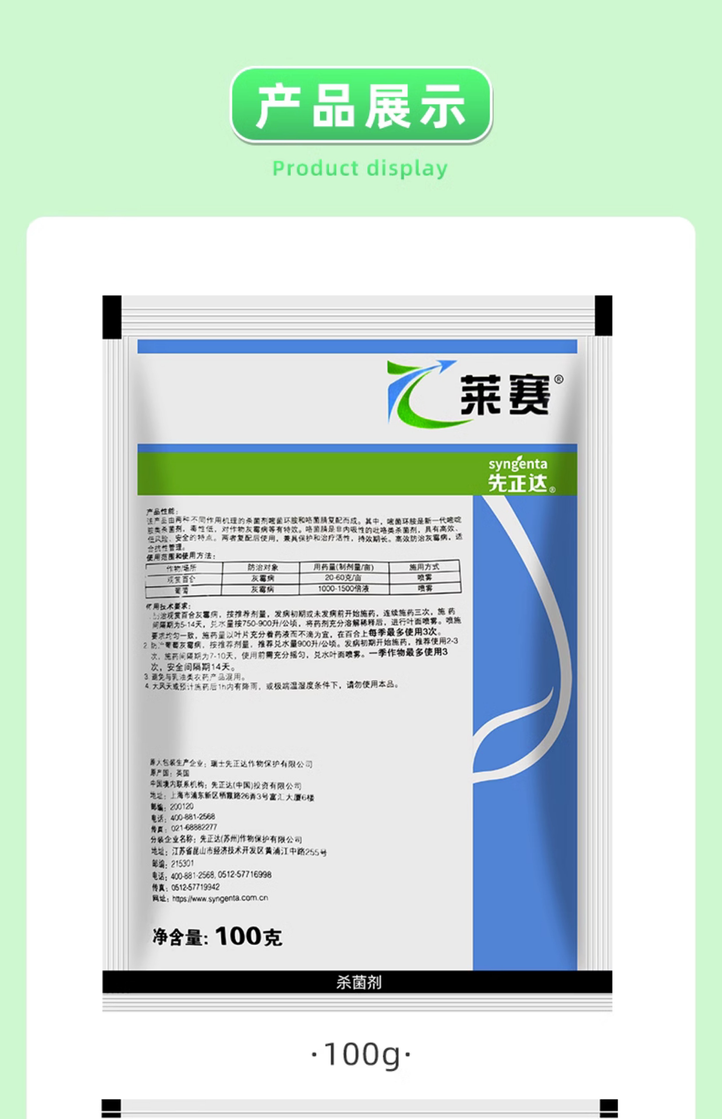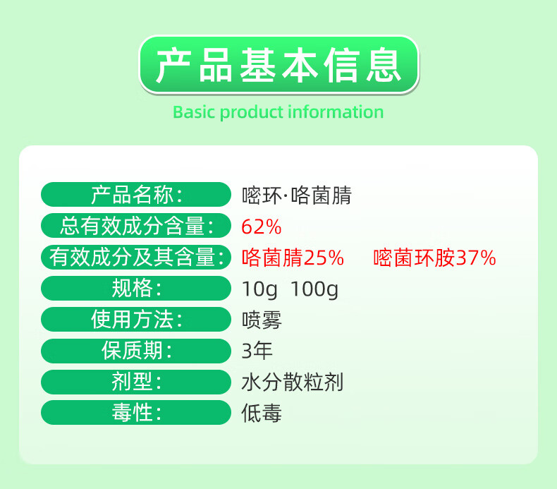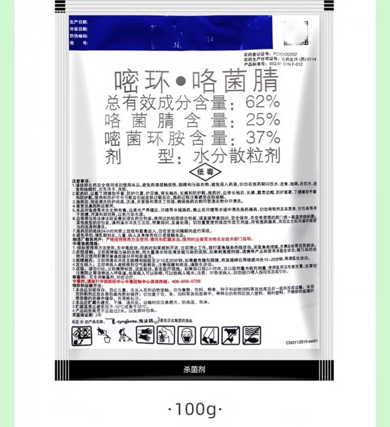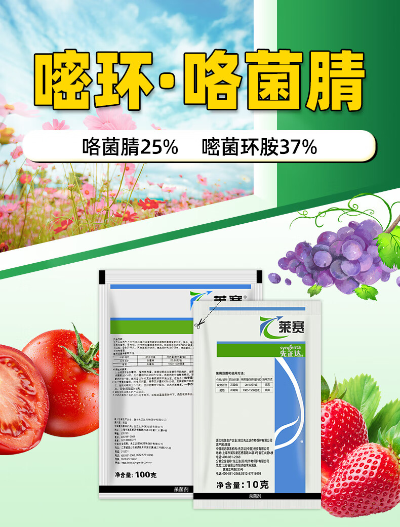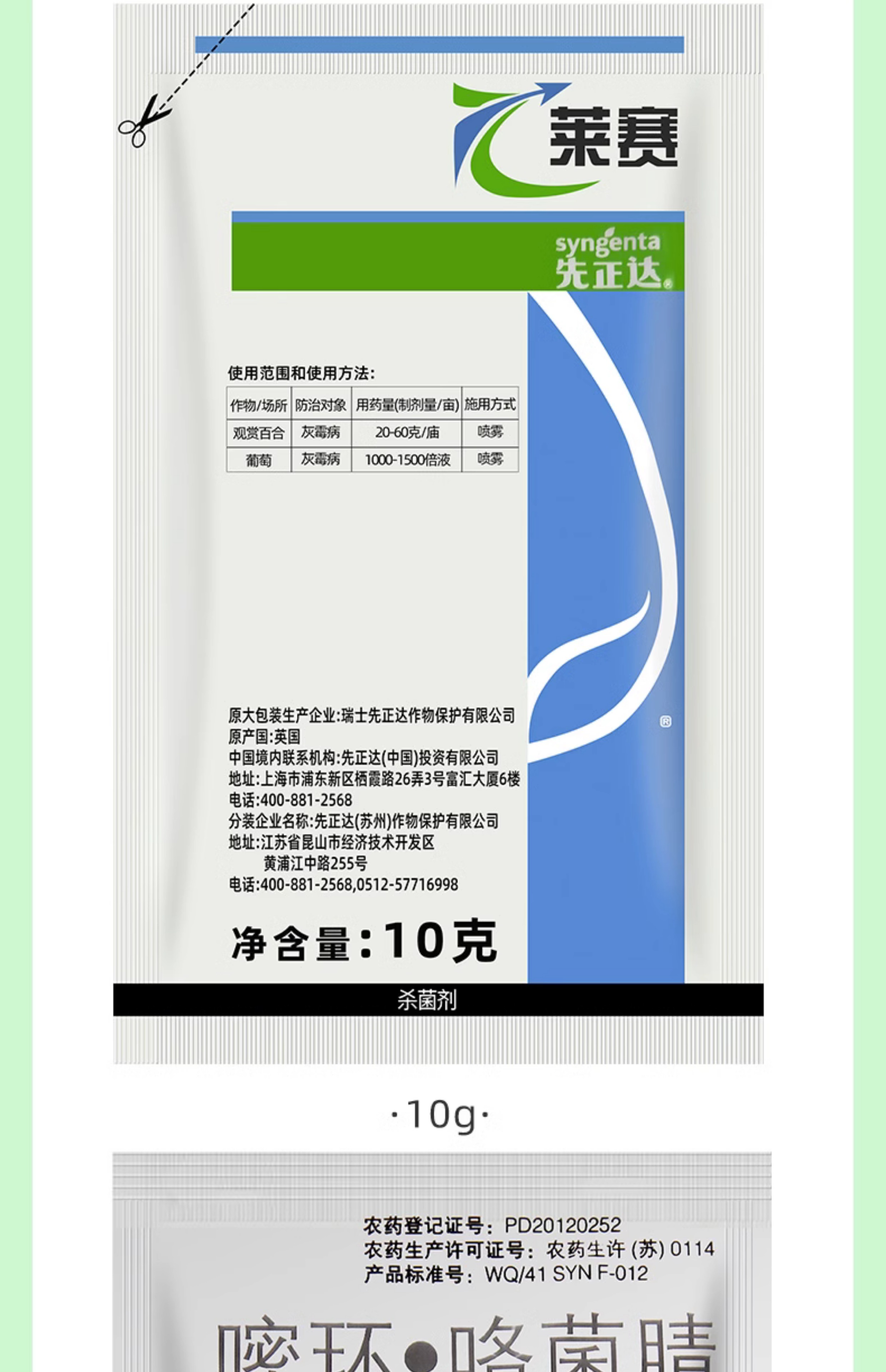 先正达莱赛62%嘧环菌胺咯菌腈花卉果树百合葡萄灰霉病农药杀菌剂 10g