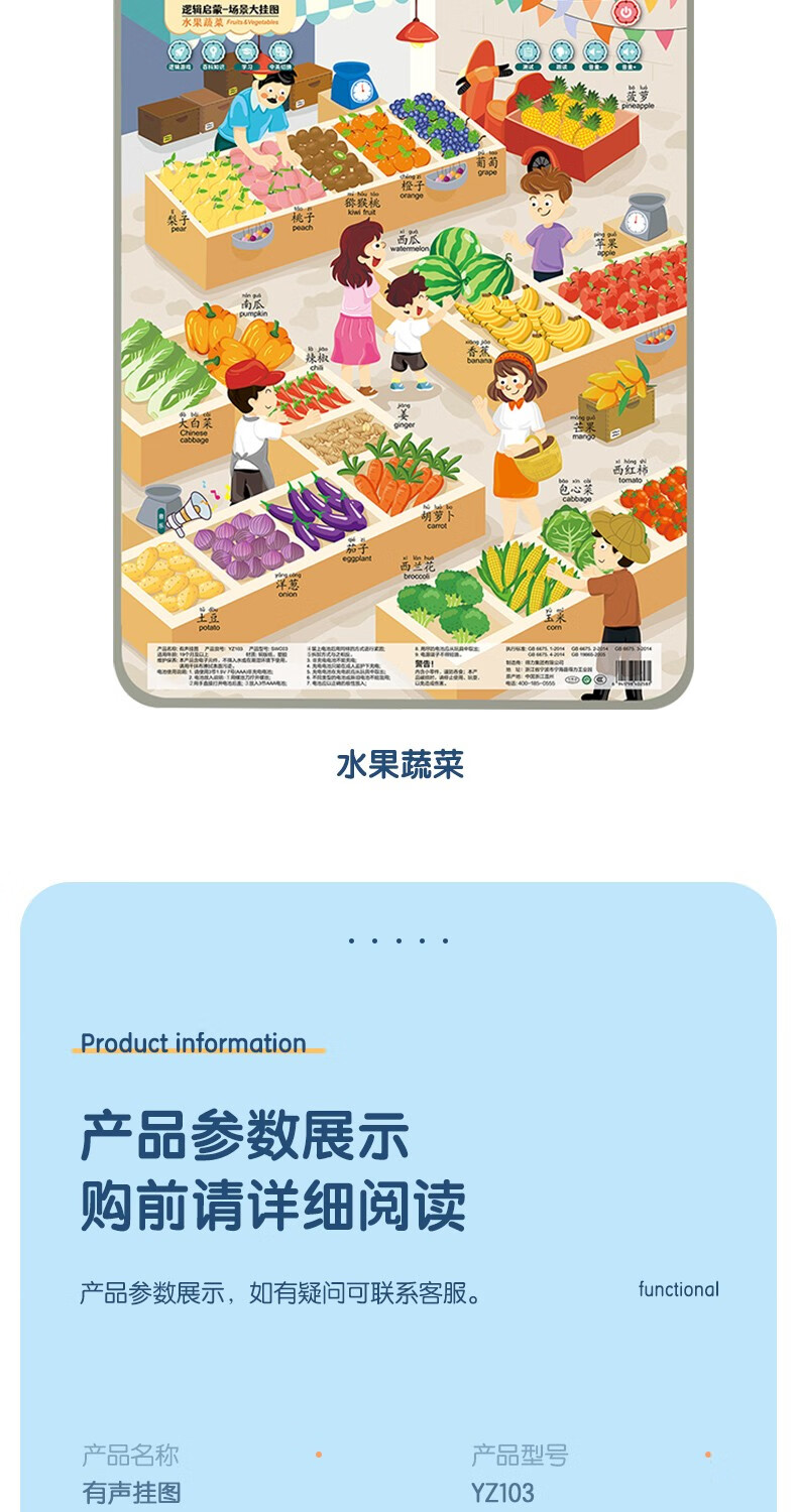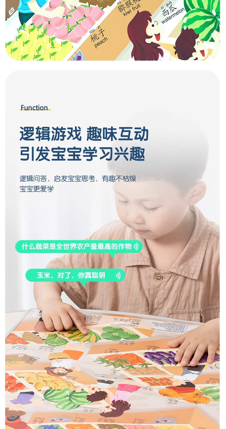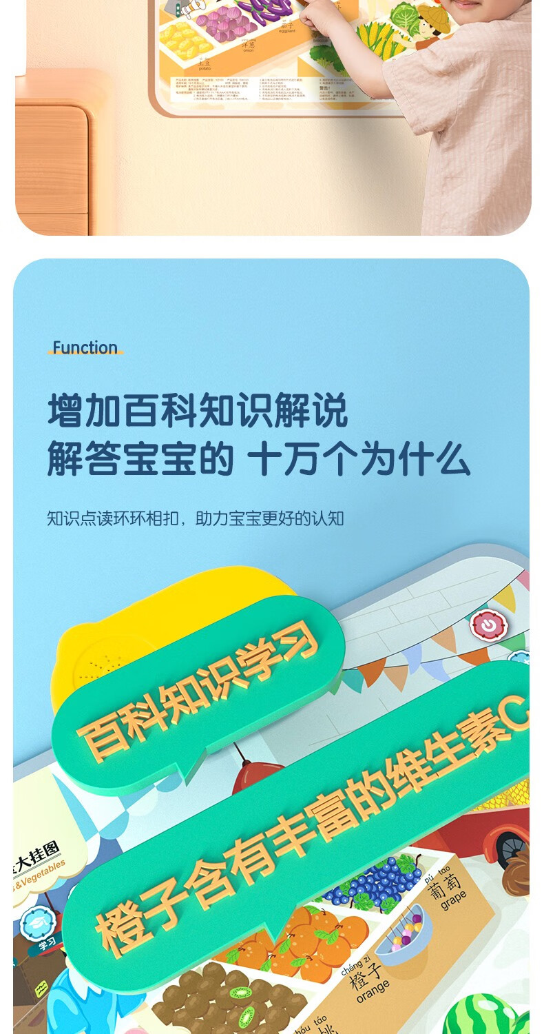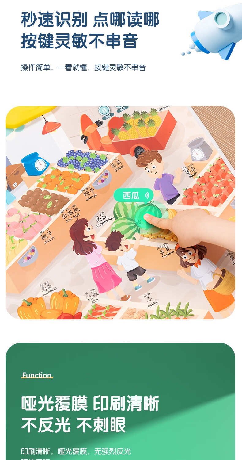 得力(deli)有声挂图儿童早教认知动物拼音数字幼儿启蒙宝宝益智学习玩具 【水果蔬菜】中英双语 附挂钩+电池