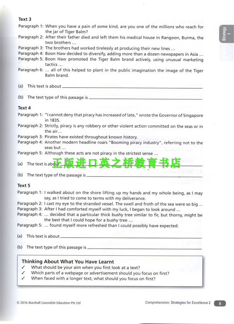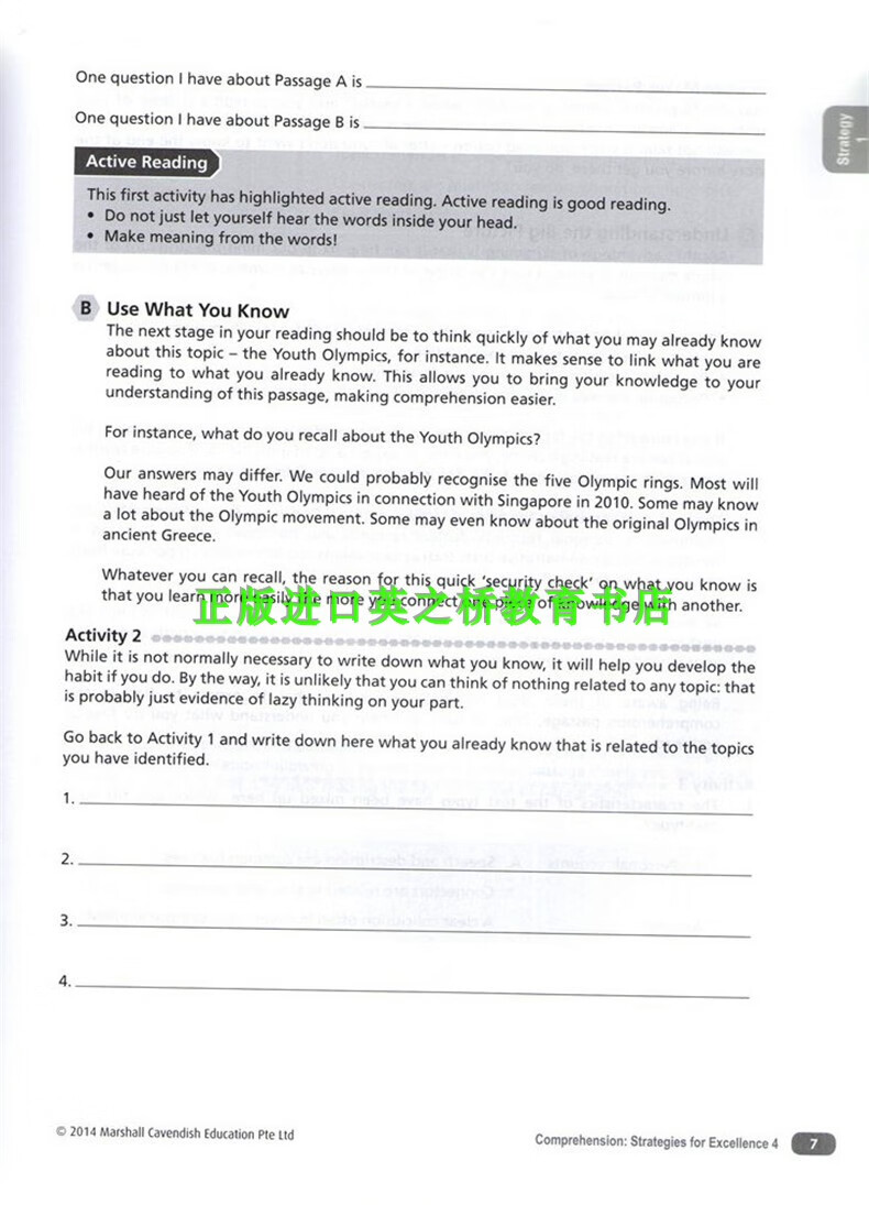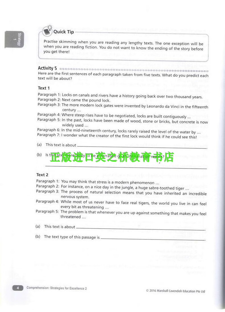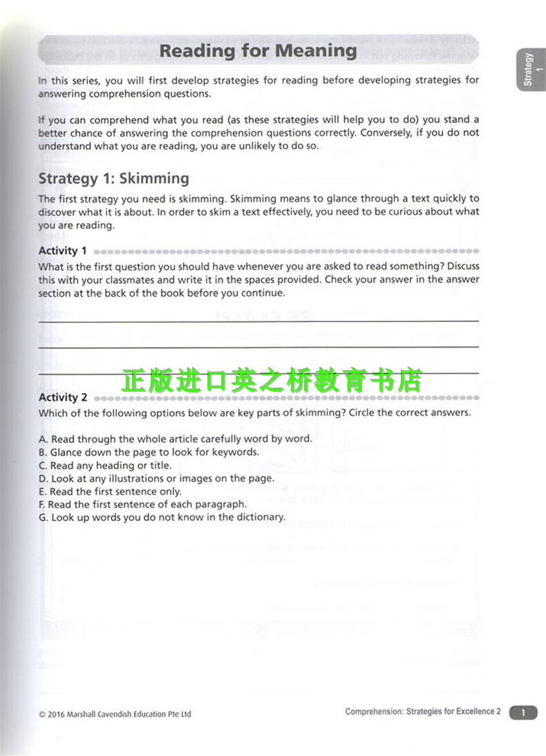 正版进口 新加坡中学英语卓越阅读理解策略 Comprehension strategies for Excellence 新版7-10年级英文原版 教授阅读技巧 通过练习和思维图解来掌握阅读技巧 中一