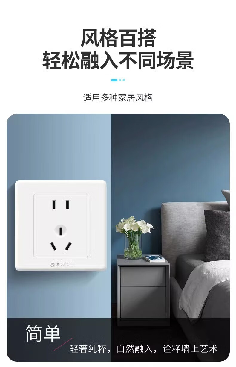Internationaler Elektriker Typ 86, komplett aus Kunststoff, weiß, verdeckte Schaltersteckdose, Fünf-Loch-Steckdose, Haushalt, Ein-Einzel-Doppelsteuerung, Fünf-Loch-Lichtschalter, Ein-Ein-Einzelsteuerung