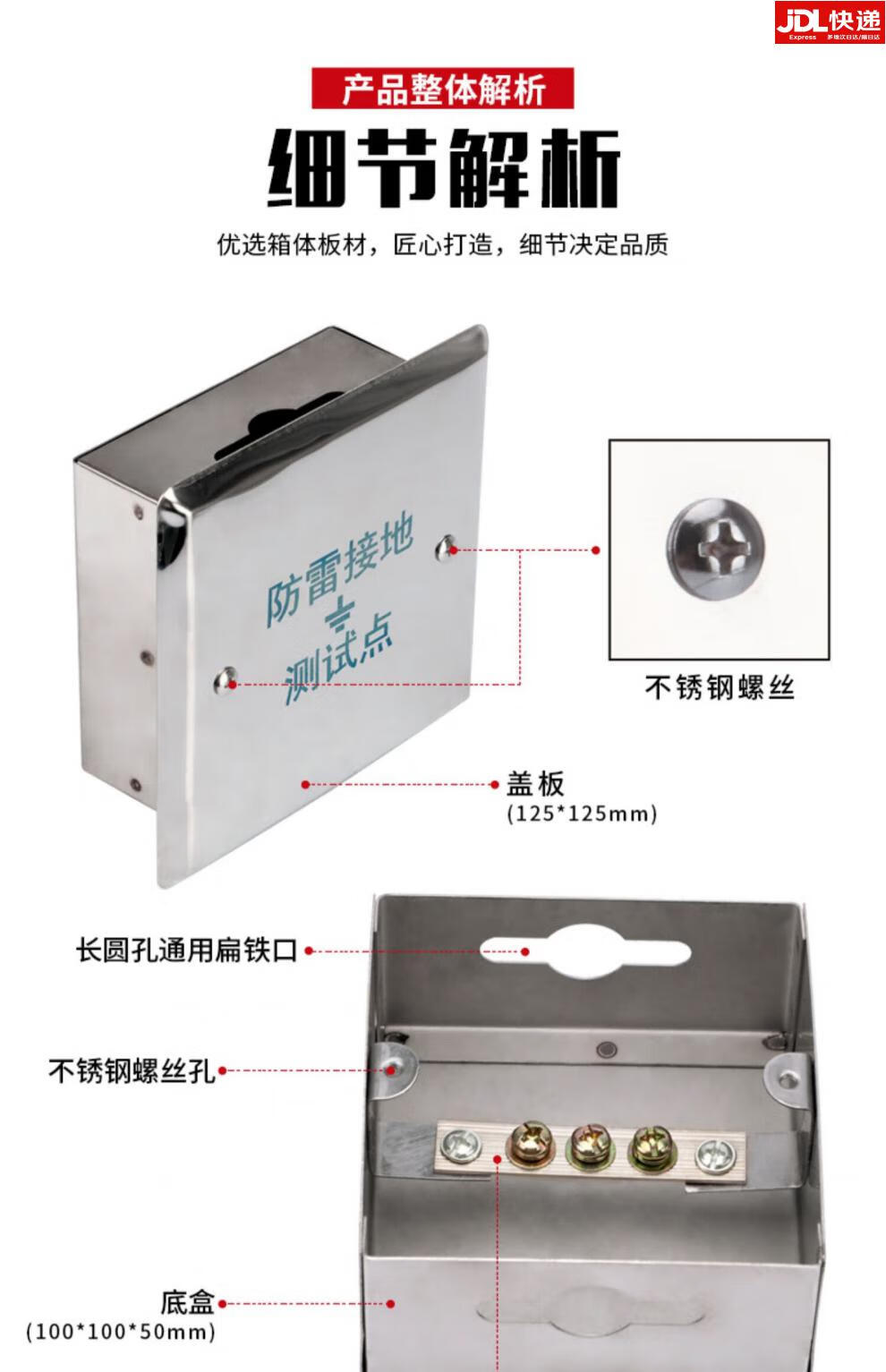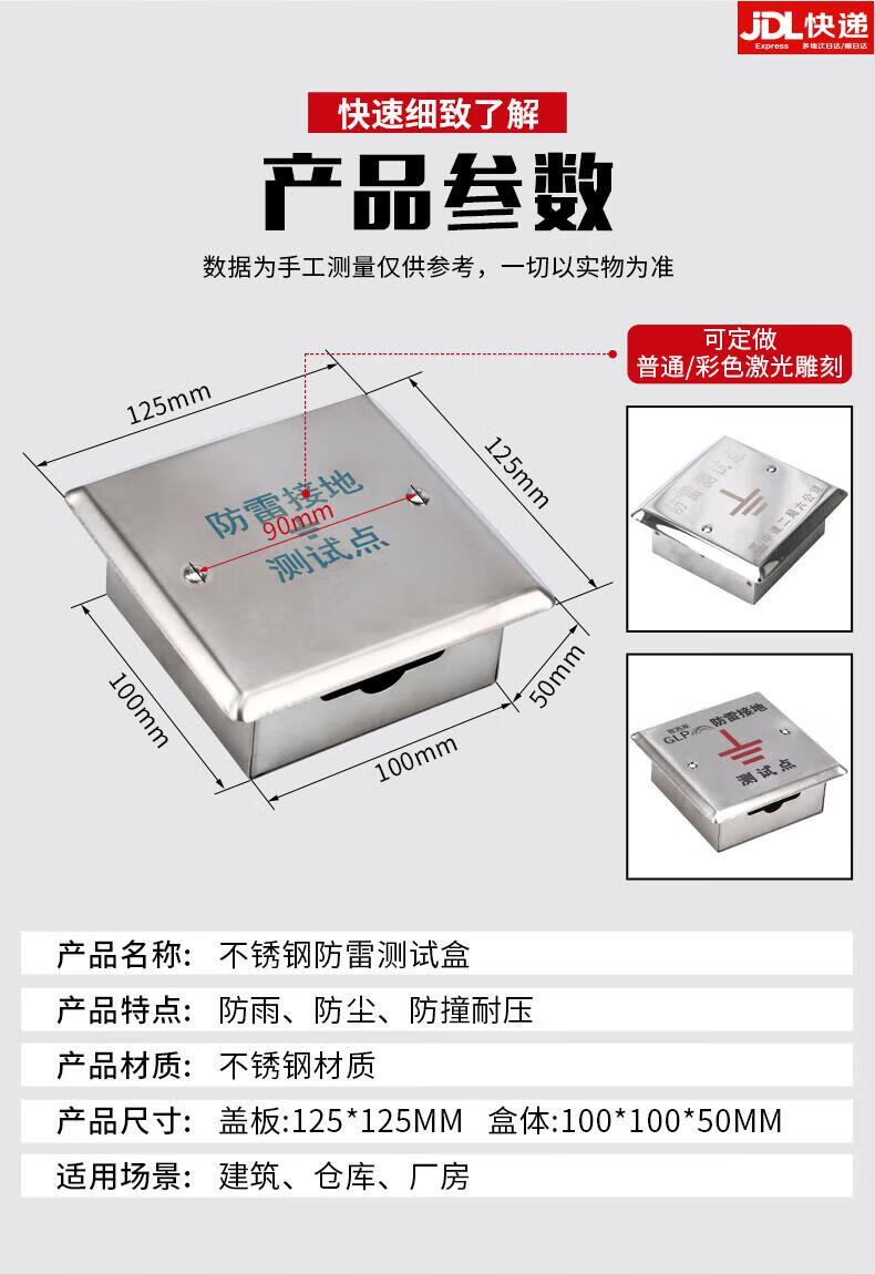 鹏艾鑫不锈钢304防雷接地点盒避雷箱检测电阻箱预埋盒10/10 100*100*50mm(带铜排)