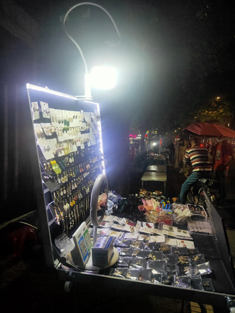 Yilin Nachtmarktstand, wiederaufladbares Licht, Straßenstandlicht, superhelles warmes Licht, unplugged, Desktop-Clip-Ständer, tragbare LED-Beleuchtung, 1 Meter tragbarer Ständer – kein Licht