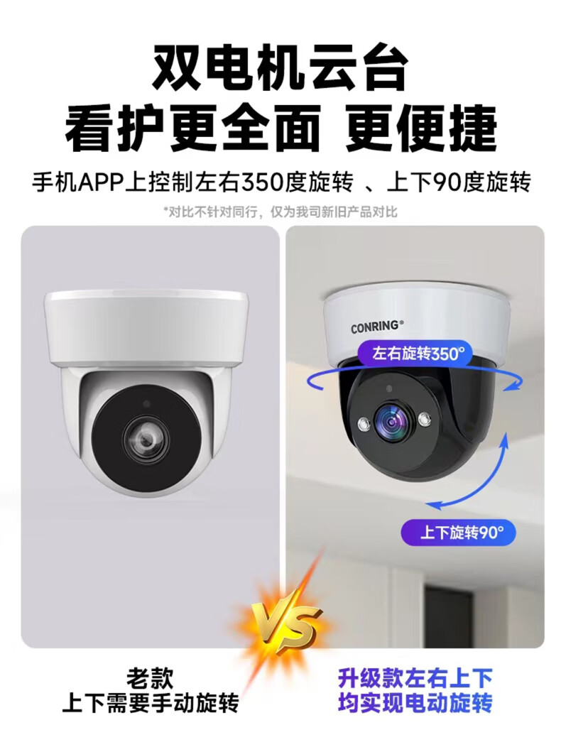 CONRING监控器360度无死角带夜视摄像头吸顶吊装家用无线云台旋转半球监控器室内入户门口楼道电梯 WIFI-停电续航【远程旋转+语音对讲+智能监测】 7天回放