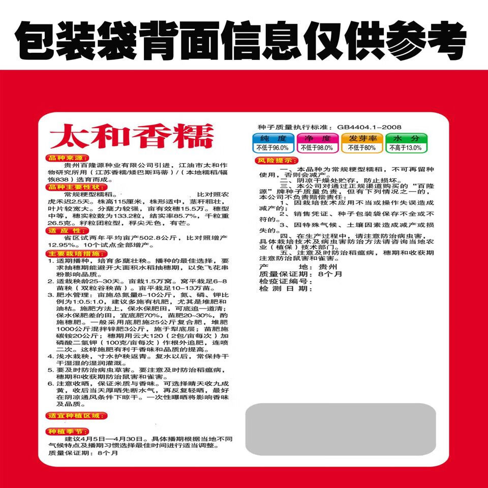 Гуйчжоу Тайхэ Сяннуо/Хуинуо 330/Цяннуою 88 семян ароматного клейкого риса семена короткозернистого клейкого риса круглые Тайхэ Сяннуо одна упаковка (круглый клейкий рис 200 г) обычный