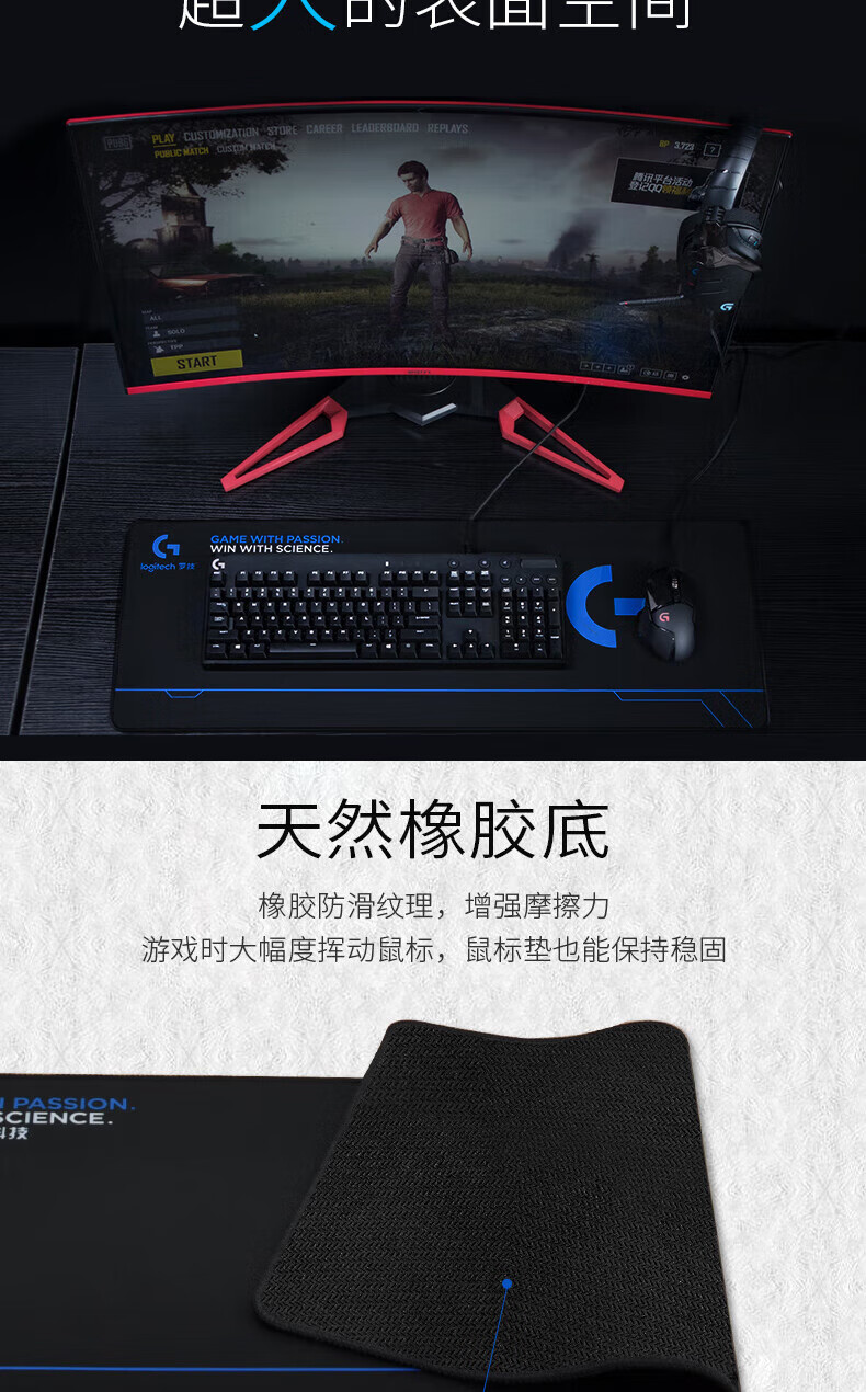 罗技游戏鼠标用锁边鼠标垫 电竞鼠标垫 家用办公鼠标垫 加大包边 吃鸡游戏鼠标垫 大桌垫