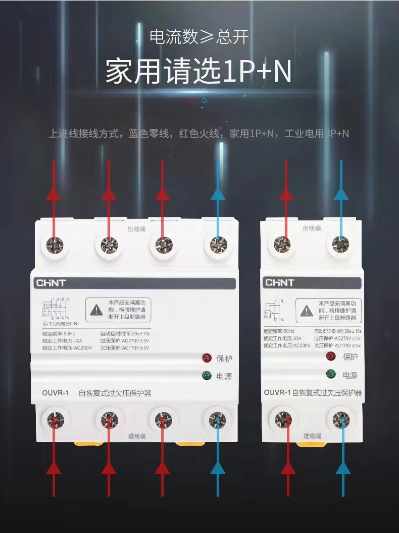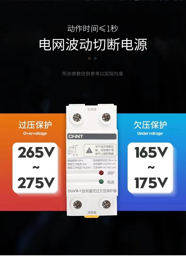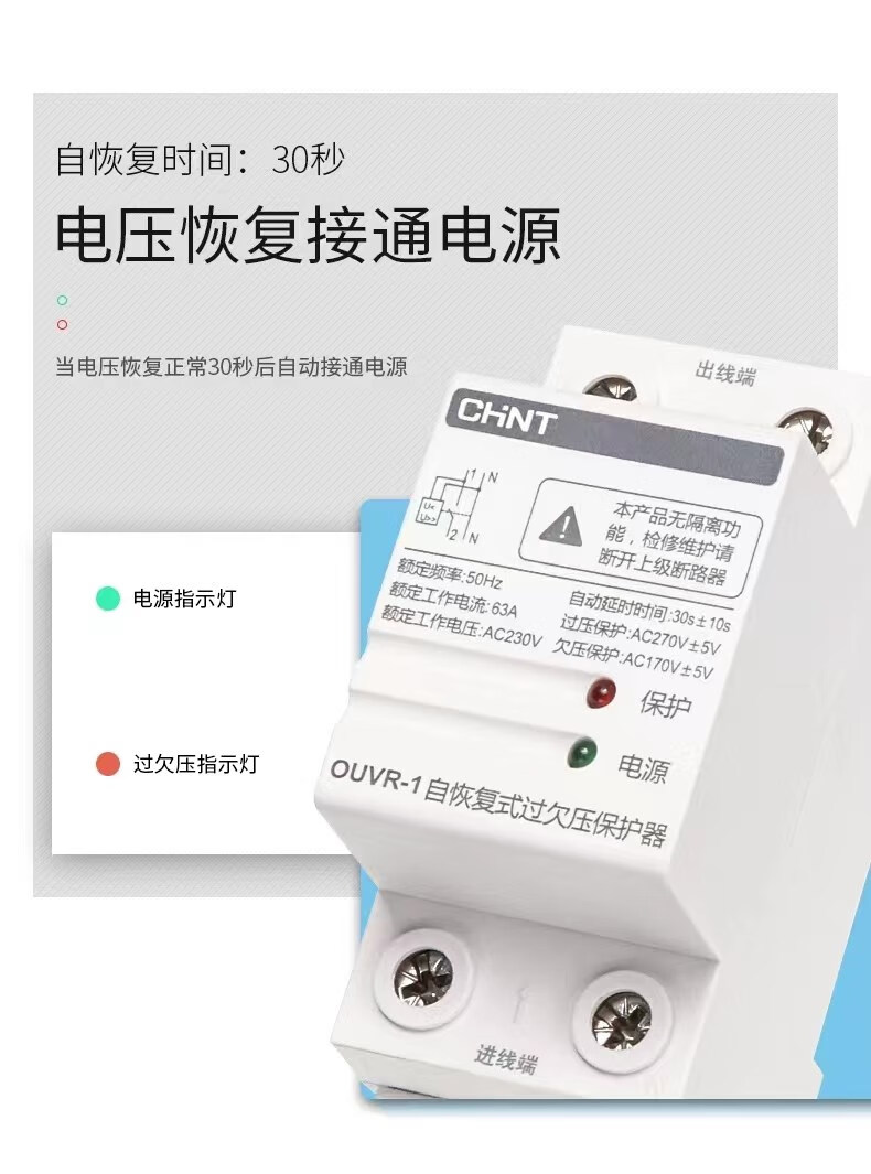 正泰正泰过欠压保护器正泰自复式过欠压保护器OUVR-1家用220v自动恢复 2P 63功率
