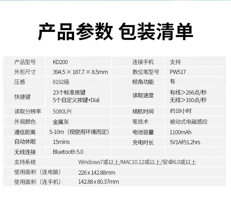 绘王(HUION)KD200 数位板 手绘板 手写板 写字板 绘画板 绘图板 电子绘板