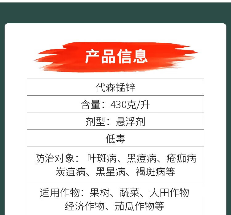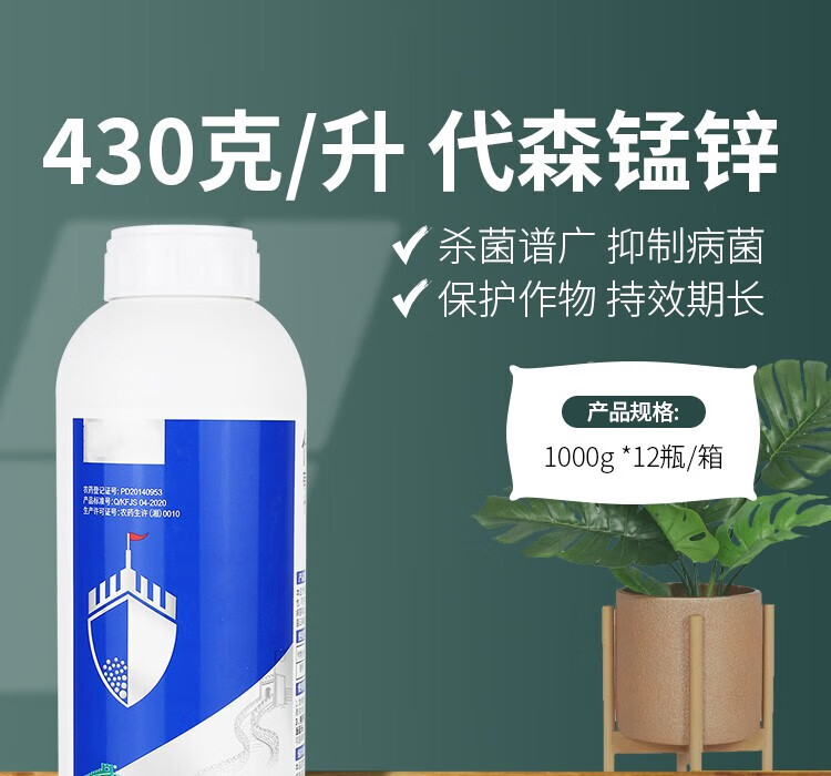 Mancozèbe, fongicide, pesticide, anthracnose, tache des feuilles, tavelure, brûlure précoce, arbres fruitiers, agrumes et légumes, 1000g/bouteille