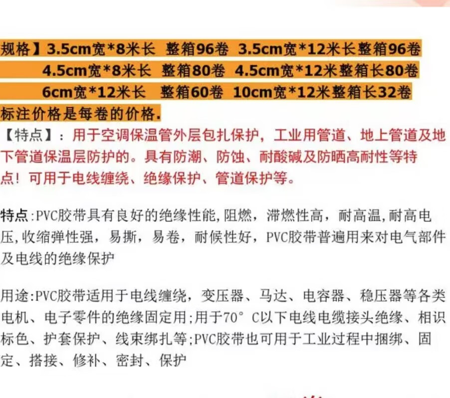 Ruban isolant en caoutchouc PVC noir et en plastique ruban d'emballage pour tuyaux de climatisation à forte traction ruban d'emballage 6 cm 6 cm de large 12 mètres de long