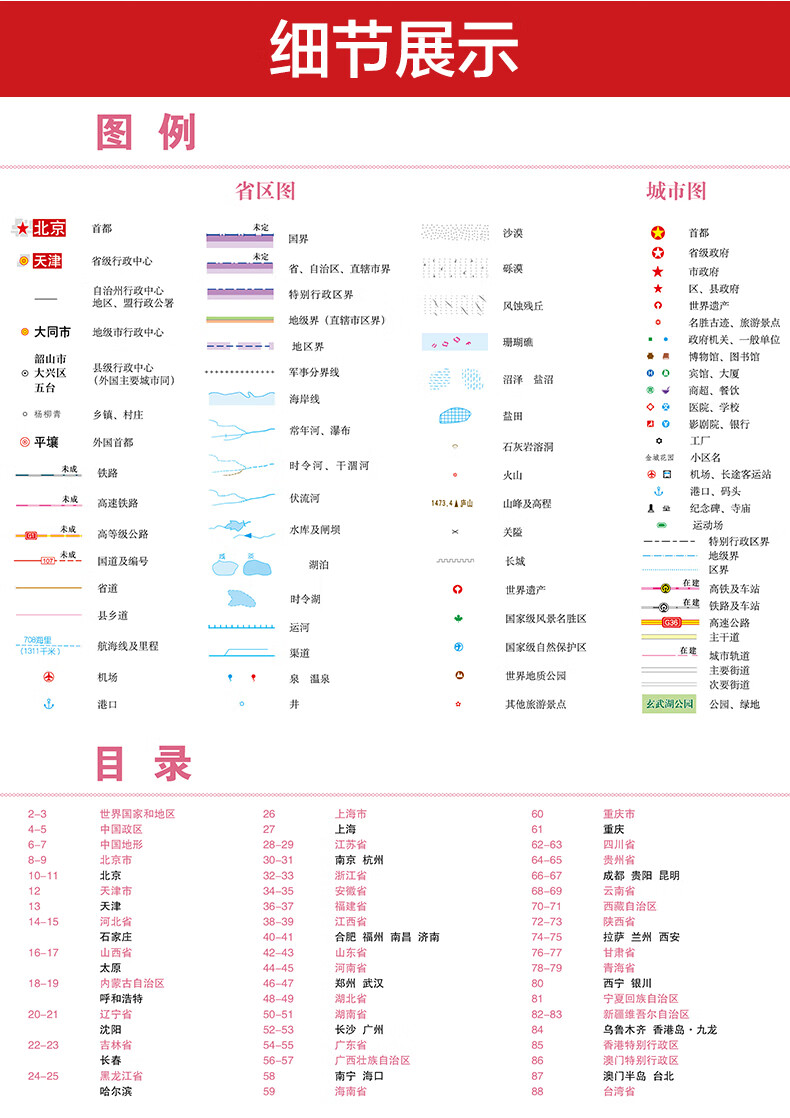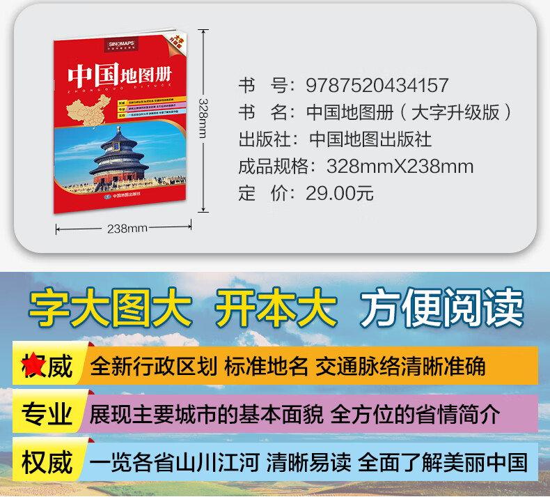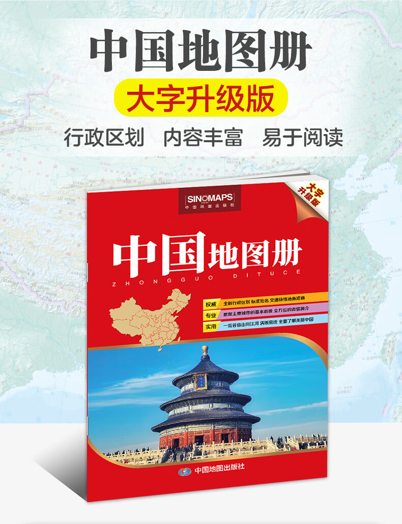 Атлас Китая 2024 года, обновленная версия с крупным шрифтом, четкая и легко читаемая, административное деление, транспортные маршруты, географический справочник.