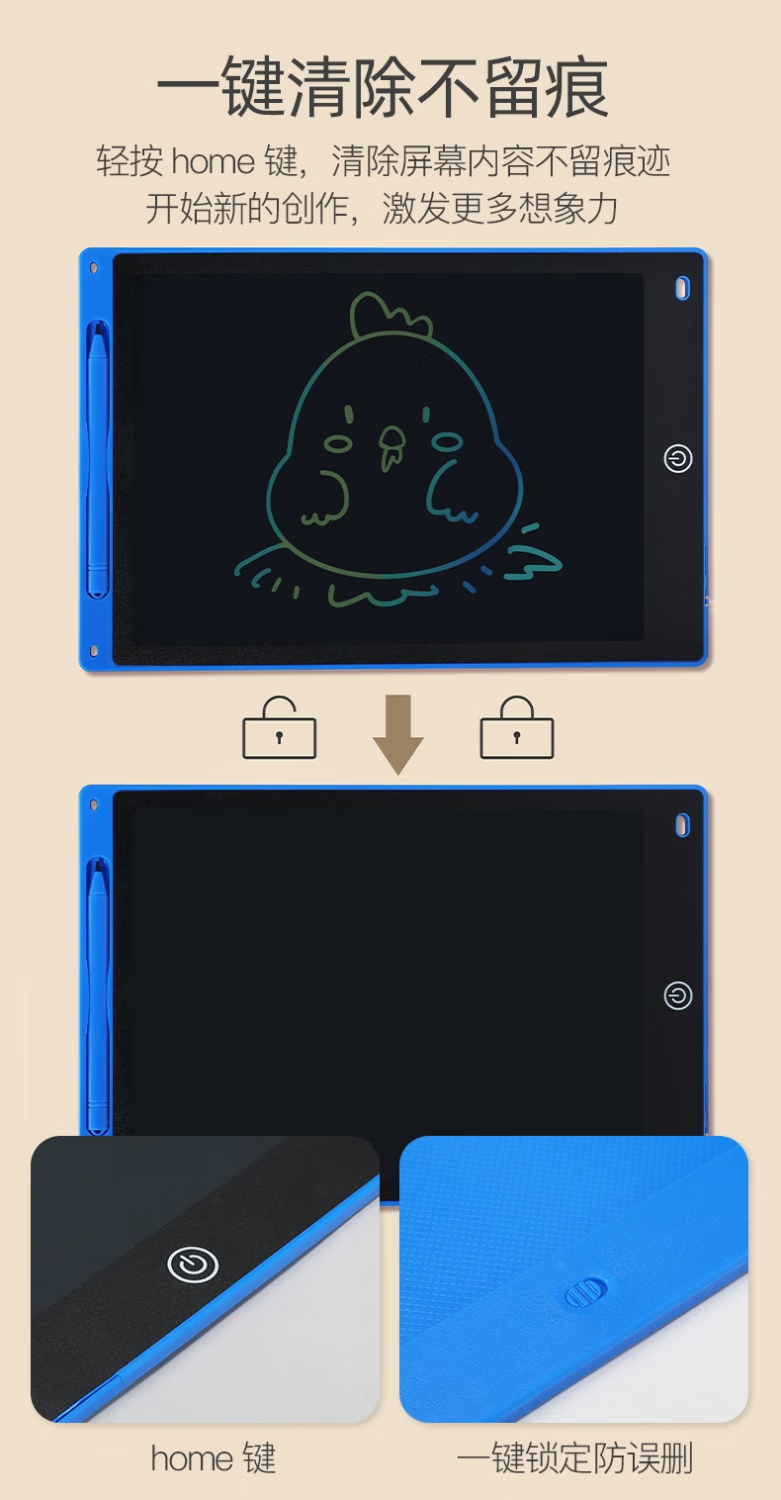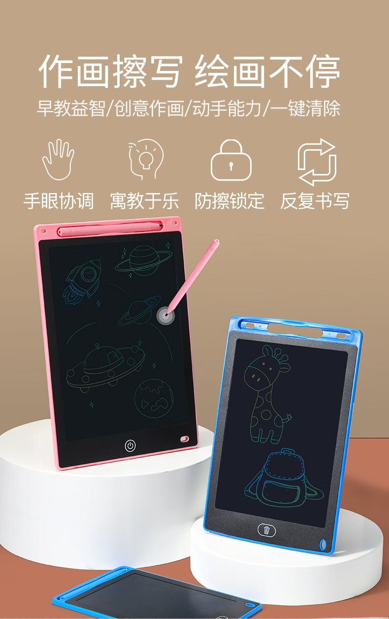 Children's drawing board LCD screen handwriting pad one-click clear baby home small blackboard painting graffiti electronic writing board drawing student educational gift eye protection 13-inch monochrome LCD screen pink model