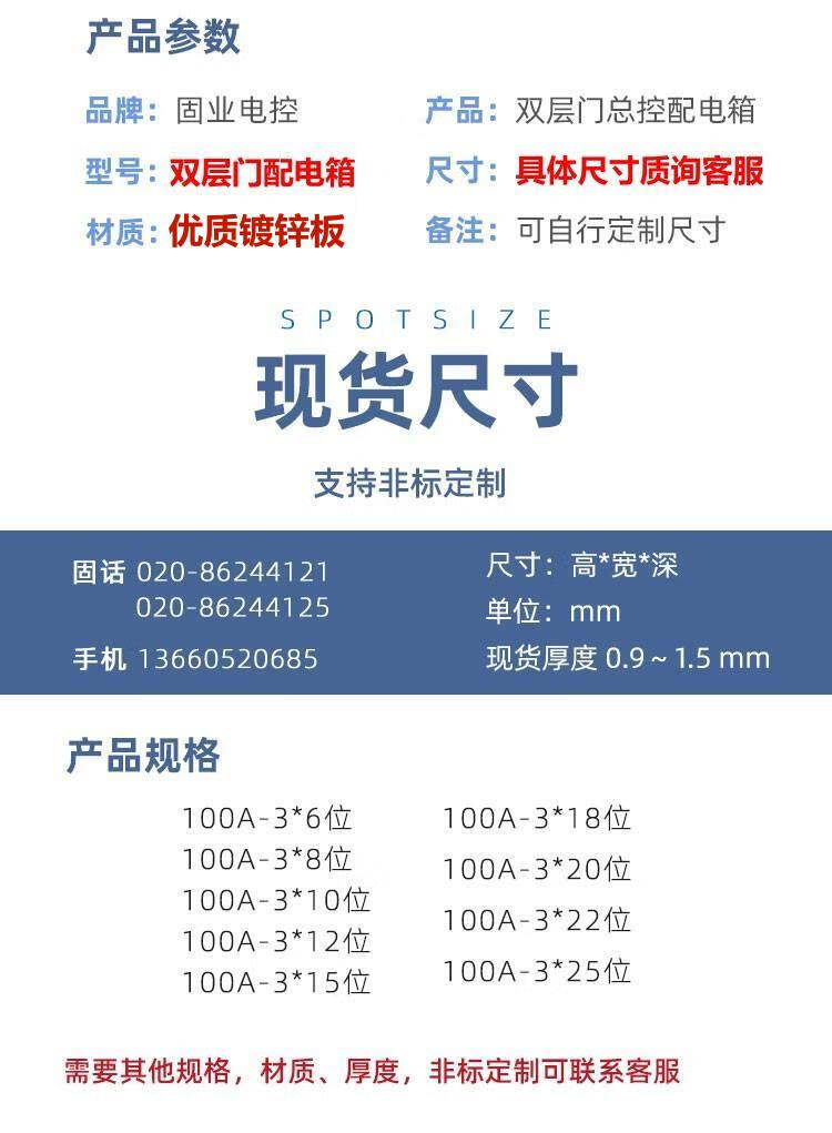 Double-layer door master control plus open leakage distribution box Customized lighting power electrical cabinet C45 100A master control 3 rows 3X25 positions 650x820x150 75 positions in total
