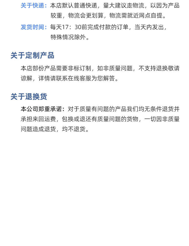 2)Les frais de port sont normalement facturés par tranche de 0,5KG. Donc, si vous achetez un produit qui ne pèse que 0,1KG, vous pourriez envisager d'acheter 2-3 PCS à la fois, ce qui n'ajoutera pas plus de frais de port à votre commande.