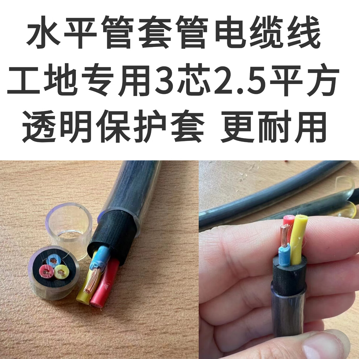 Boîtier étanche ligne de câble chantier de construction fil spécial extérieur 3 conducteurs 2,5 mètres carrés gaine de tuyau horizontale haute puissance norme nationale 3 conducteurs 2,5 mètres carrés avec tuyau horizontal transparent 100 mètres, prise antidéflagrante incluse
