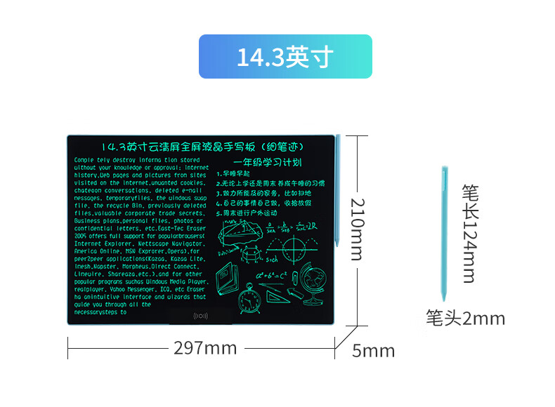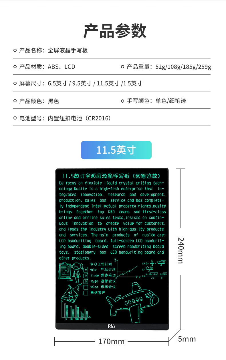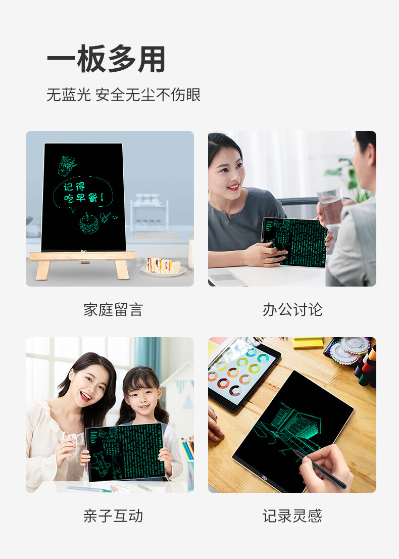 PBJ超薄细笔迹液晶手写板不扩散办公教育草稿写字板学生画板电子笔记本全面手绘板小黑板可扫描留言板 14.3英寸折叠款黑色【96%选择】+保护套+礼包
