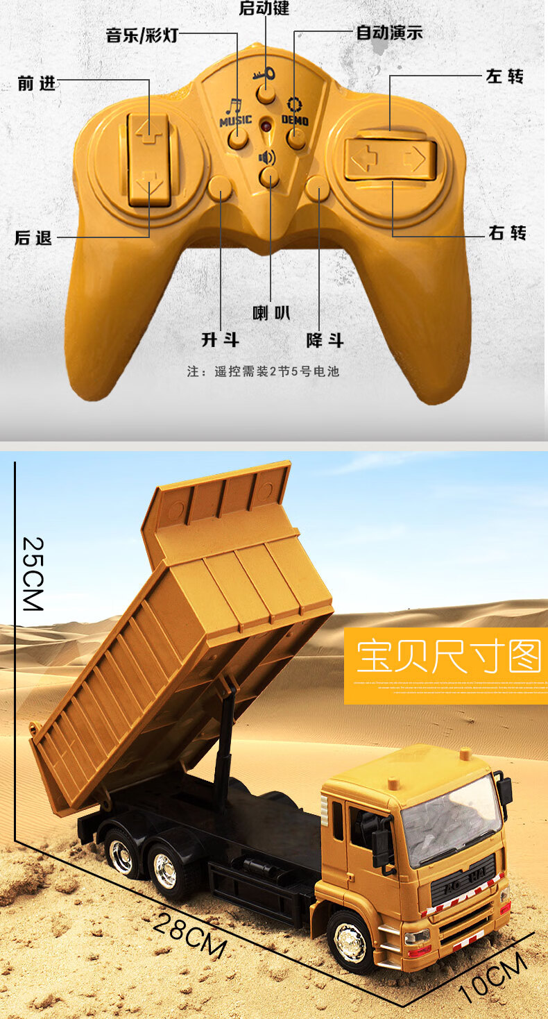 Chuangjingyixuan simulation télécommande modèle gros camion télécommande sans fil pour enfants camion à benne basculante jouet modèle de camion à benne électrique carte en alliage poignée sans fil camion à benne basculante télécommandé original - 3 jeux de piles rechargeables