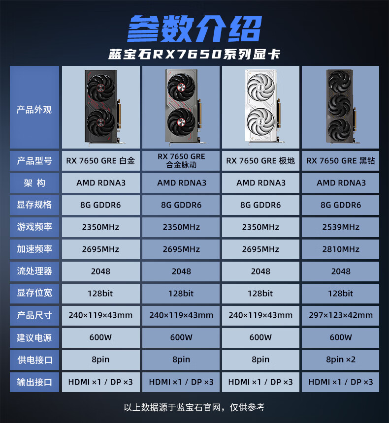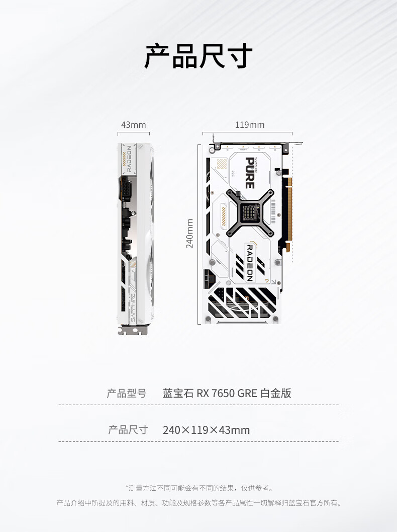 Sapphire AMD RADEON RX 7650GRE Serie Spiel Black Myth Wukong Grafikkarte Computer unabhängige Grafikkarte RX 7650GRE 8G Polar