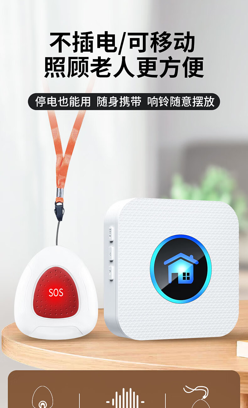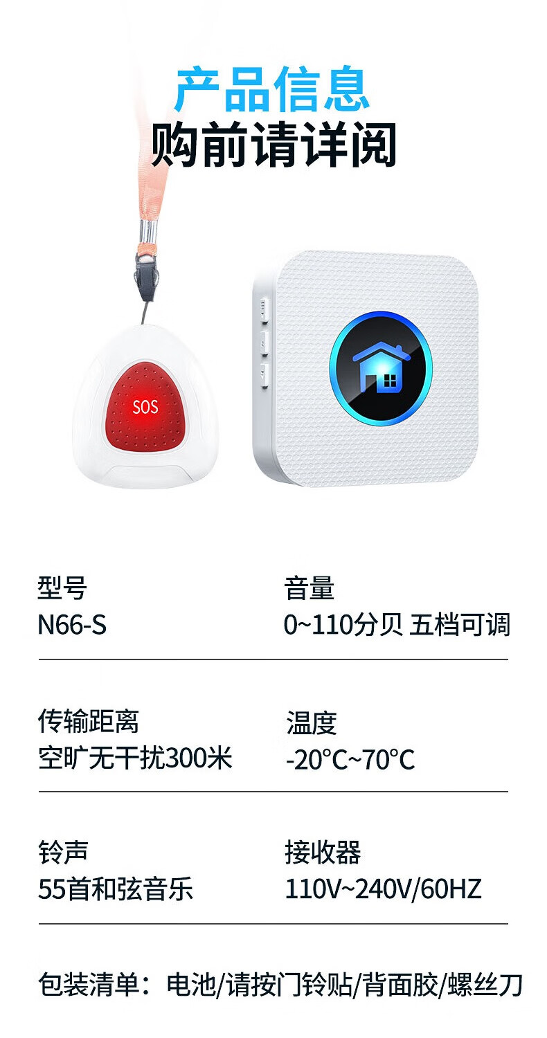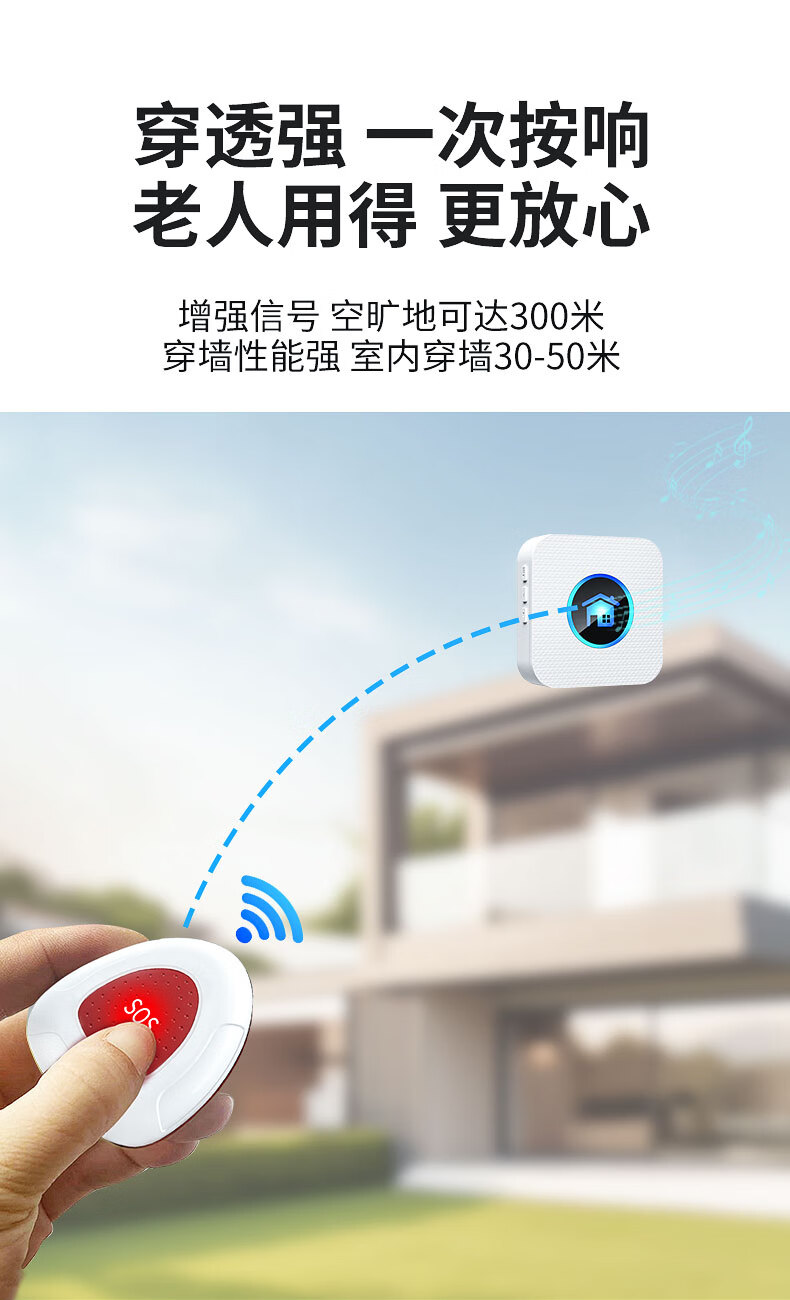 NURBENN пейджер для пожилых людей, домашний беспроводной, междугородний, дистанционный прикроватный звонок, звонок для ухода за пациентом, электрический звонок, звонок для беременной женщины, одна кнопка, экстренный вызов, сигнализация, уход, безопасность, дверные часы, модель батареи, белый, один в один
