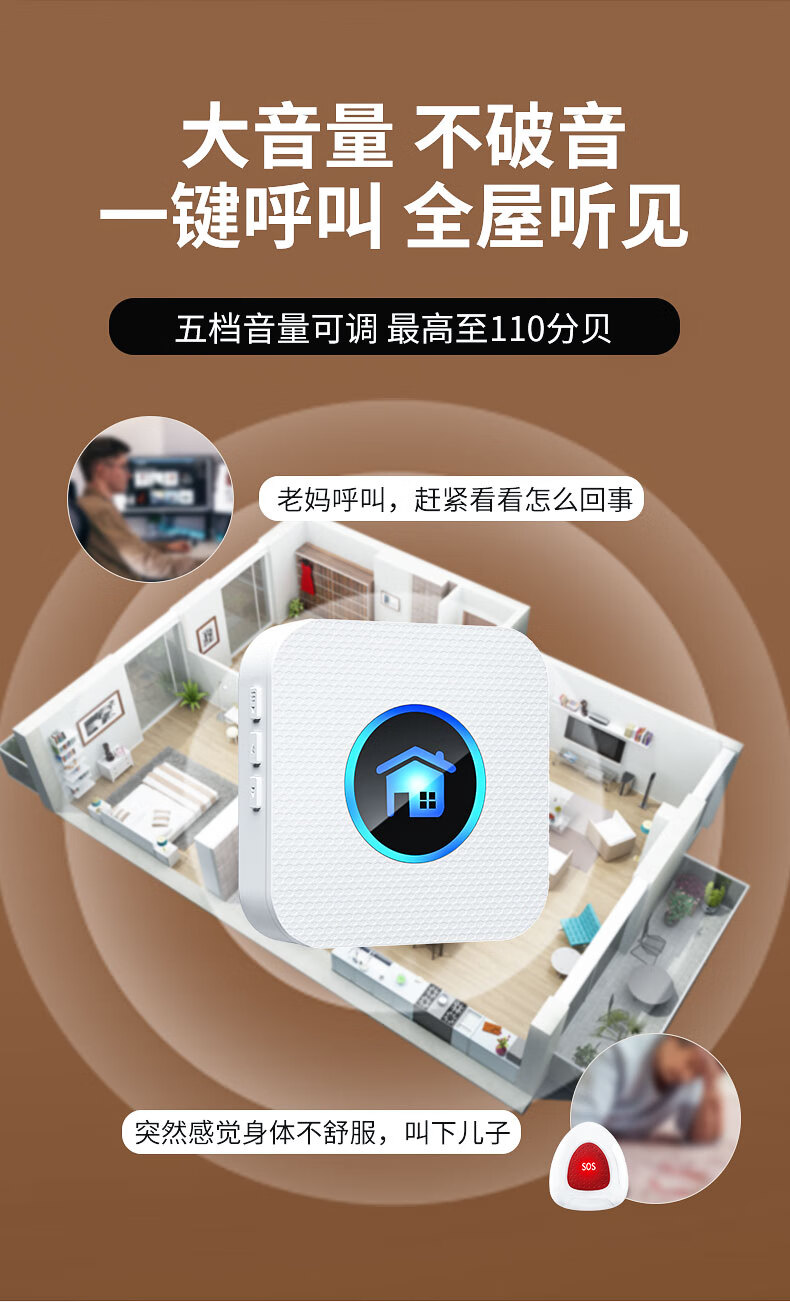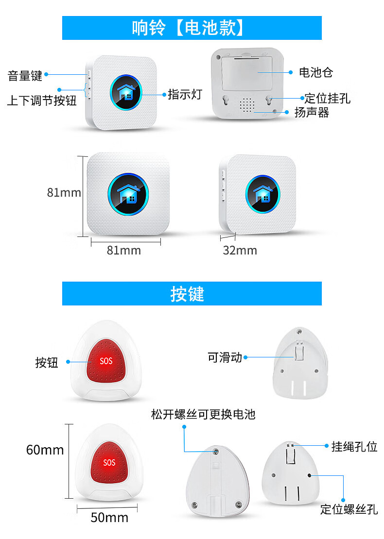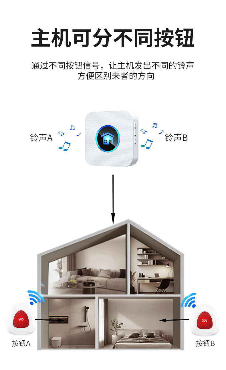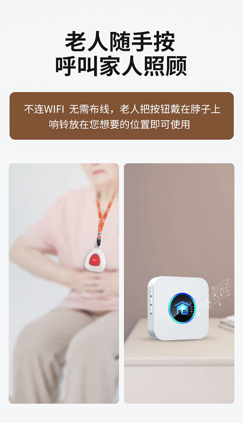 NURBENN пейджер для пожилых людей, домашний беспроводной, междугородний, дистанционный прикроватный звонок, звонок для ухода за пациентом, электрический звонок, звонок для беременной женщины, одна кнопка, экстренный вызов, сигнализация, уход, безопасность, дверные часы, модель батареи, белый, один в один