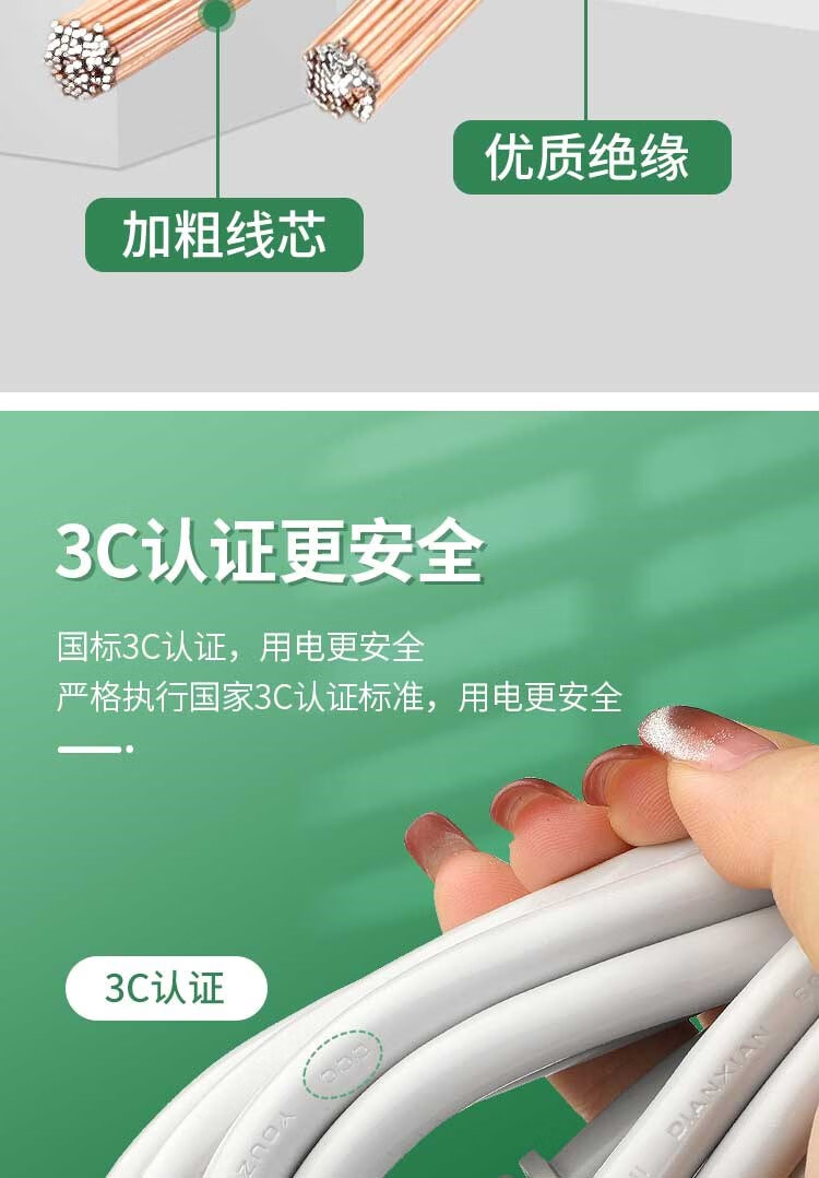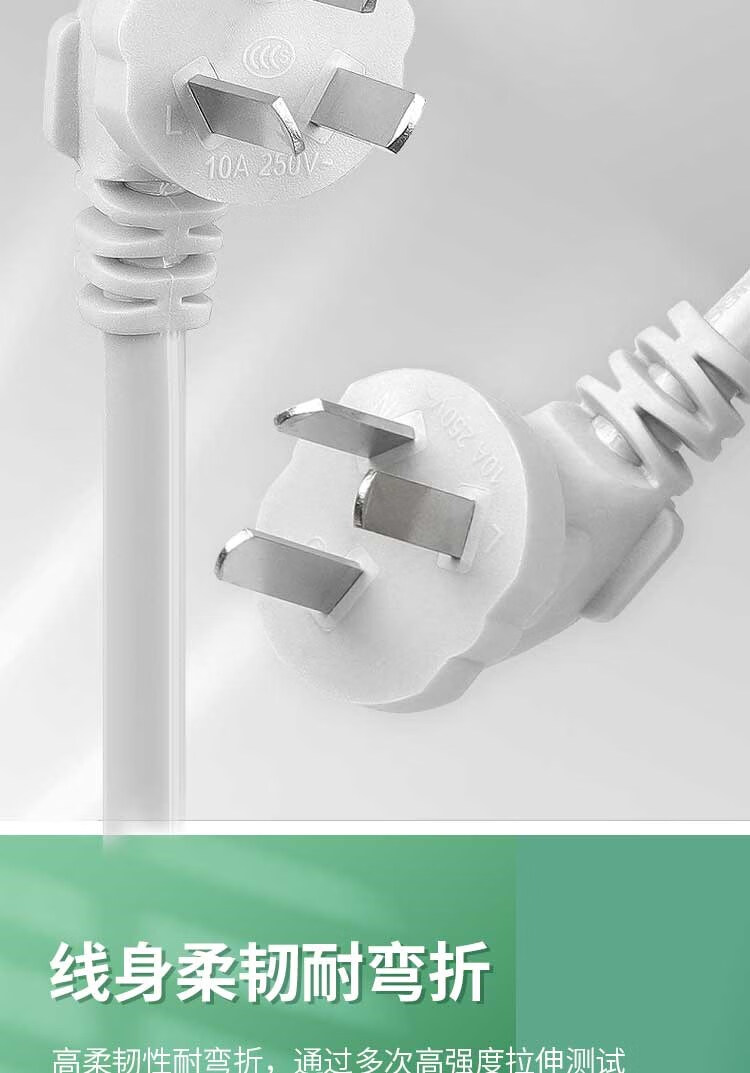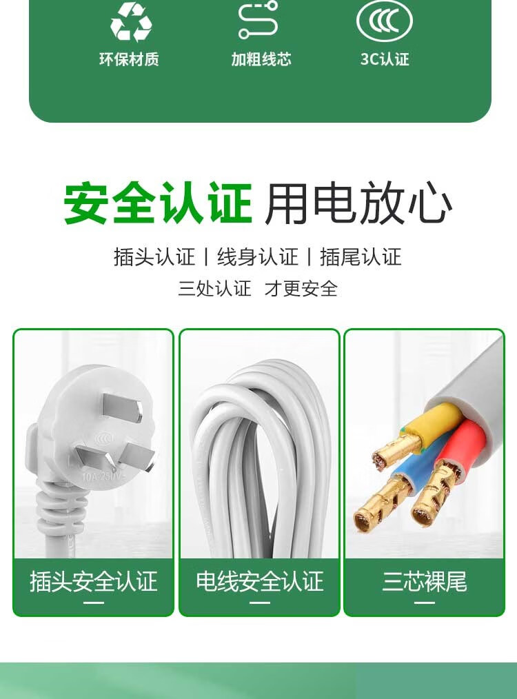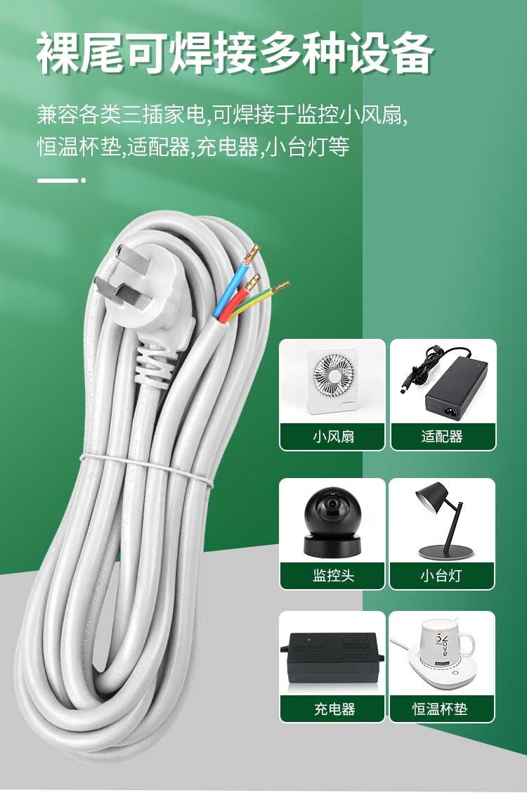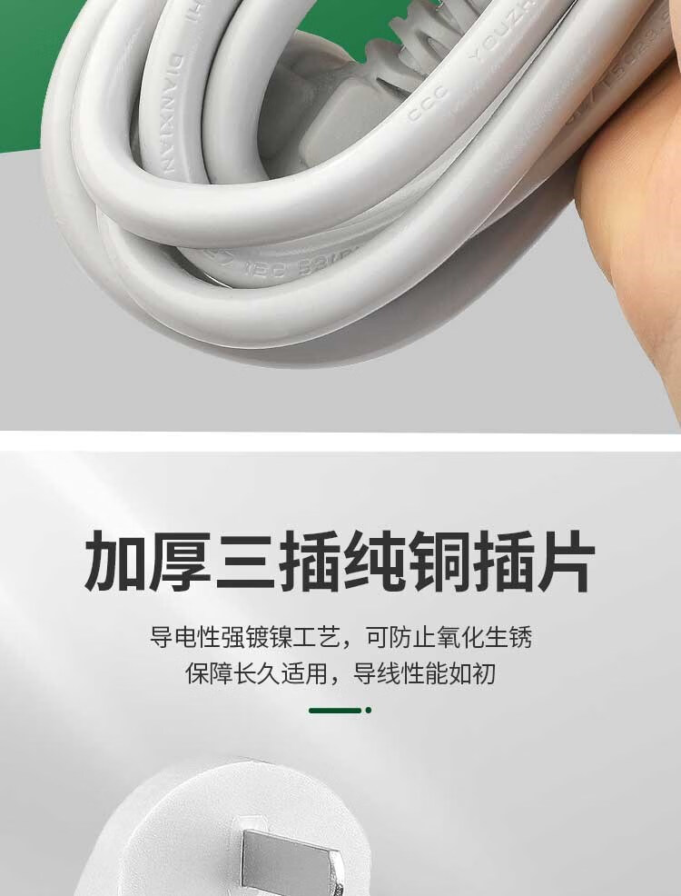 Fil carré pur 3 * prise/fiche/cordon d'alimentation 1/2,5 à trois broches à trois conducteurs en trois parties avec rangée 1,5 fils en aluminium cuivré à trois broches 10A3X2,5 carré 1,96 mètres