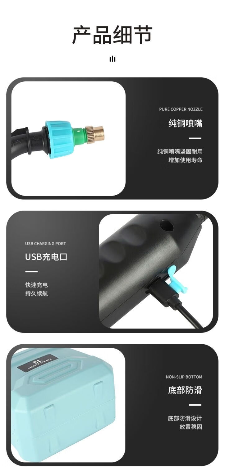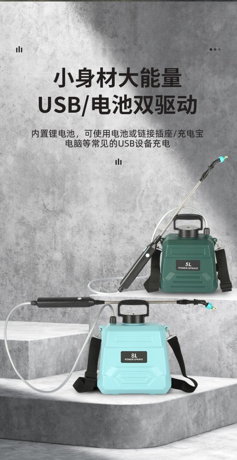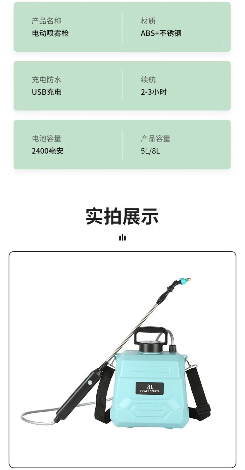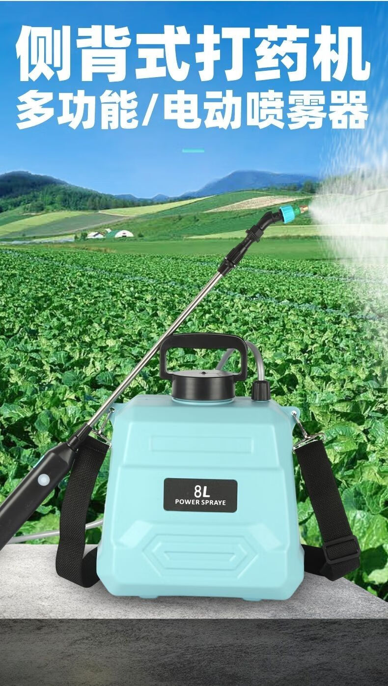 农药喷雾机电动喷雾器高压消毒打药机家用肩负手提式充电农用喷洒 尊享款8升绿桶(续航200分钟)