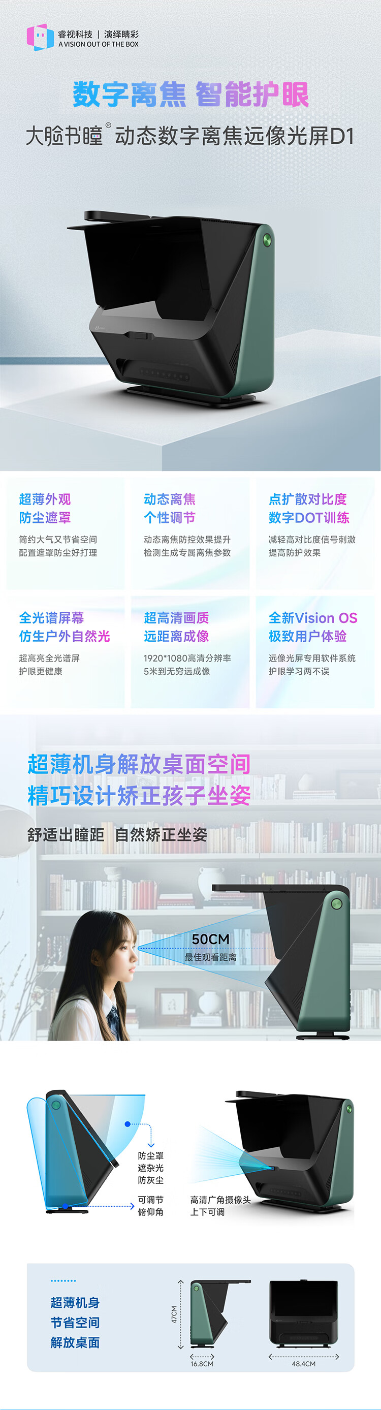 大脸书瞳睿视雾视屏D1读写台远像屏远像光屏数字离焦4L智慧护眼远望屏远视屏护眼屏视力训练学习机学练机 远像雾视屏D1