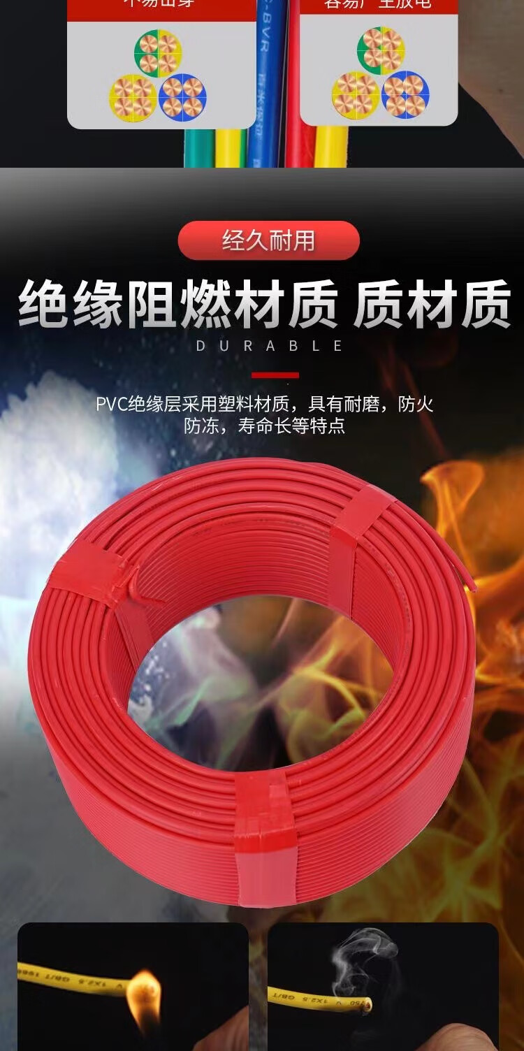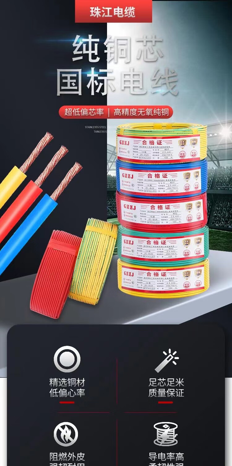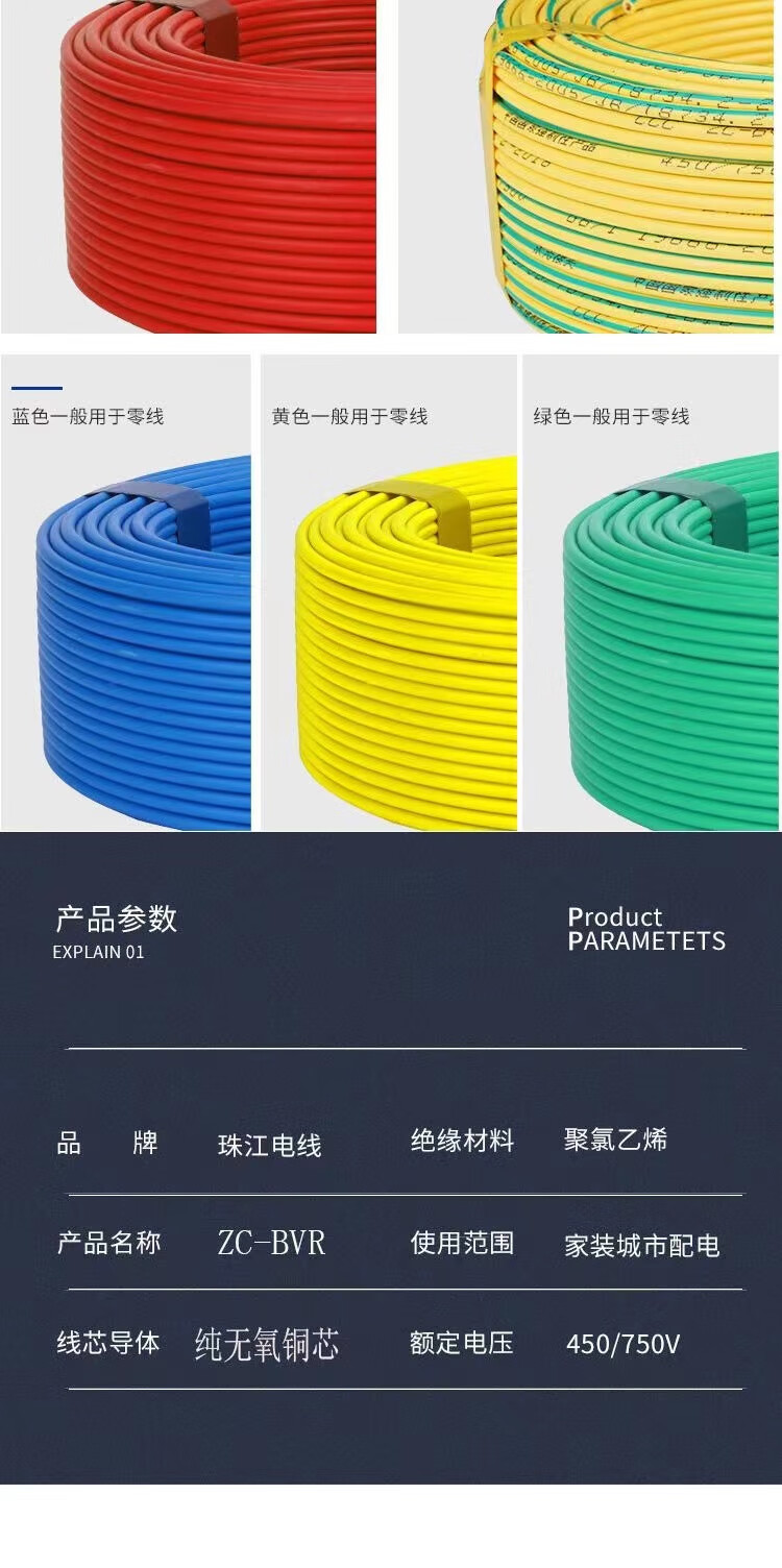 ZJDX Pearl River Wire 2,5 Norme Nationale 4 mètres carrés décoration de la Maison Fil BVR 1,5 6 10 Fil Domestique en cuivre Pur ignifuge Multibrins Rouge Norme Nationale cuivre Pur 2,5 mètres carrés - 100 mètres Assez