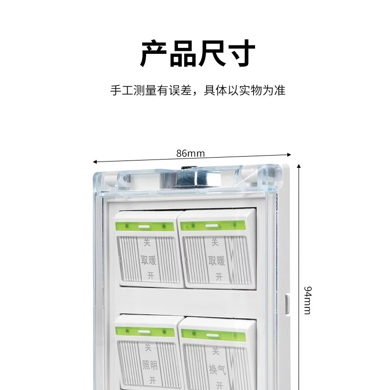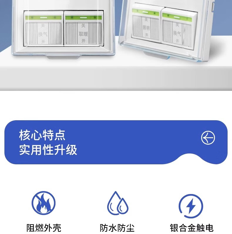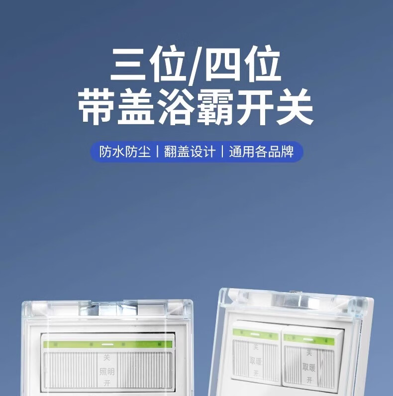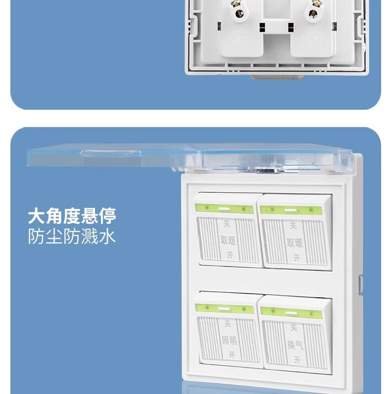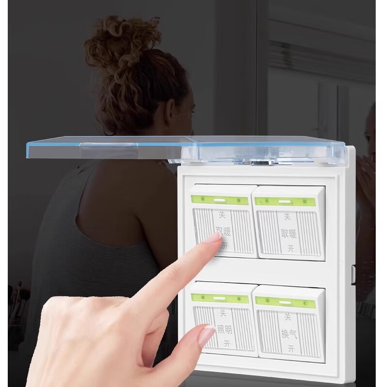 Interrupteur de chauffage de salle de bain électricien international, chauffage universel à quatre positions et panneau étanche de type 86 avec couvercle, interrupteur de chauffage de salle de bain durable 4 en 1 pour salle de bain domestique, toilettes 4 en 1 (type 86/4 marches)