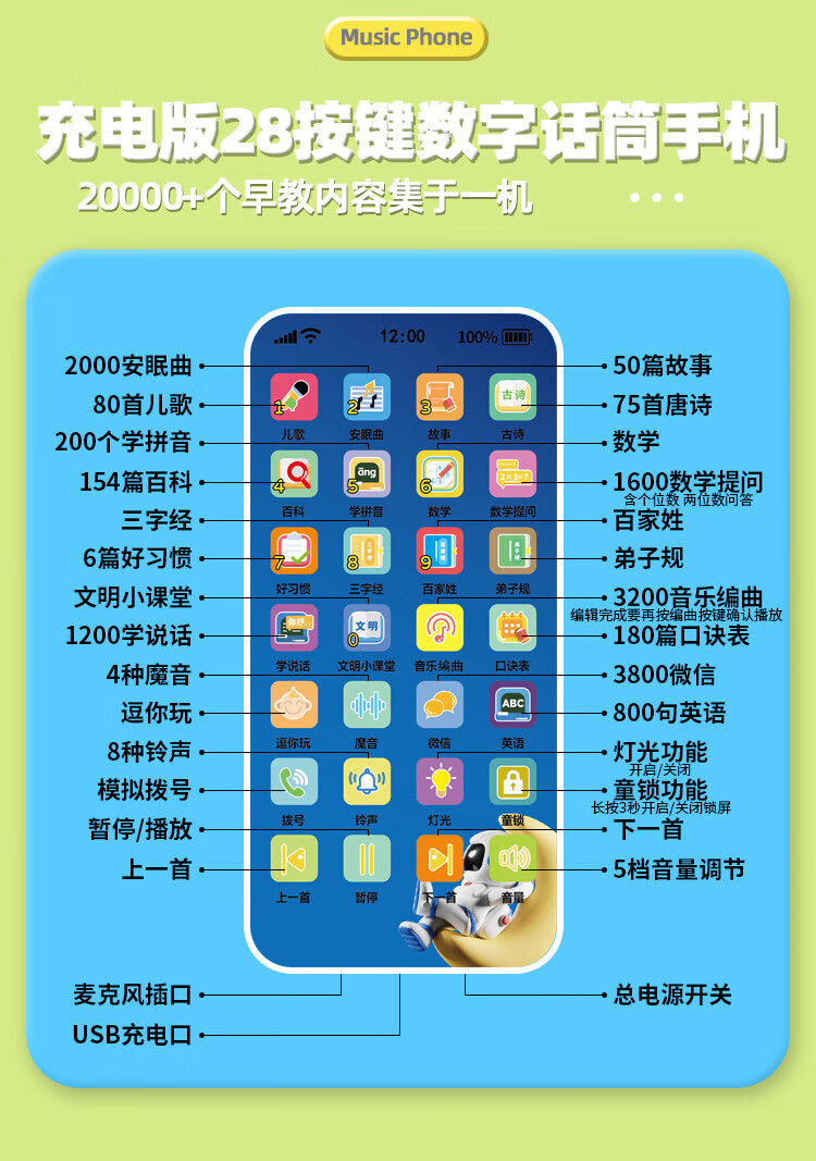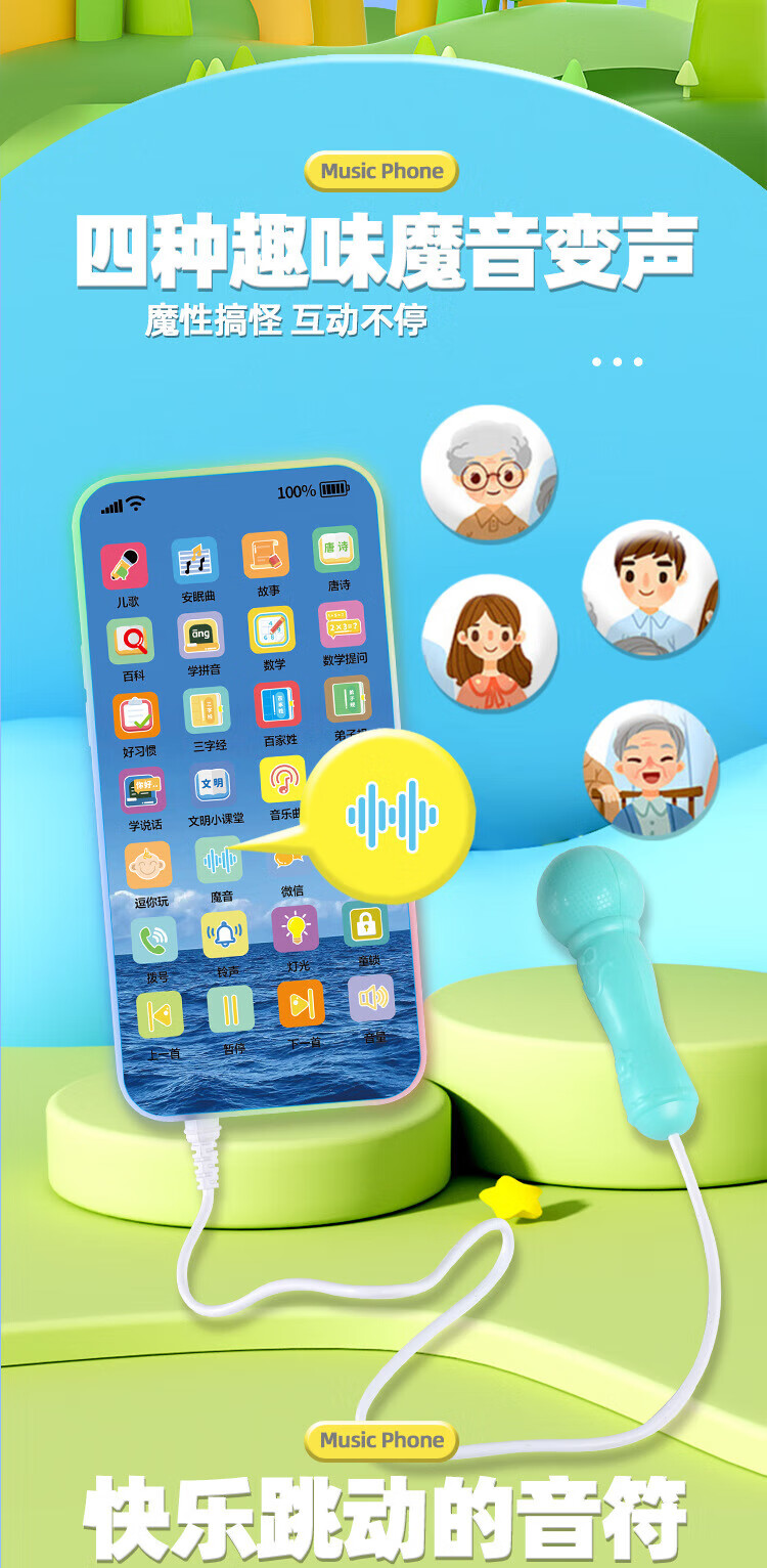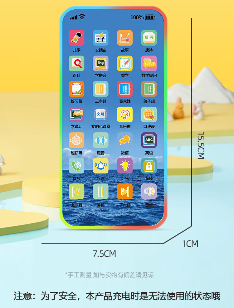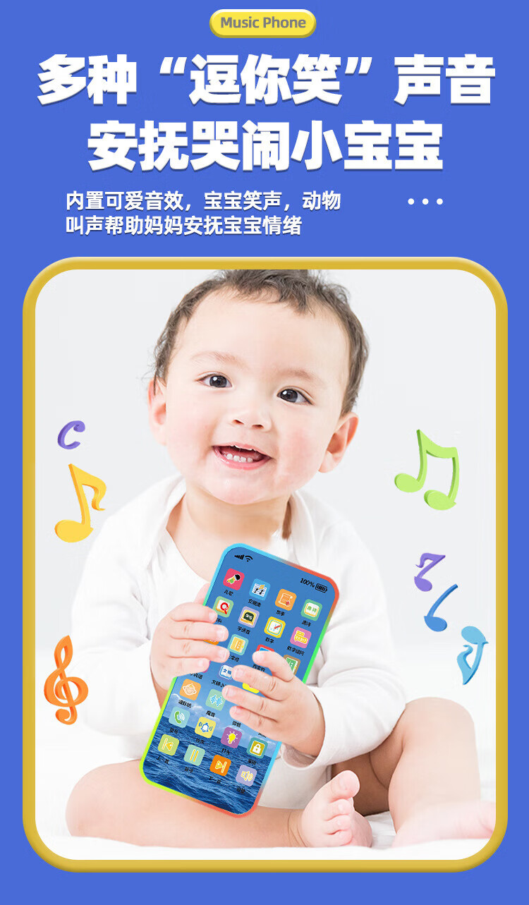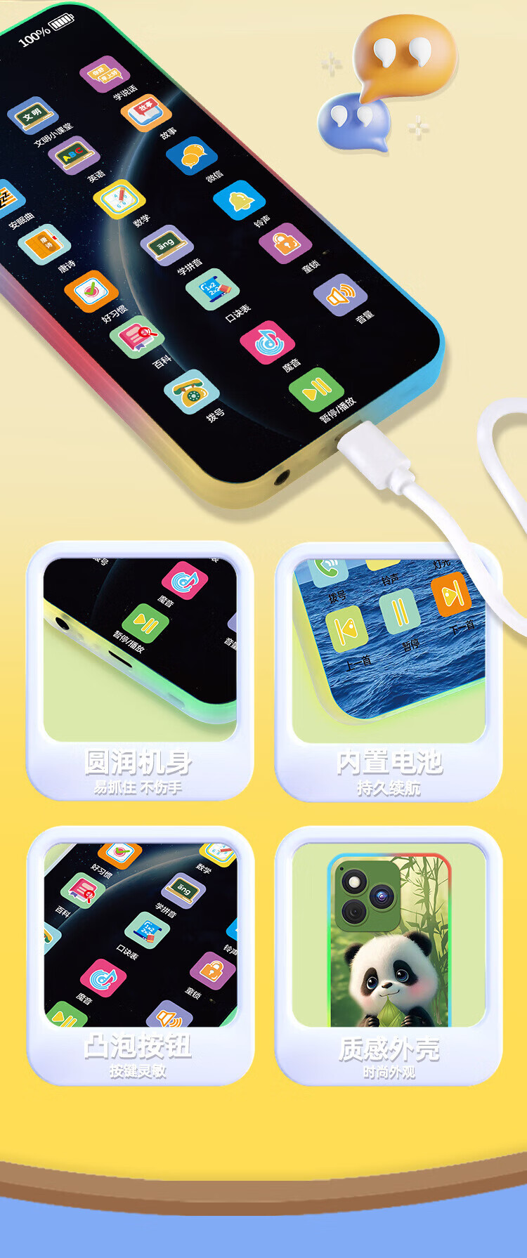 Children's mobile phone toys, baby mobile phone toys, chewable baby early education machine, anti-fall simulation early education machine for 0-1-3 years old, Panda charging model (microphone + teether mobile phone case)