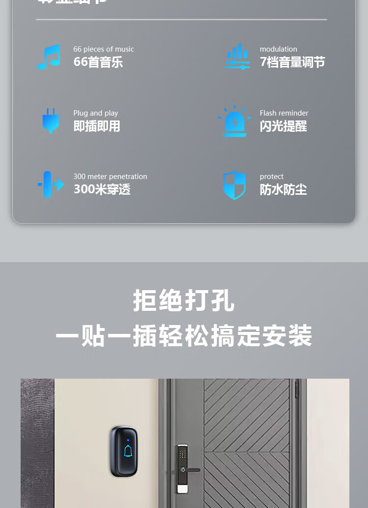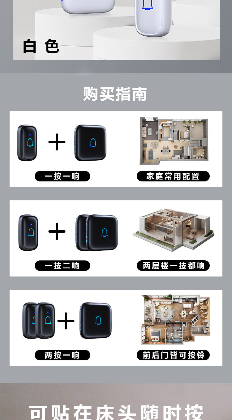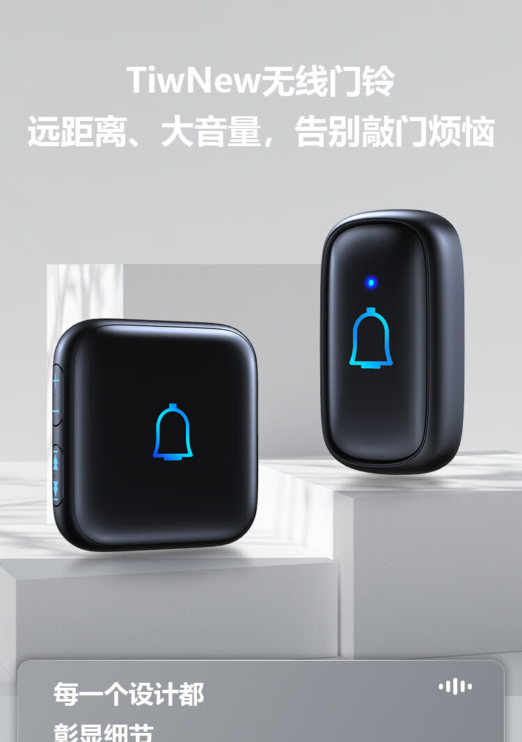 TIWNEW (Tieniu) Outdoor Waterproof Wireless Doorbell Intelligent Ultra-Long Range Home Electronic Remote Control Doorbell Caller Classic Black 1 Button 1 Ring