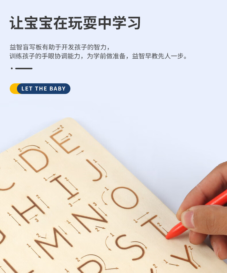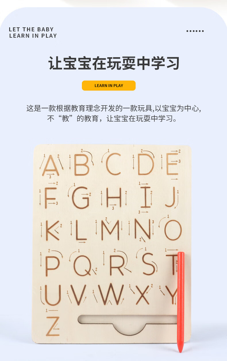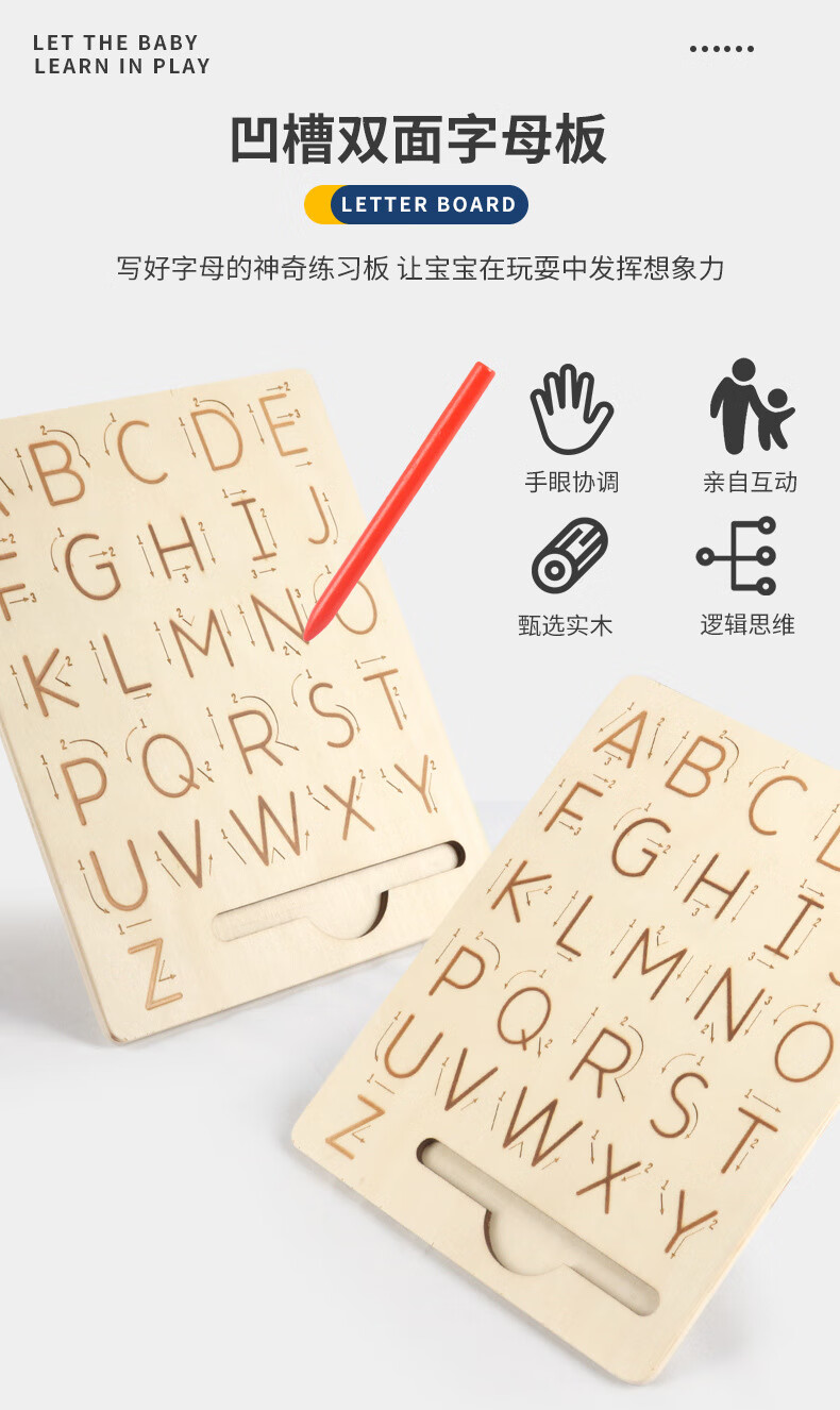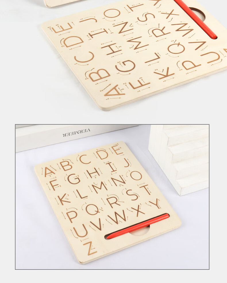 儿童木制字母数字书写凹槽运笔板宝宝学前早教控笔练字益智玩具 DCM-数字凹槽运笔板