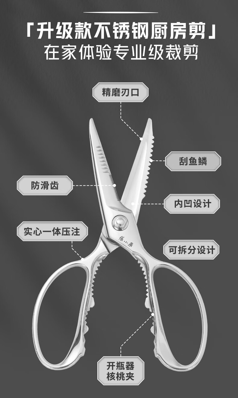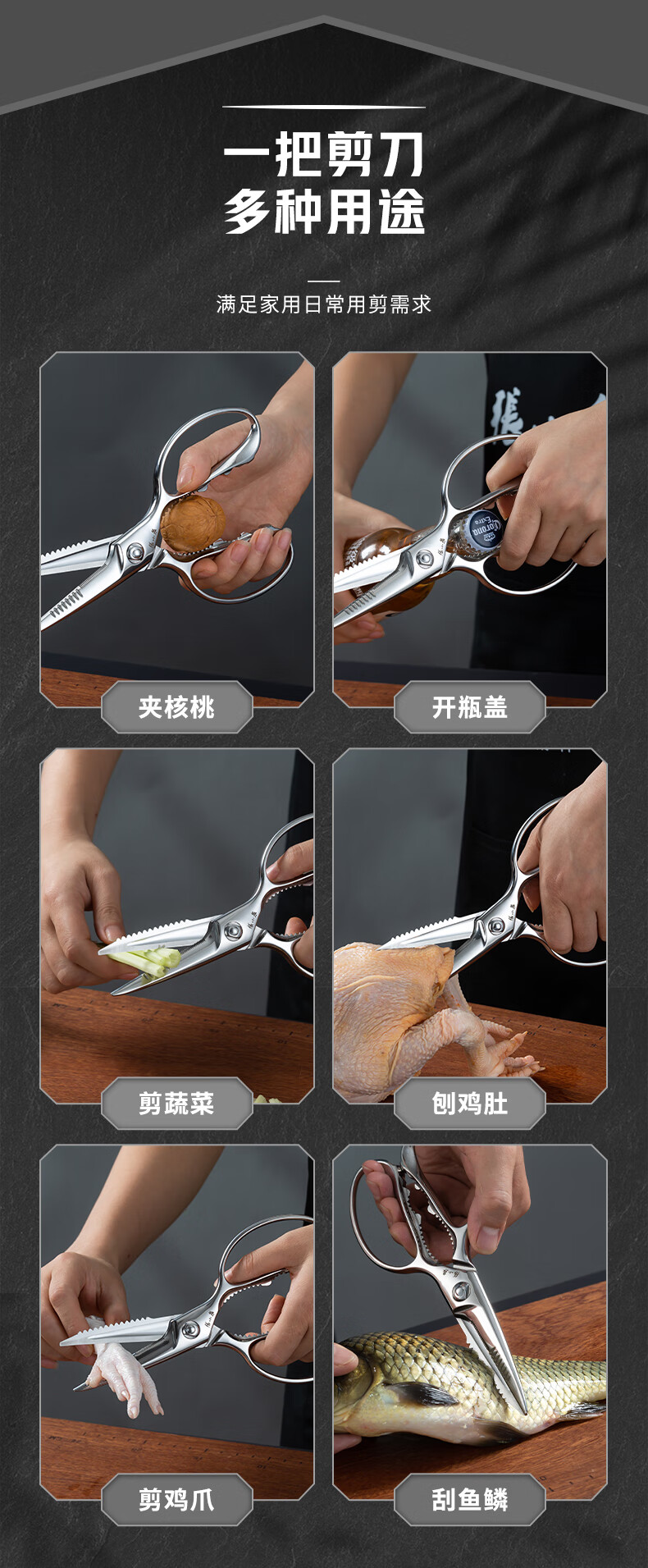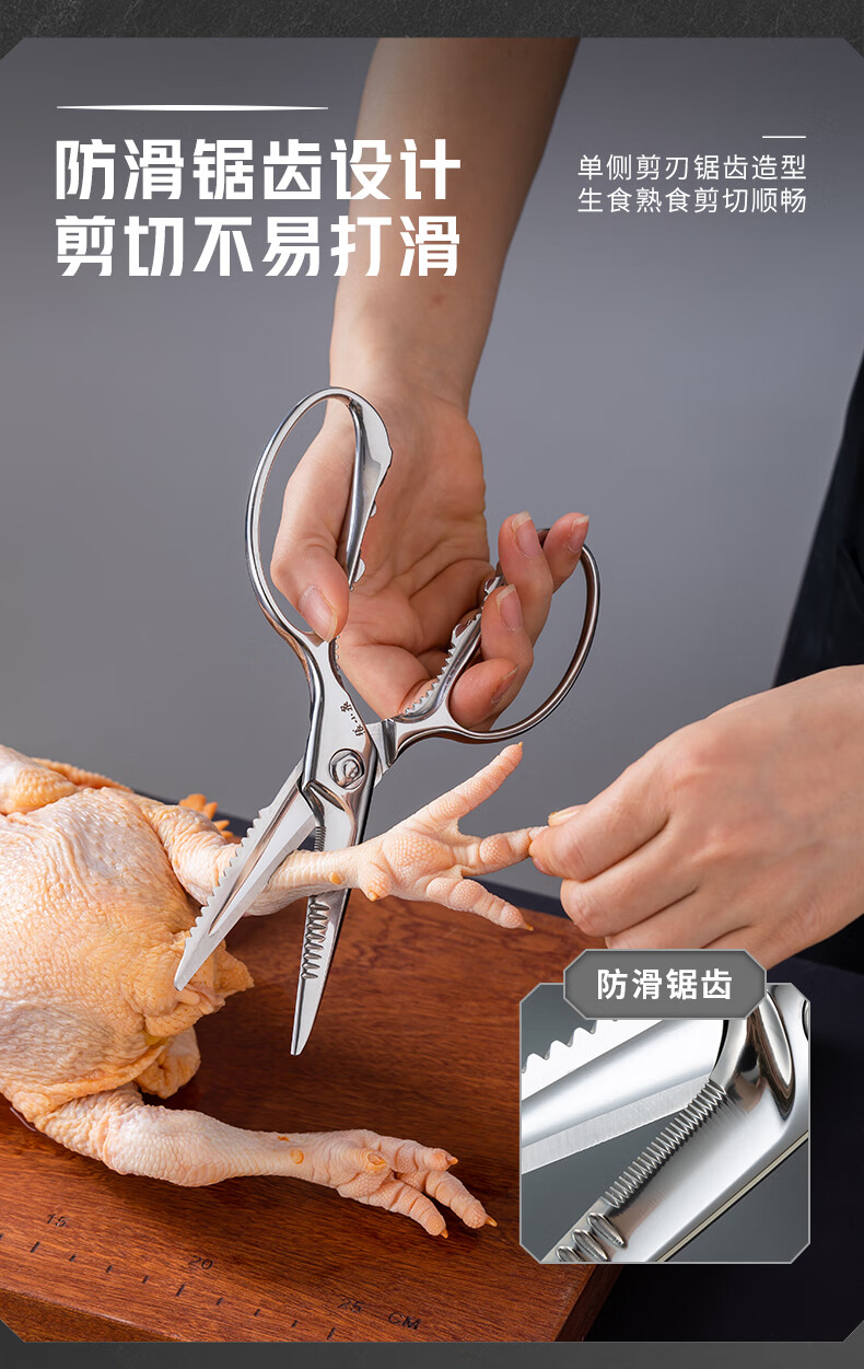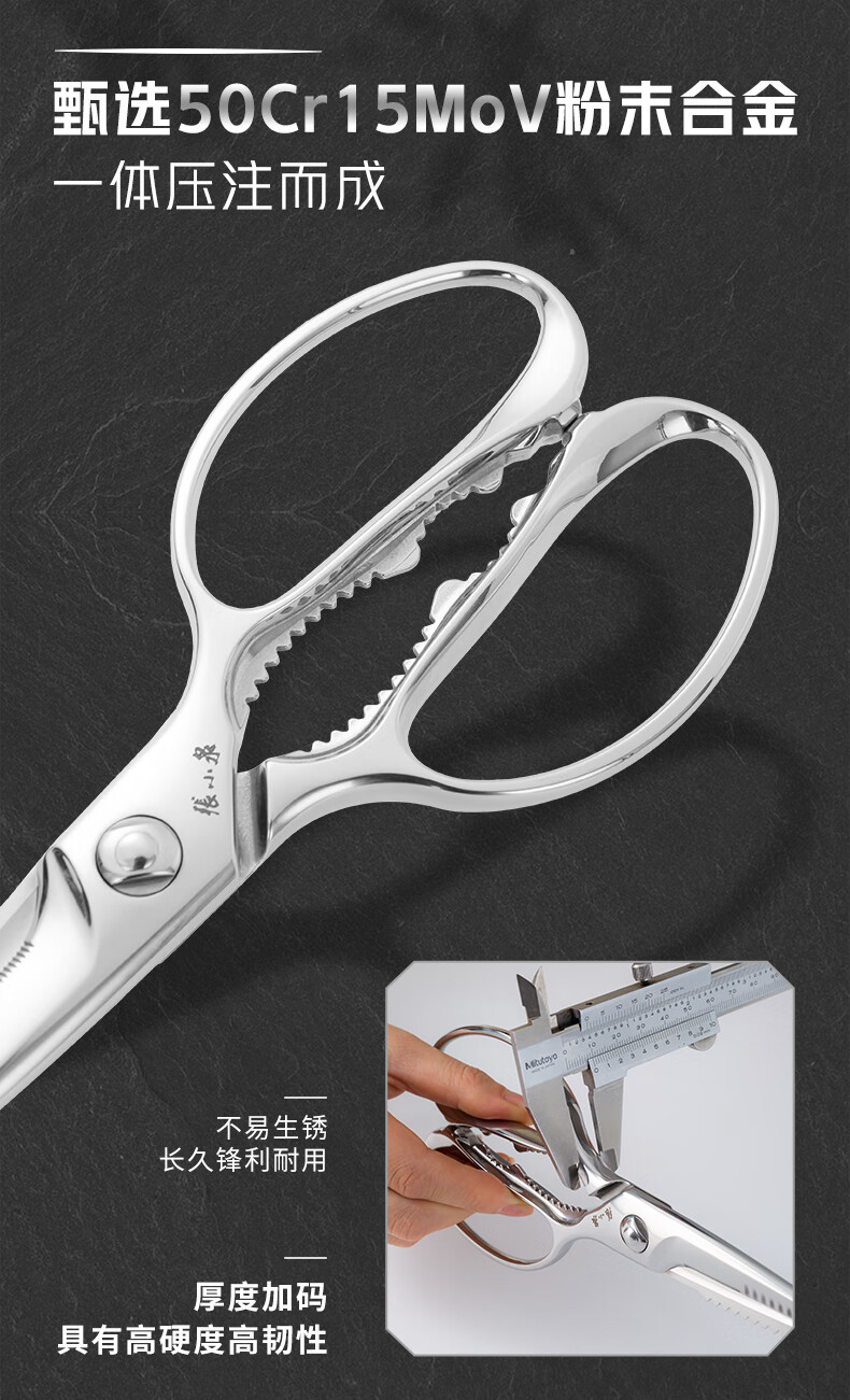 Кухонные ножницы Чжан Сяоцюань для резки куриных, утиных и гусиных костей, специальный нож для резки куриных, утиных и гусиных костей, многофункциональные ножницы из нержавеющей стали высокой твердости, прочные куриные кости, многофункциональные кухонные ножницы из ретортного порошкового сплава из нержавеющей стали.