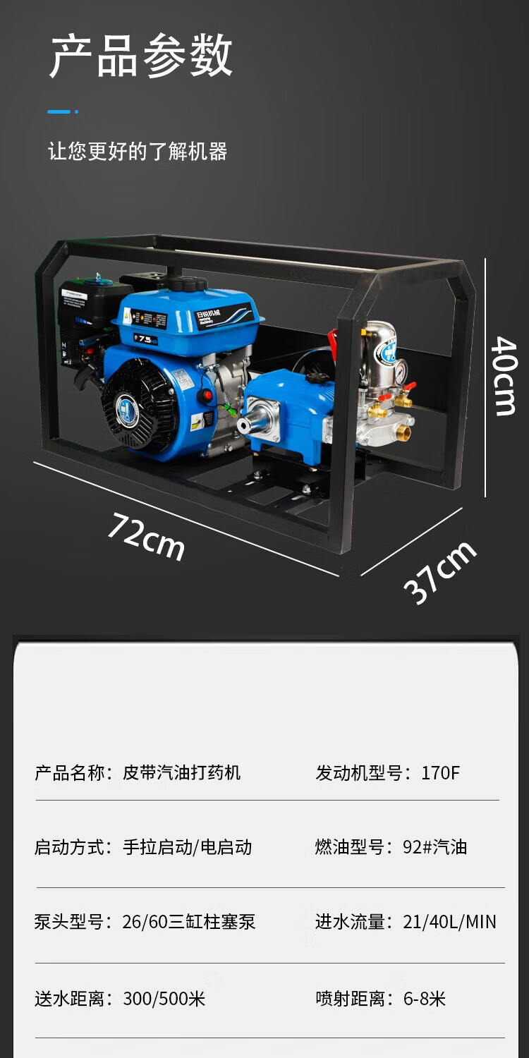日锐汽油打药机农用高压新式喷雾器新型免黄油电启动农药机喷药机 26新型打药机蓝色电启动免黄油 +200米管