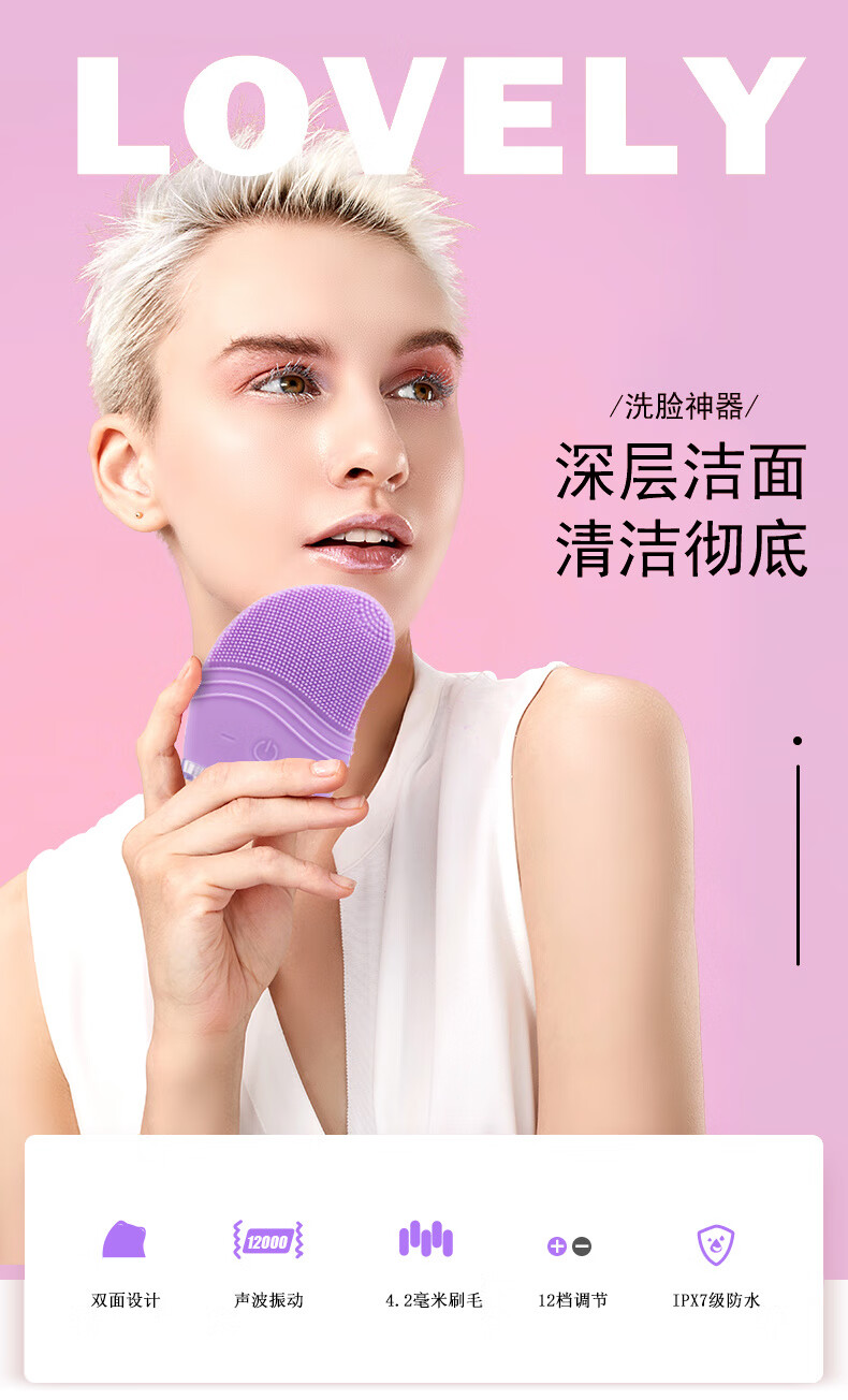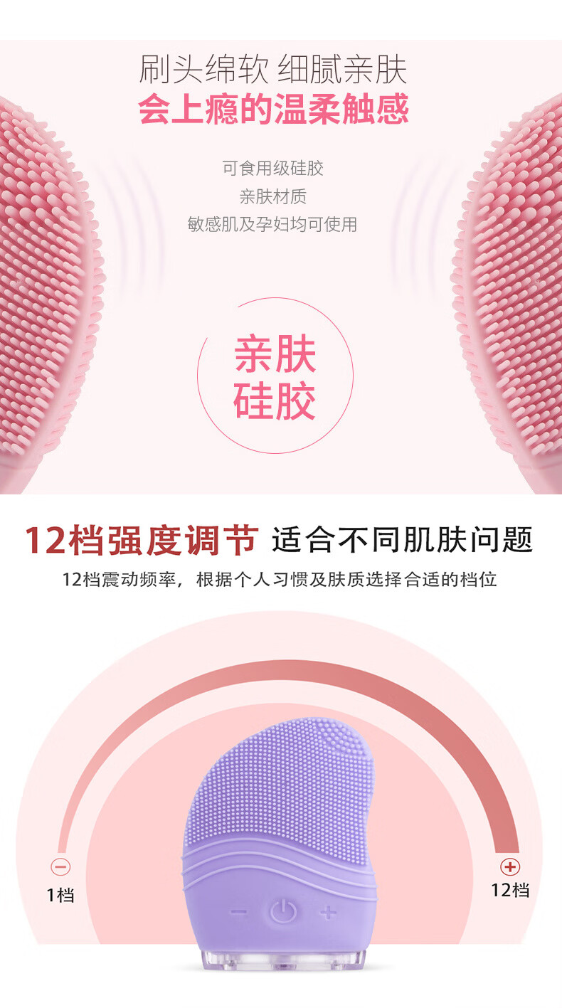 Konjia Shield facial cleansing artifact facial cleansing instrument electric deep cleaning pore acne facial cleaner face brush student purple upgraded model with charging and 12 levels of vibration