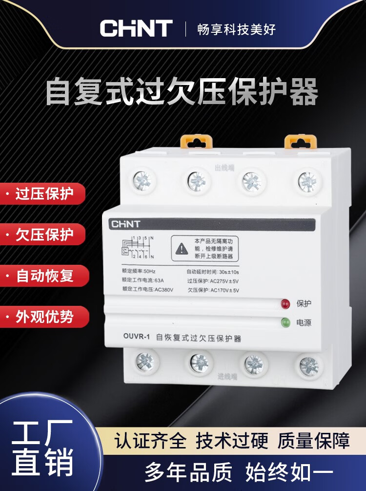 正泰OUVR-1三相四线过欠压保护器 过欠压保护器1P+N 3P+N63A替代 63A 3P+N
