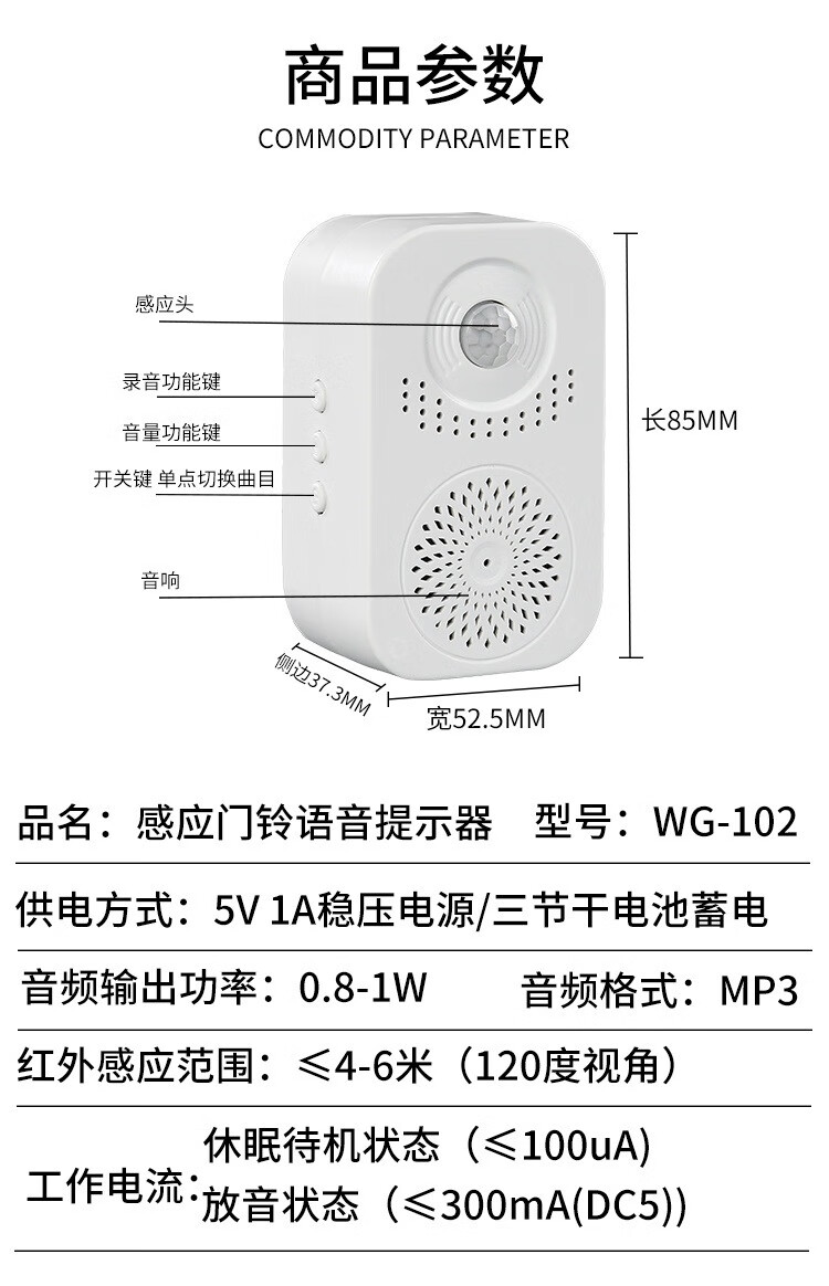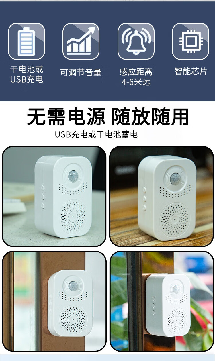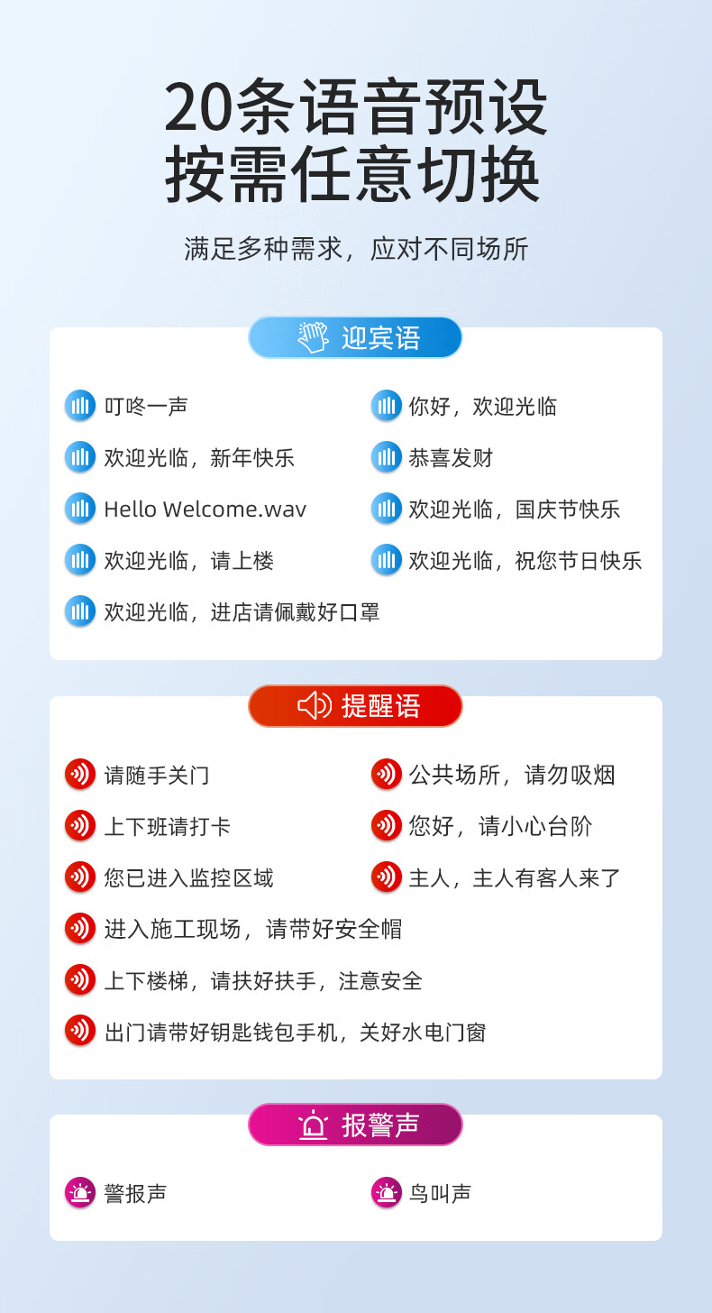 Capteur de bienvenue à la porte, invite vocale lors de l'entrée dans le magasin, dispositif de bienvenue, alarme de sonnette de supermarché, annonceur, prompteur de sonnette à induction rechargeable