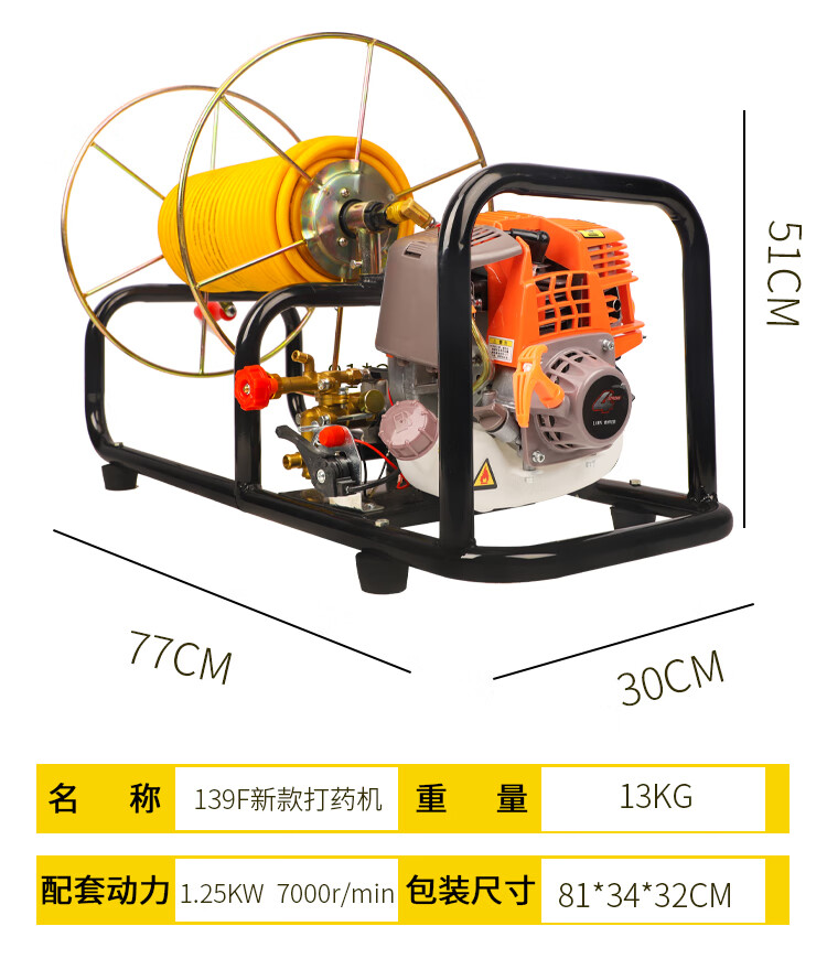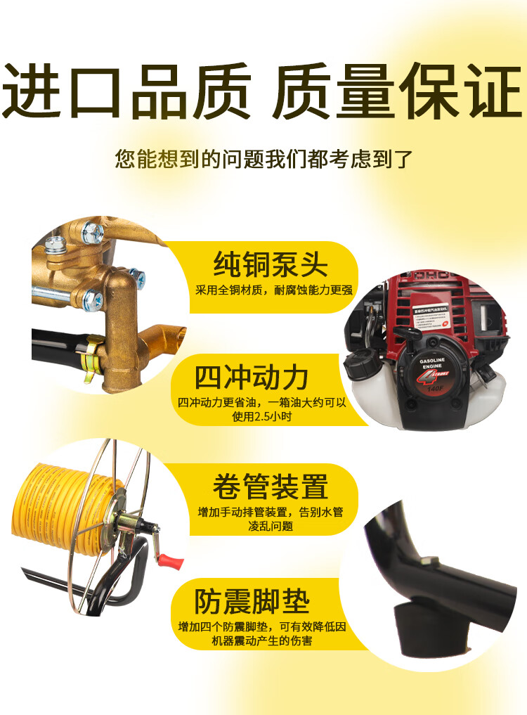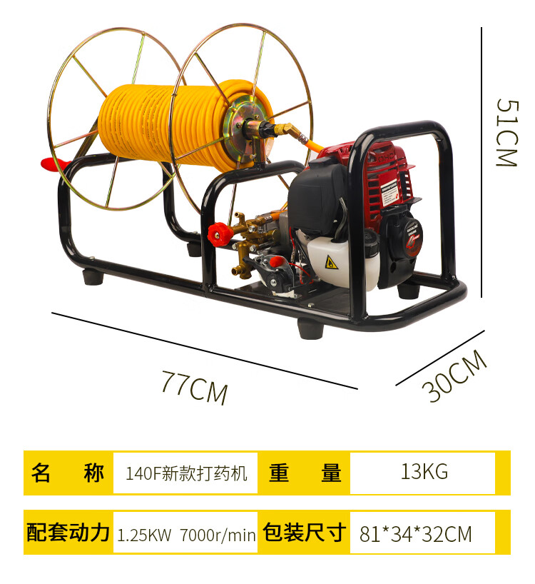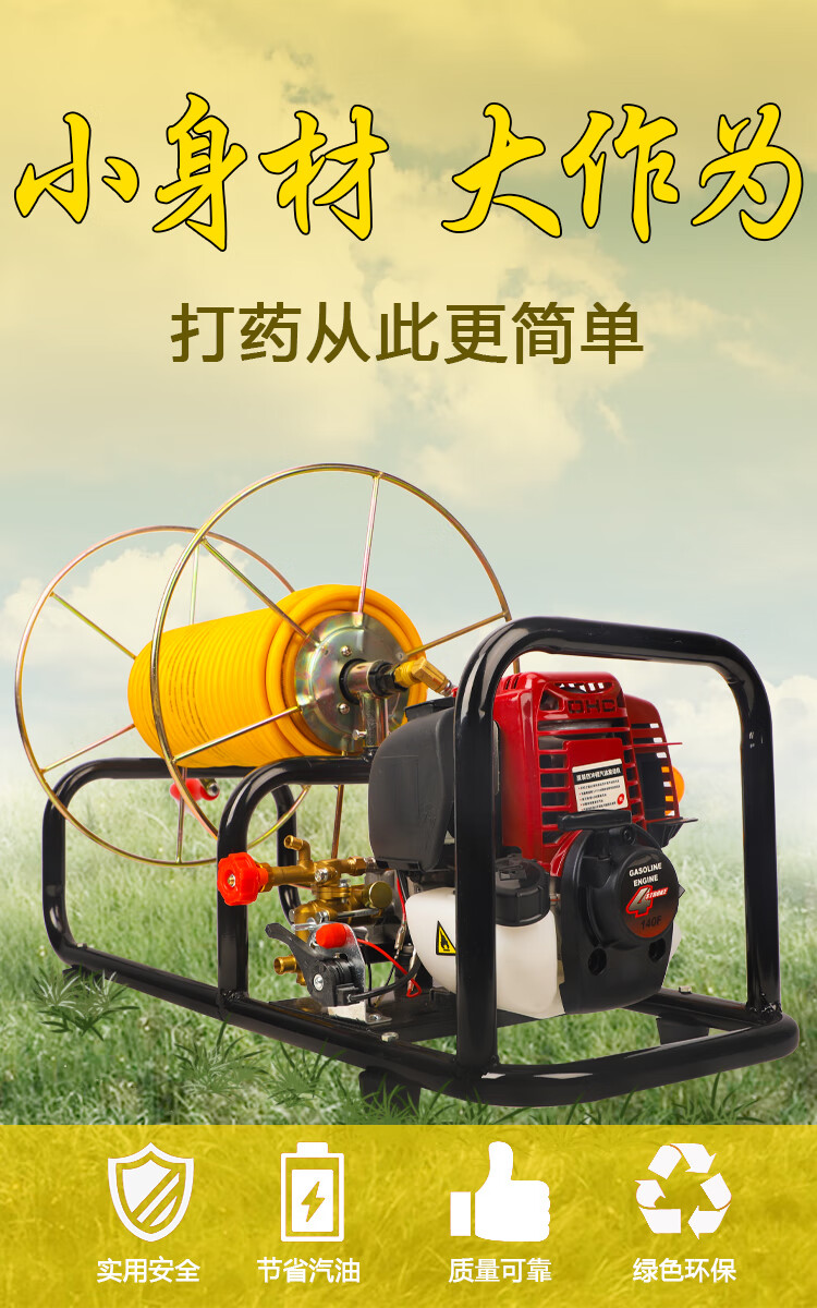 Бензиновый распылитель высокого давления, сельскохозяйственный новый тип, фруктовые деревья, небольшой артефакт для распыления пестицидов, четырехтактный распылитель с ручным управлением, 140-цилиндровая трубка, встроенная расширенная модель, без масла + трубка длиной 200 метров.