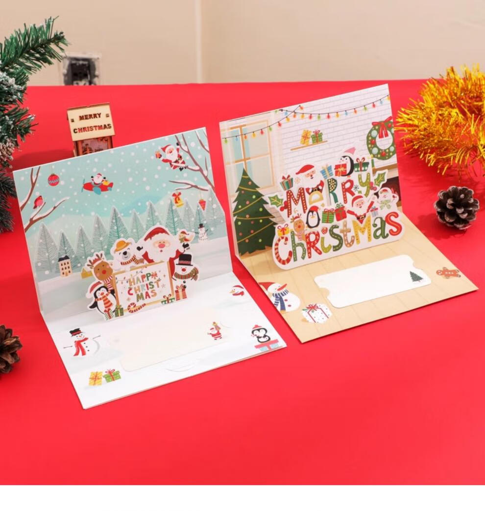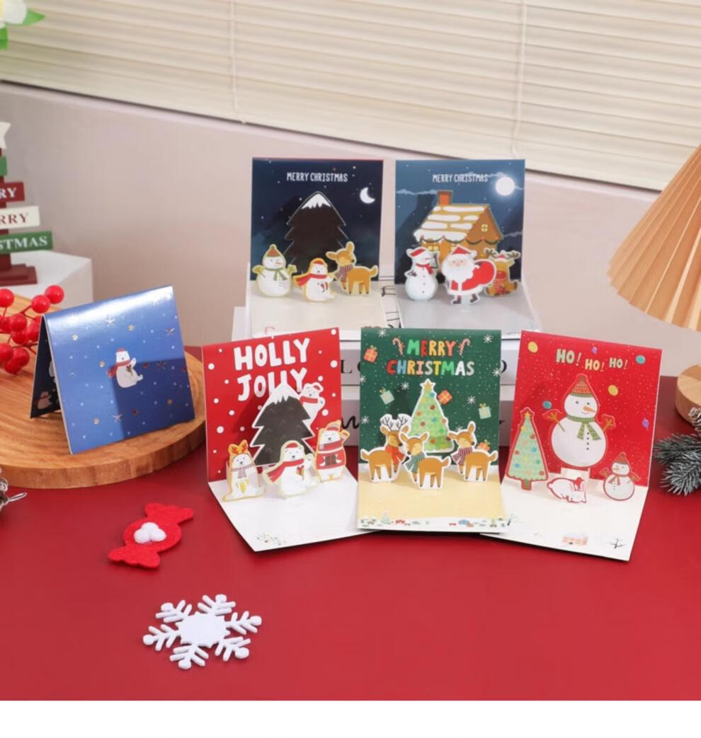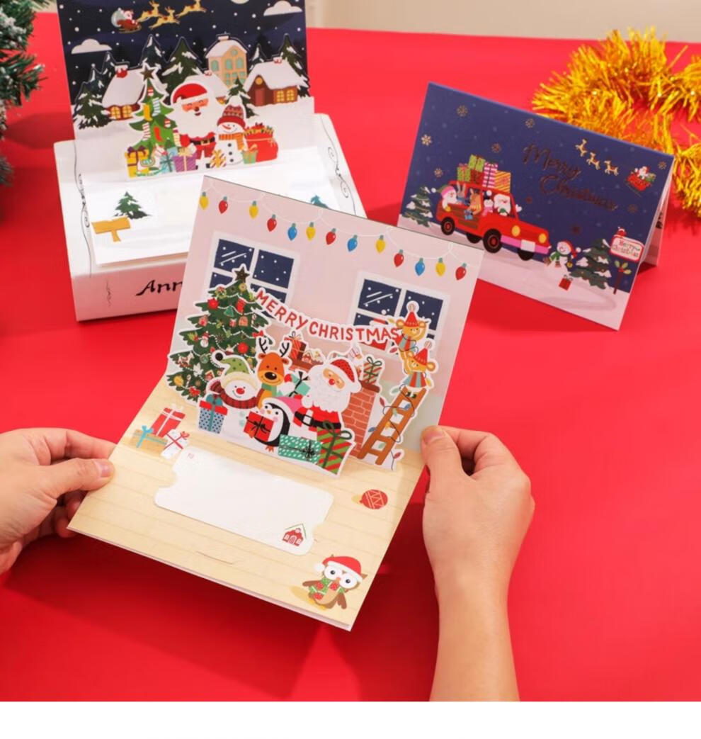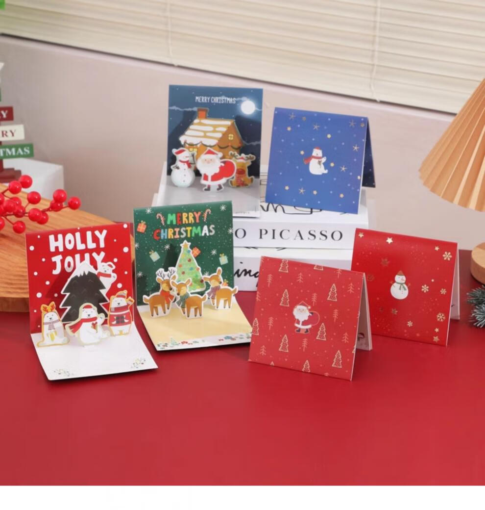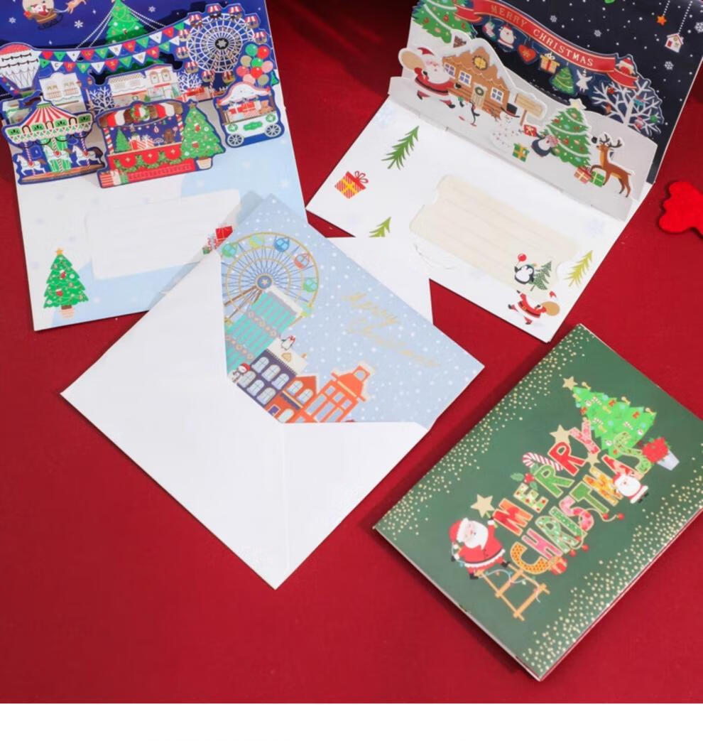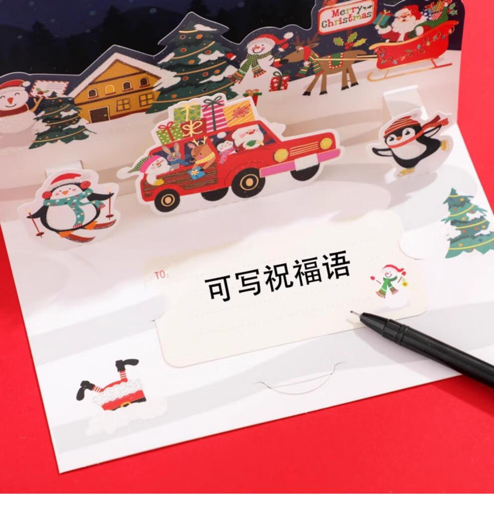 3D立体圣诞卡圣诞节贺卡礼物音乐迷你英文卡通儿童感谢祝福小卡片 A款随机6张送白色信封+:送信封