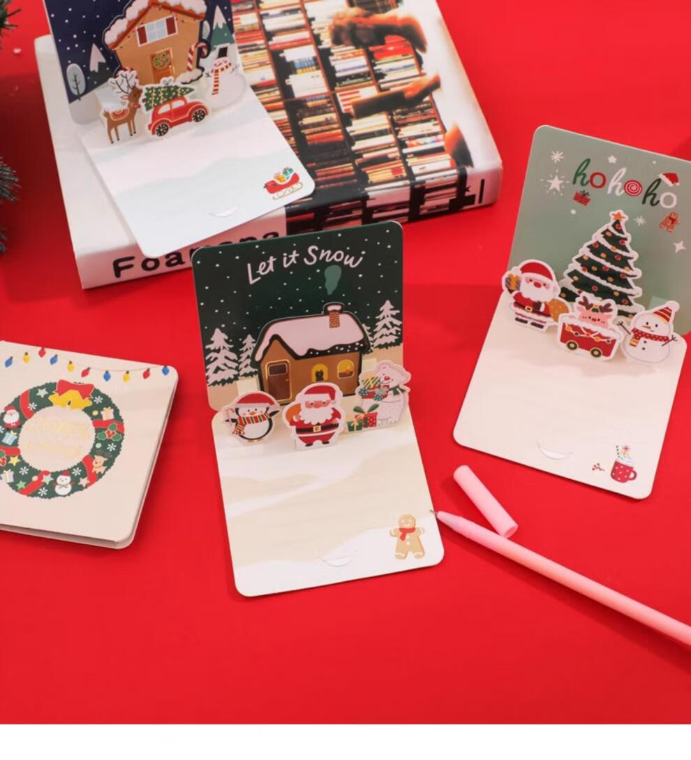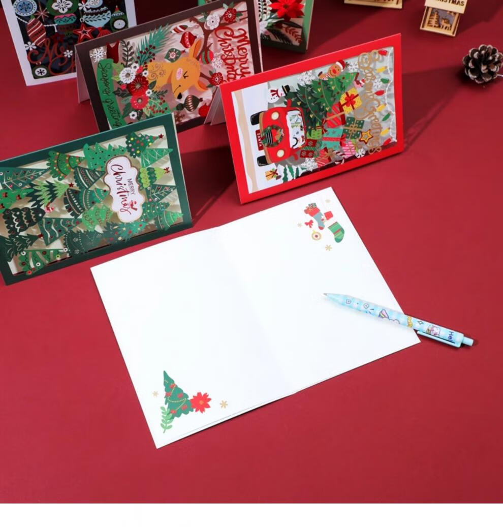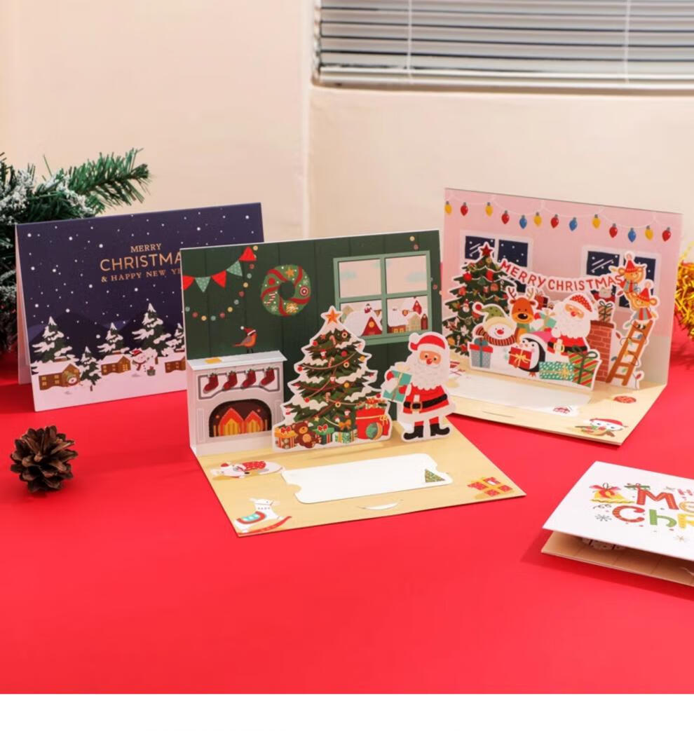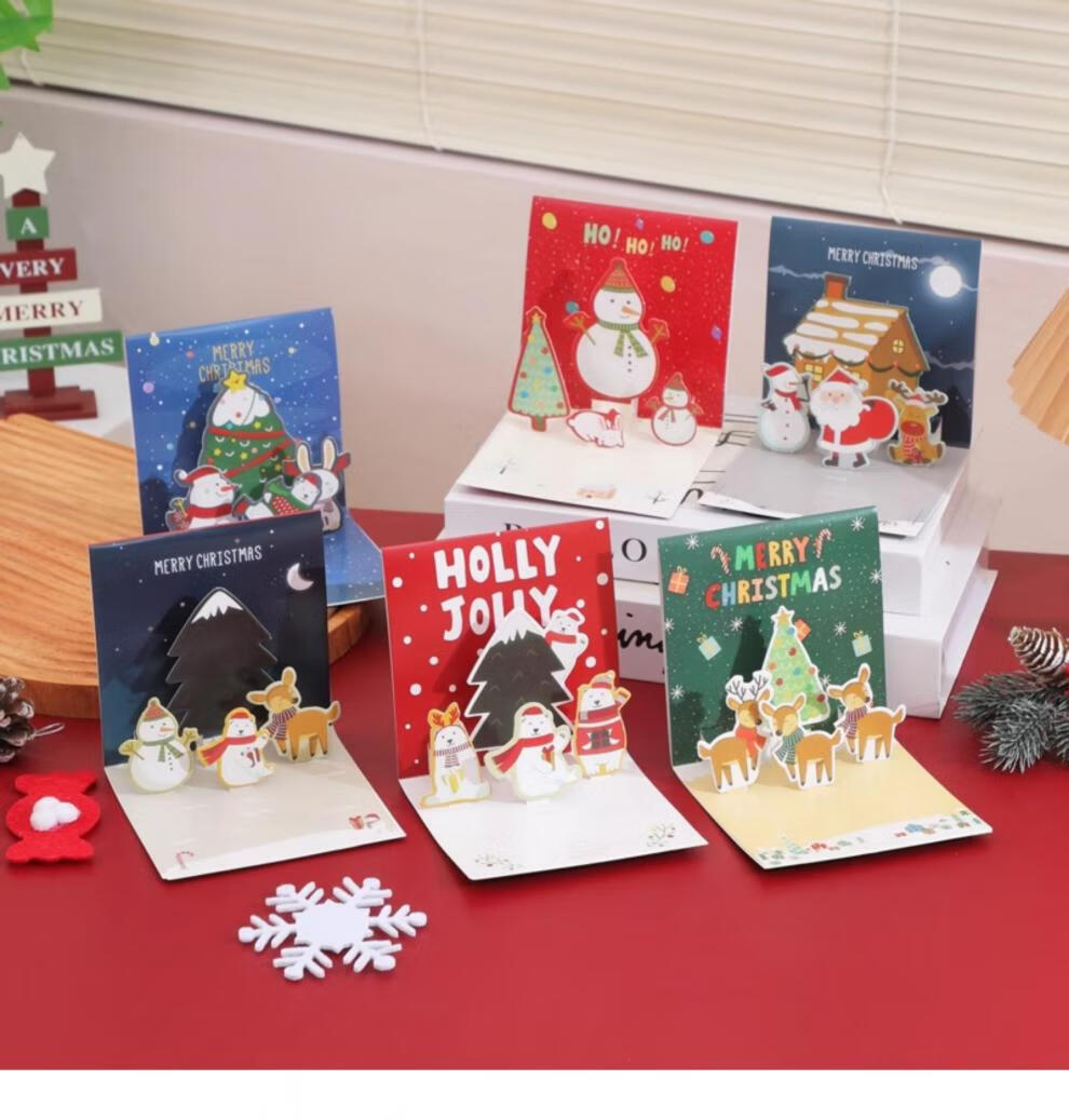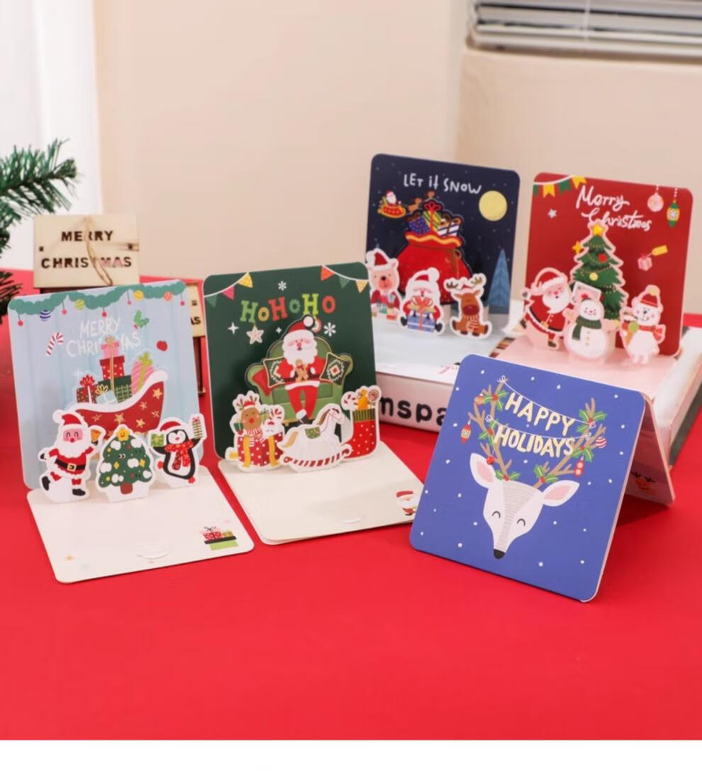 3D立体圣诞卡圣诞节贺卡礼物音乐迷你英文卡通儿童感谢祝福小卡片 A款随机6张送白色信封+:送信封
