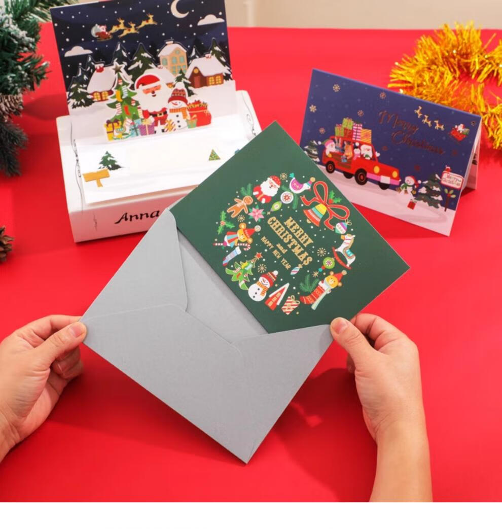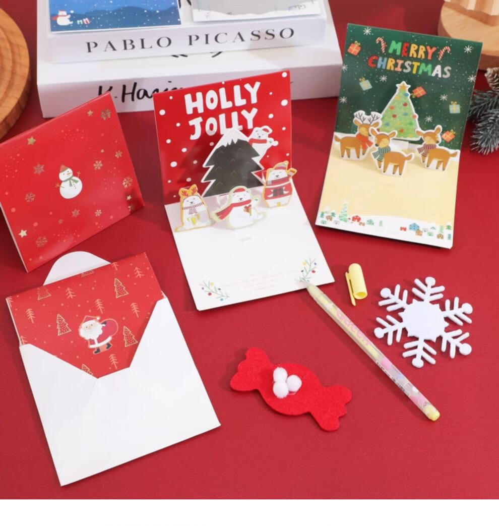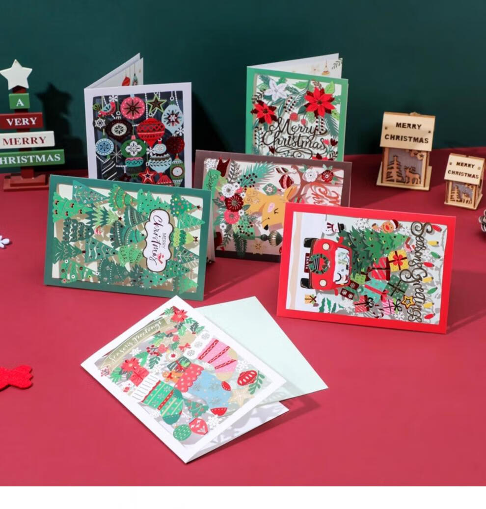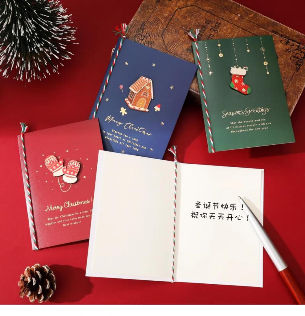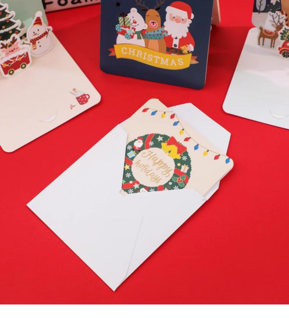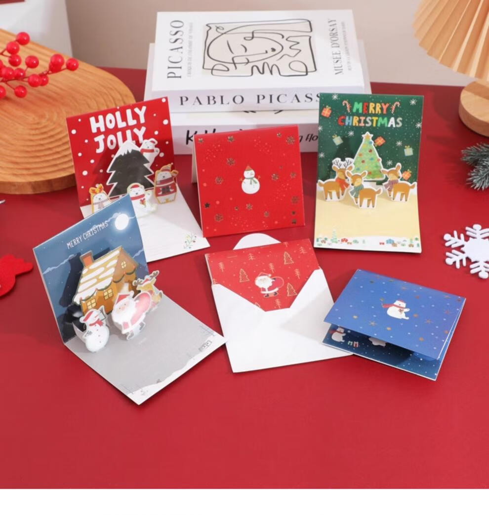 3D立体圣诞卡圣诞节贺卡礼物音乐迷你英文卡通儿童感谢祝福小卡片 A款随机6张送白色信封+:送信封