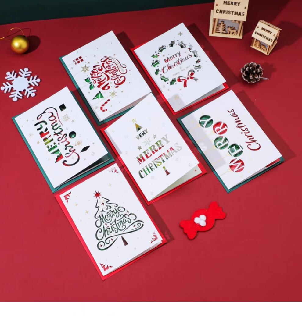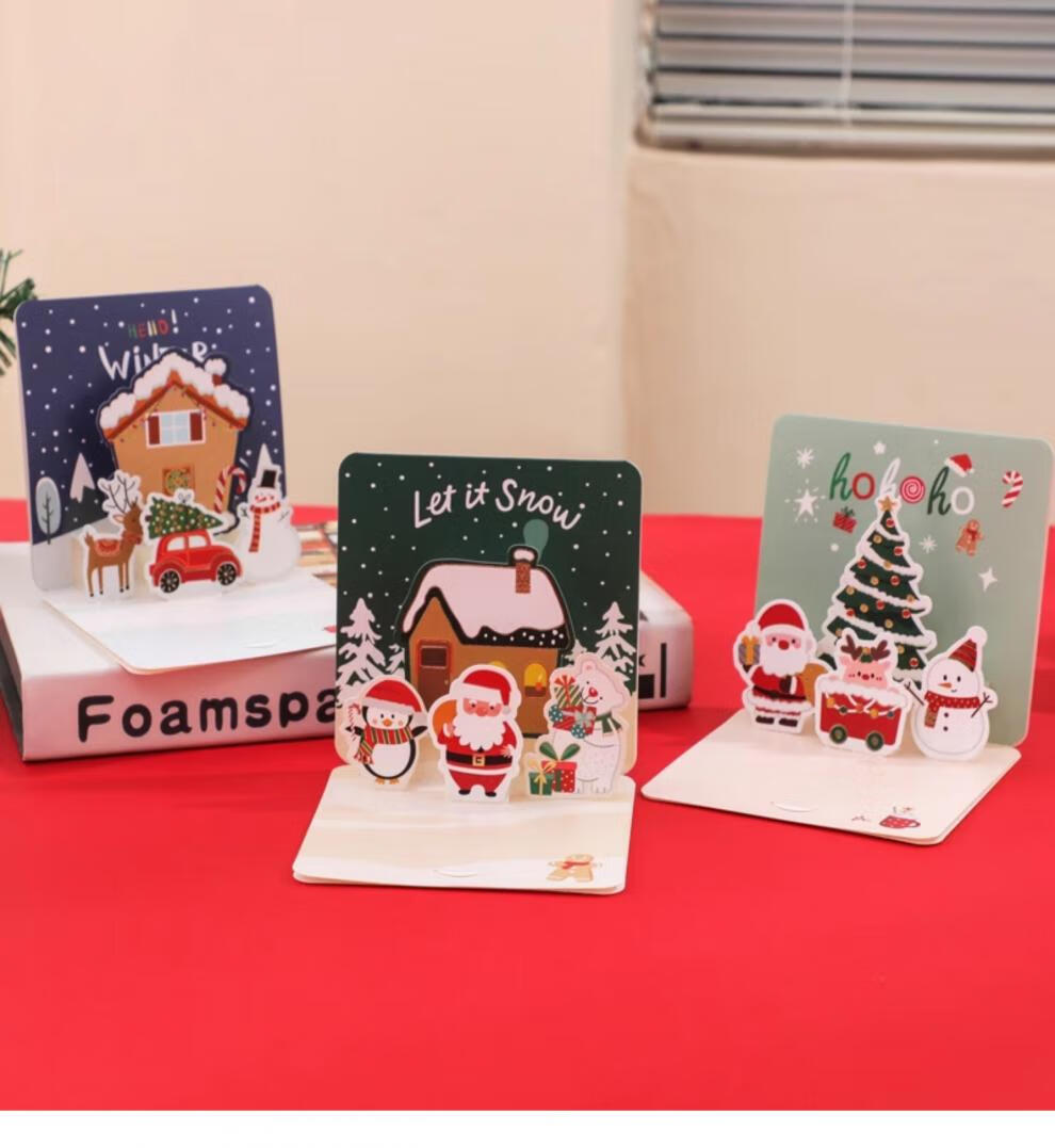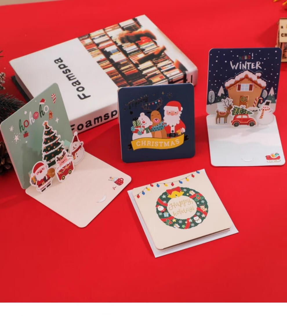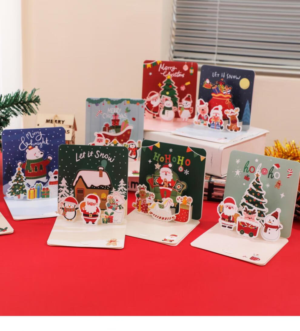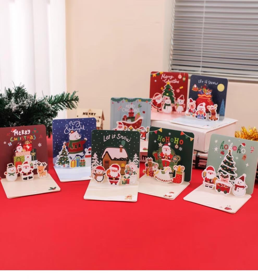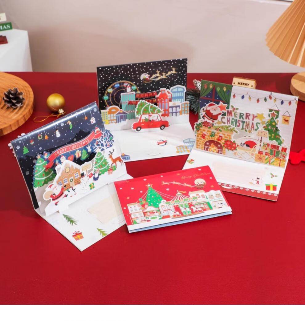3D立体圣诞卡圣诞节贺卡礼物音乐迷你英文卡通儿童感谢祝福小卡片 A款随机6张送白色信封+:送信封