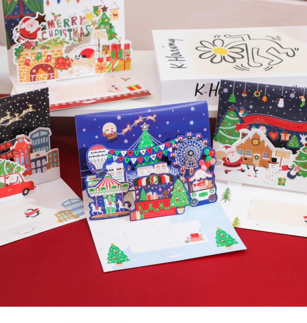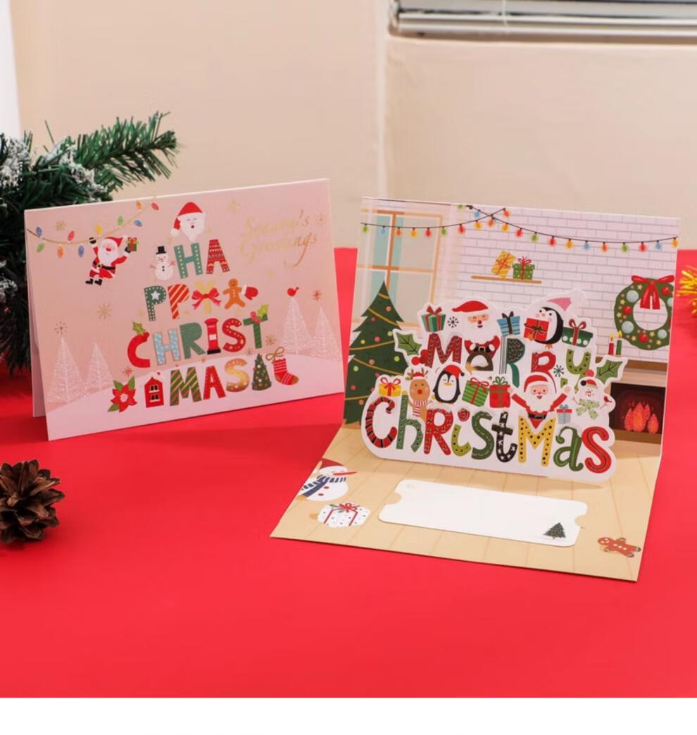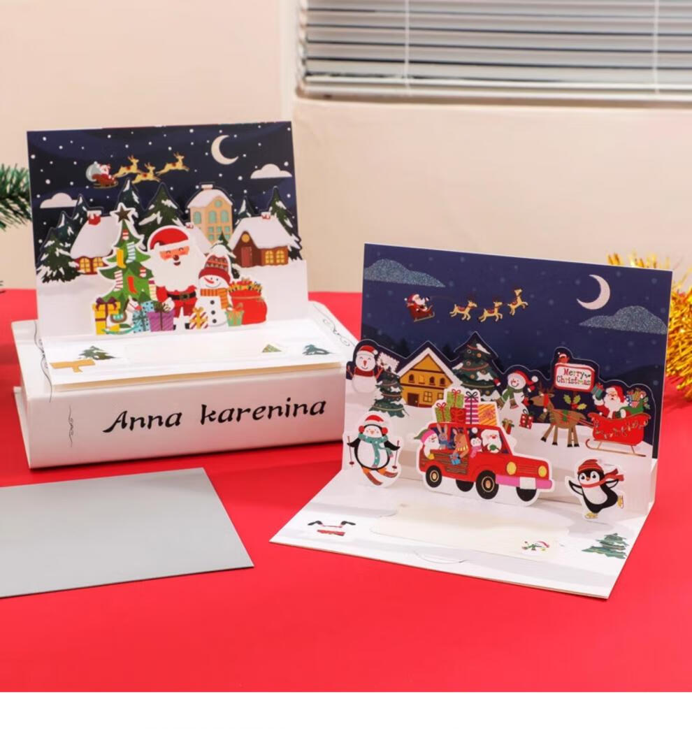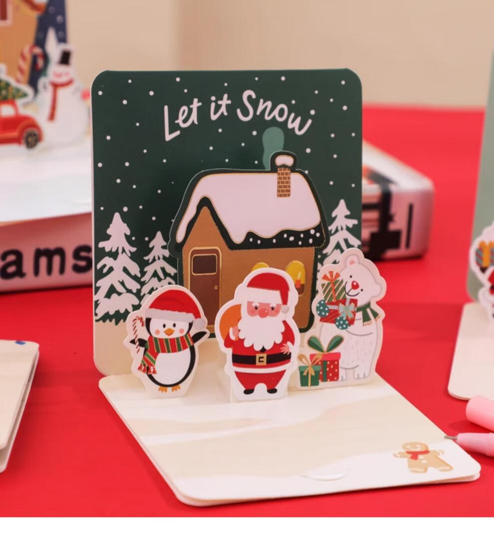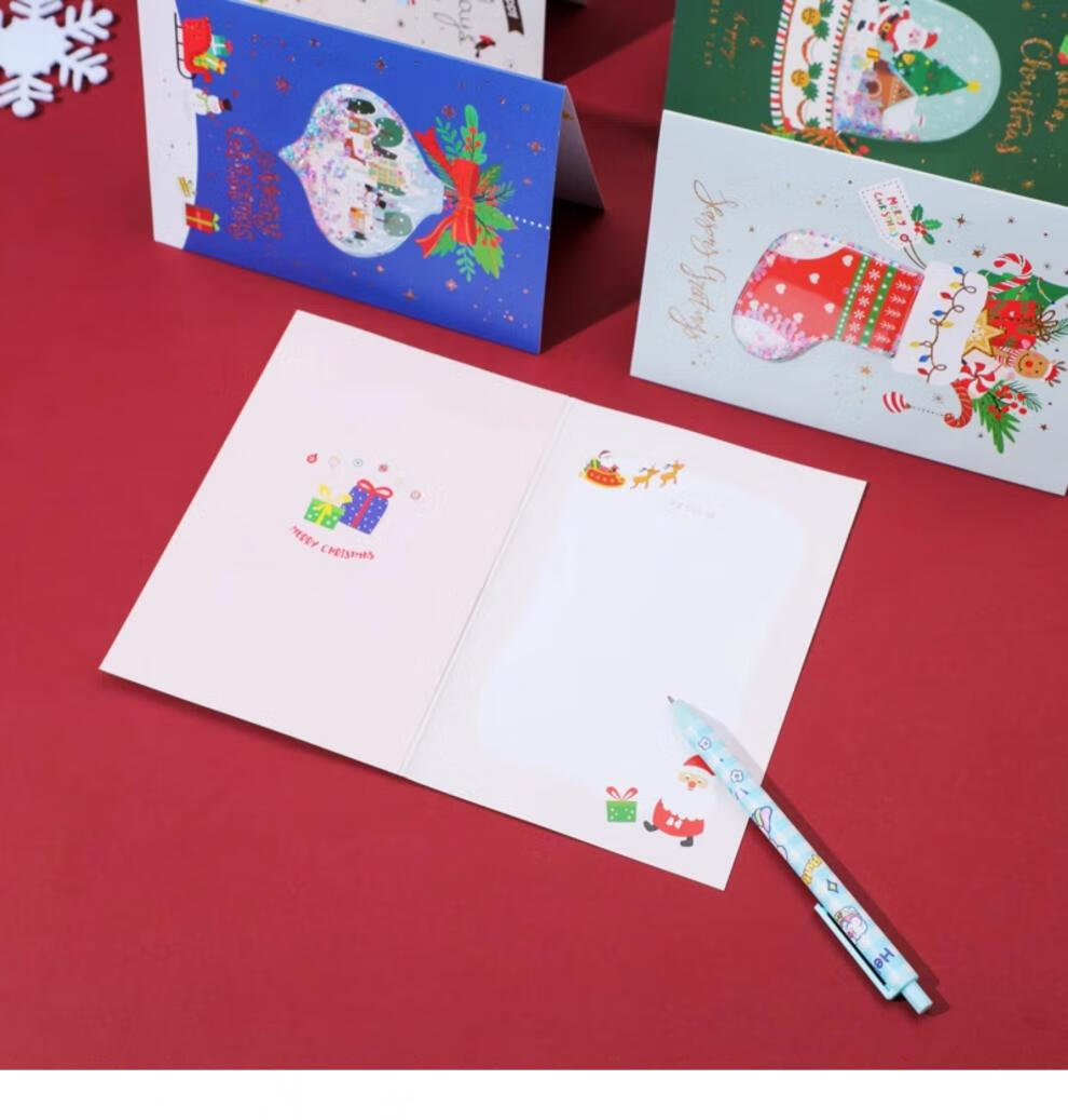 3D立体圣诞卡圣诞节贺卡礼物音乐迷你英文卡通儿童感谢祝福小卡片 A款随机6张送白色信封+:送信封