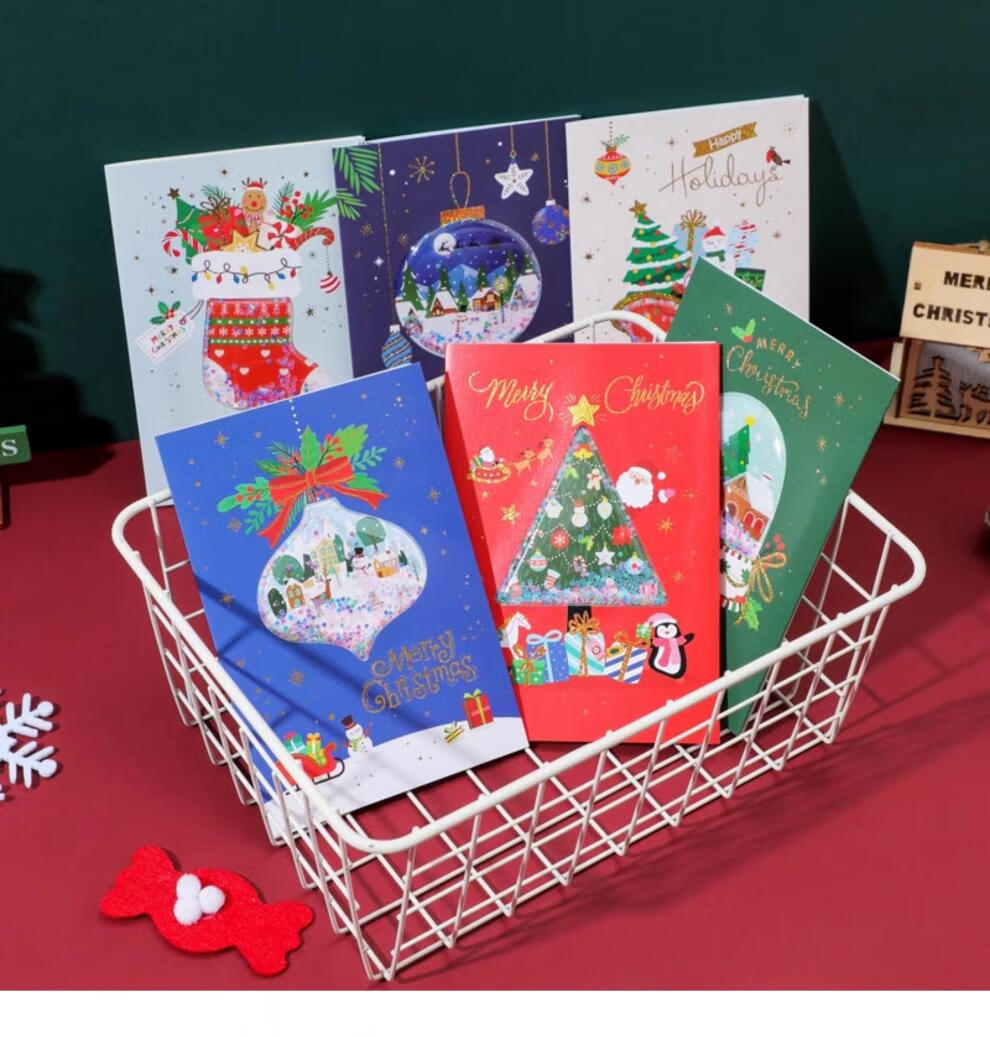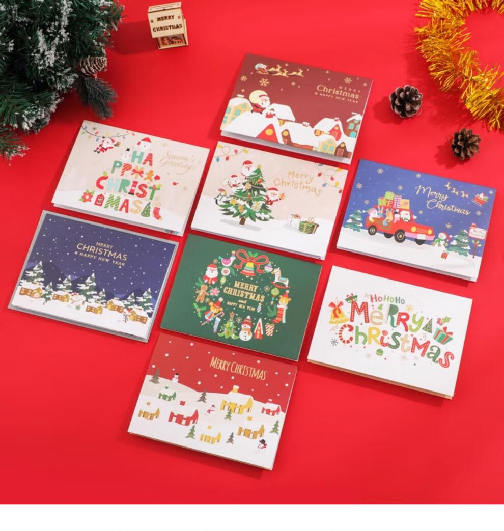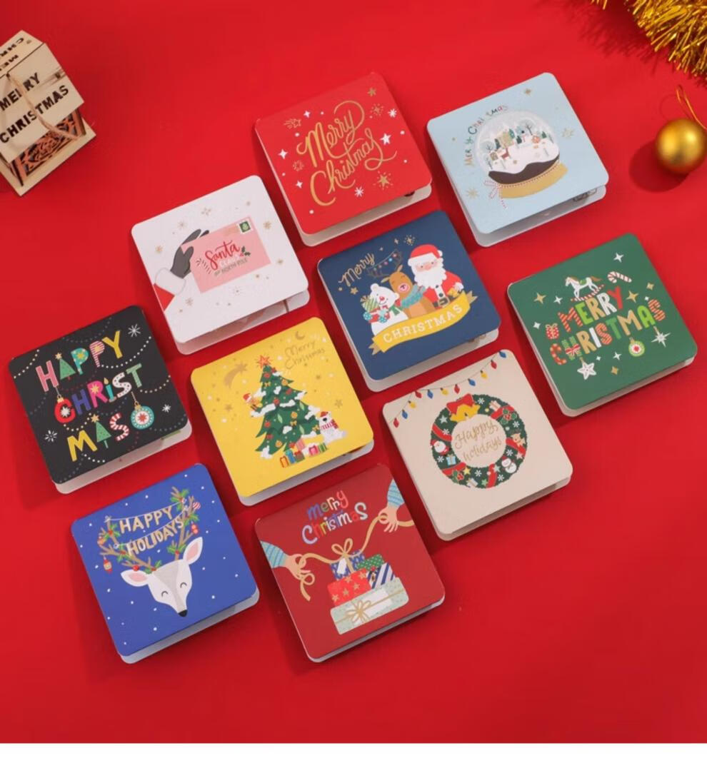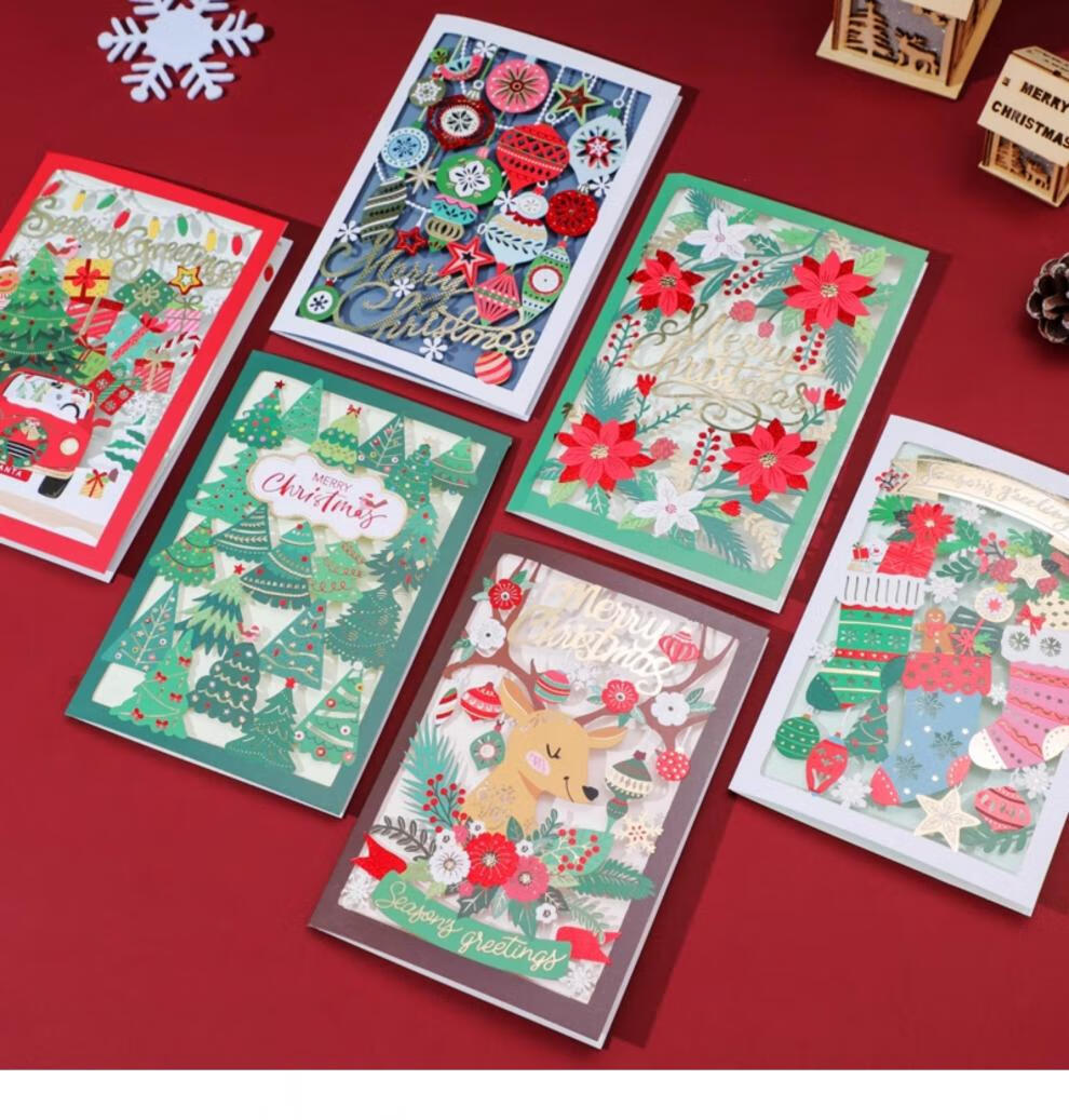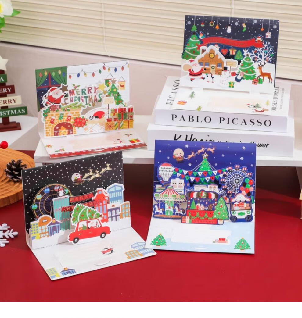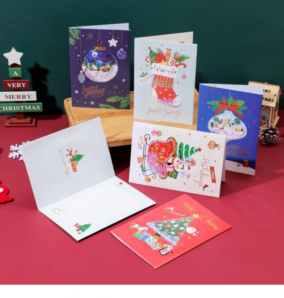 3D立体圣诞卡圣诞节贺卡礼物音乐迷你英文卡通儿童感谢祝福小卡片 A款随机6张送白色信封+:送信封