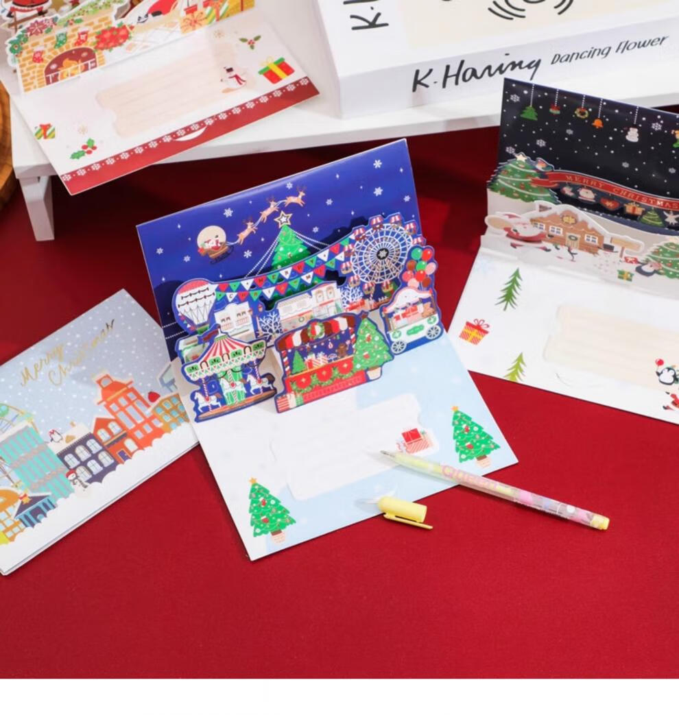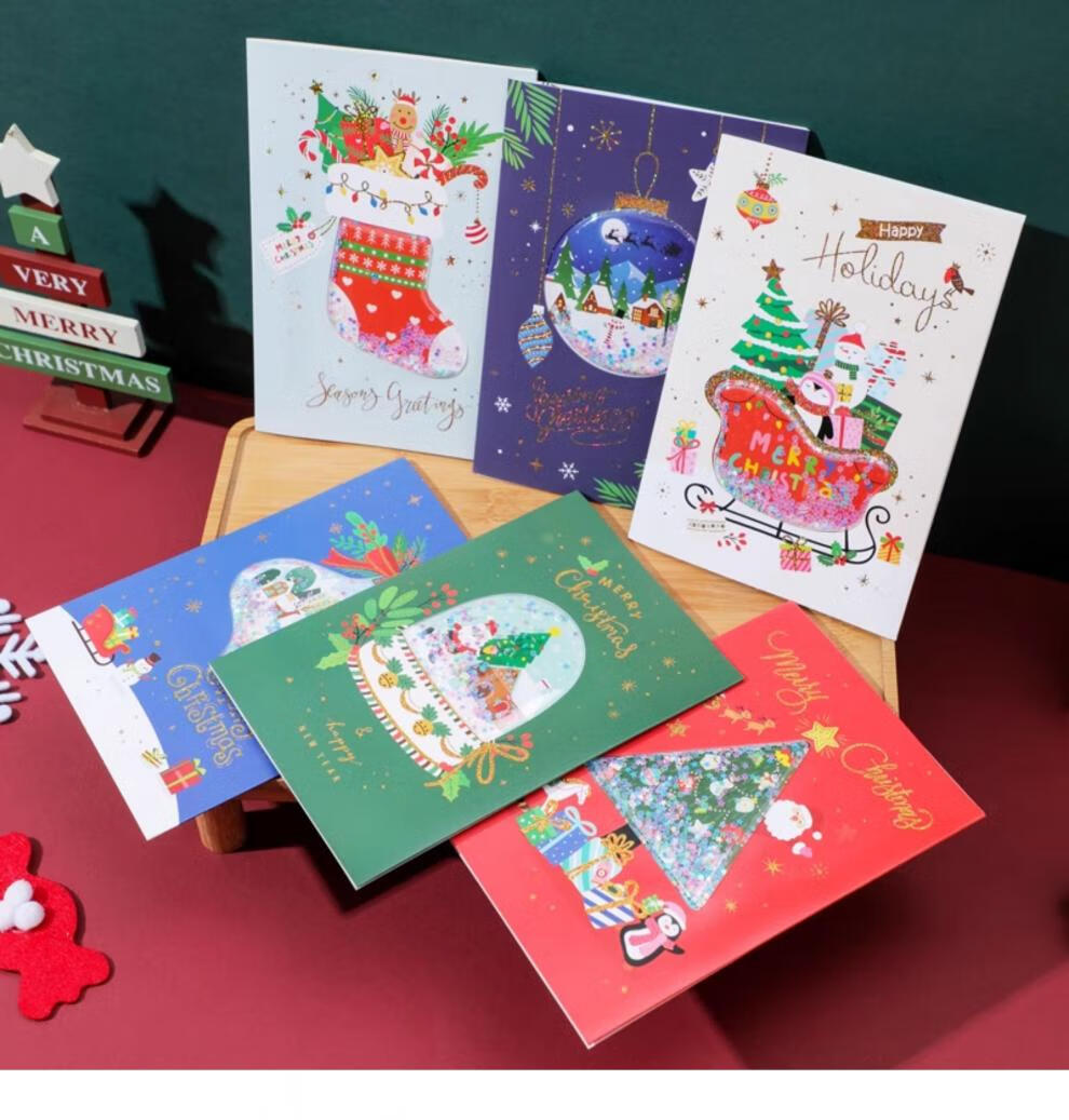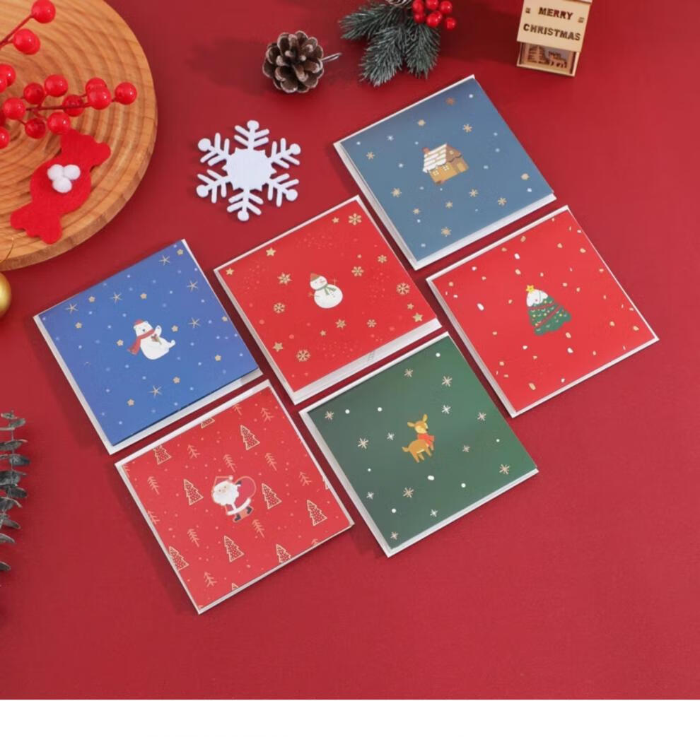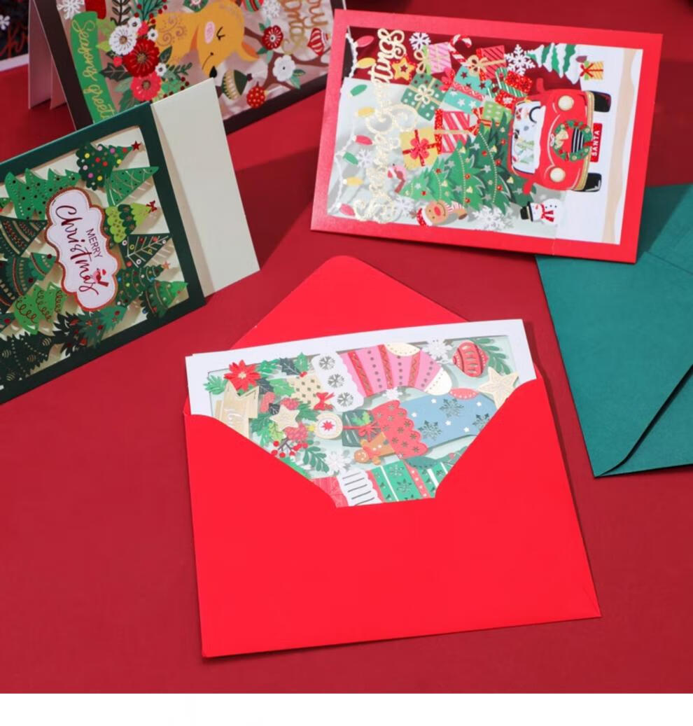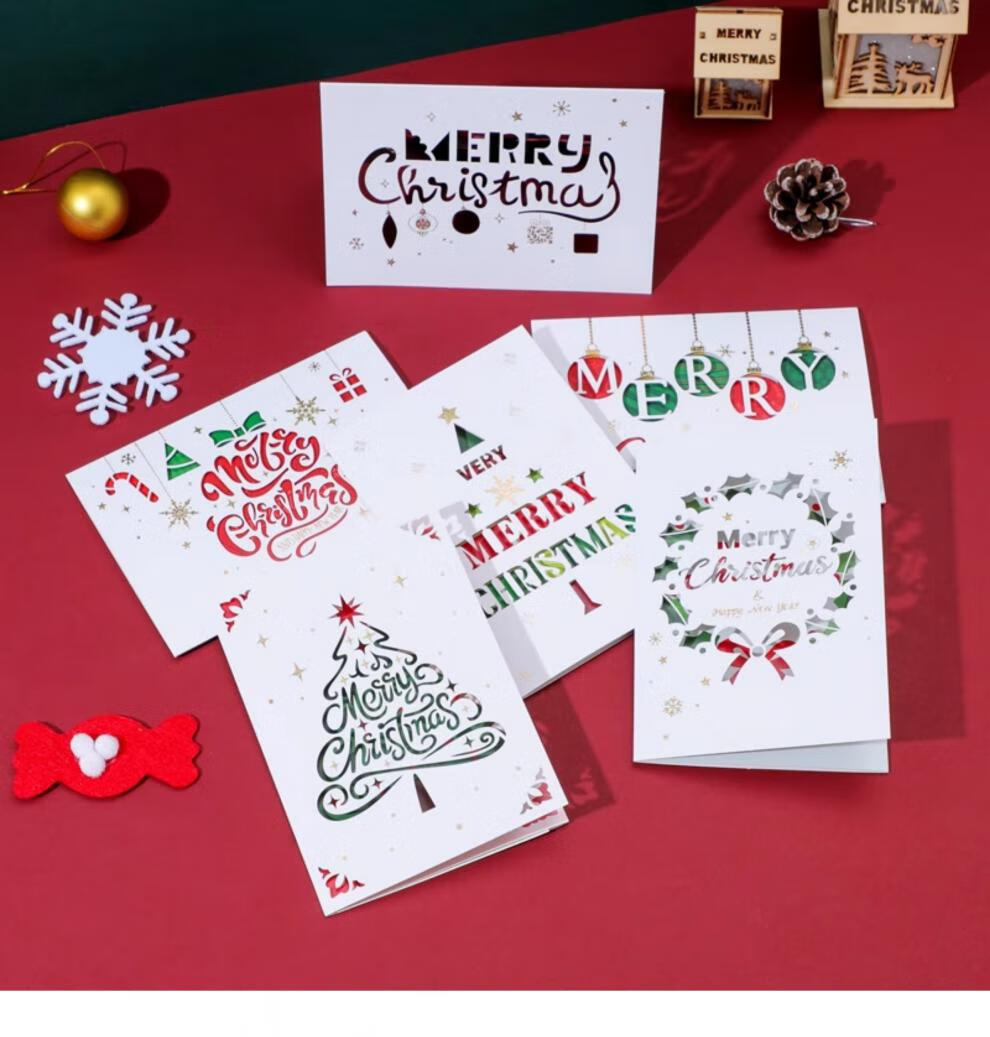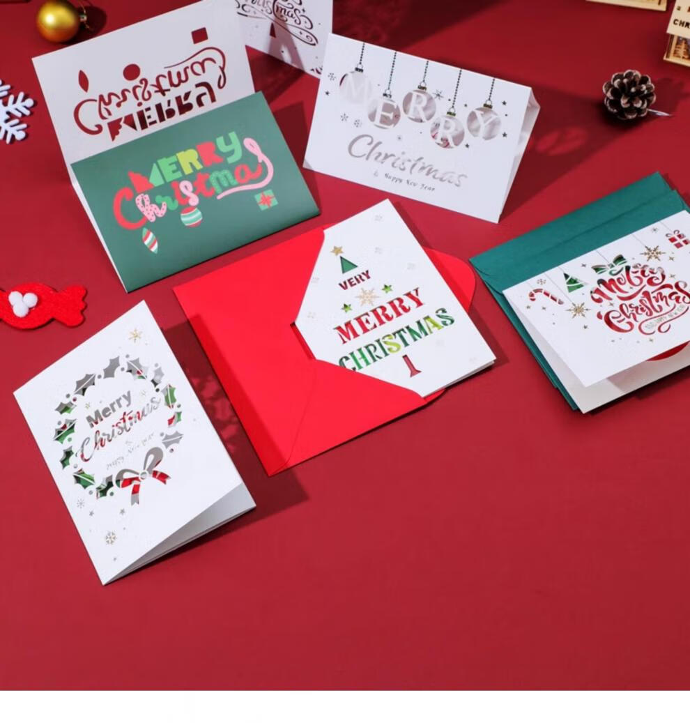 3D立体圣诞卡圣诞节贺卡礼物音乐迷你英文卡通儿童感谢祝福小卡片 A款随机6张送白色信封+:送信封