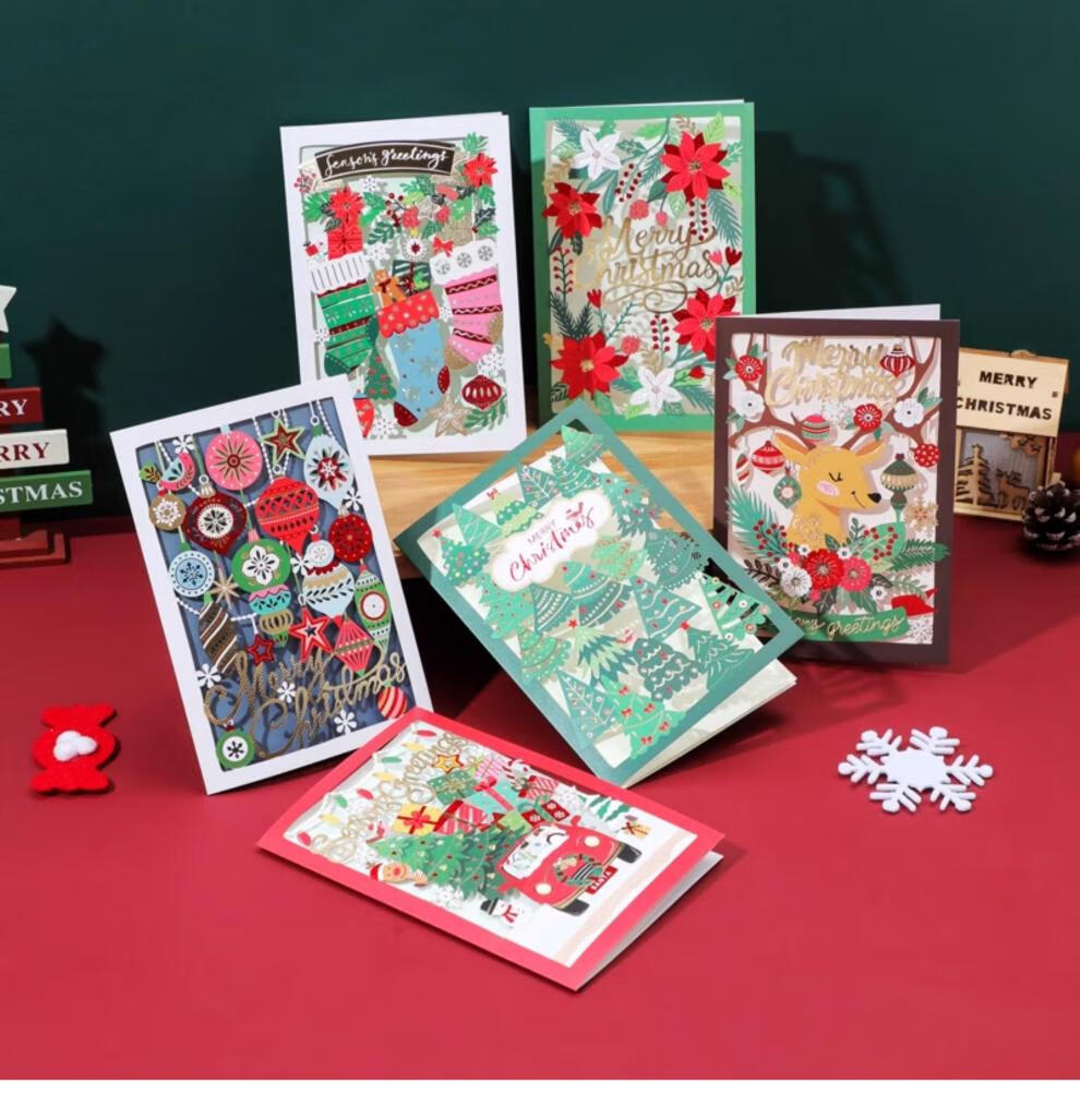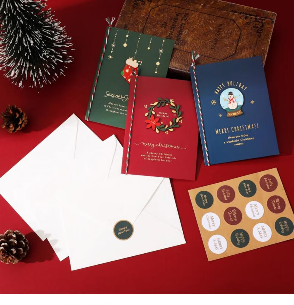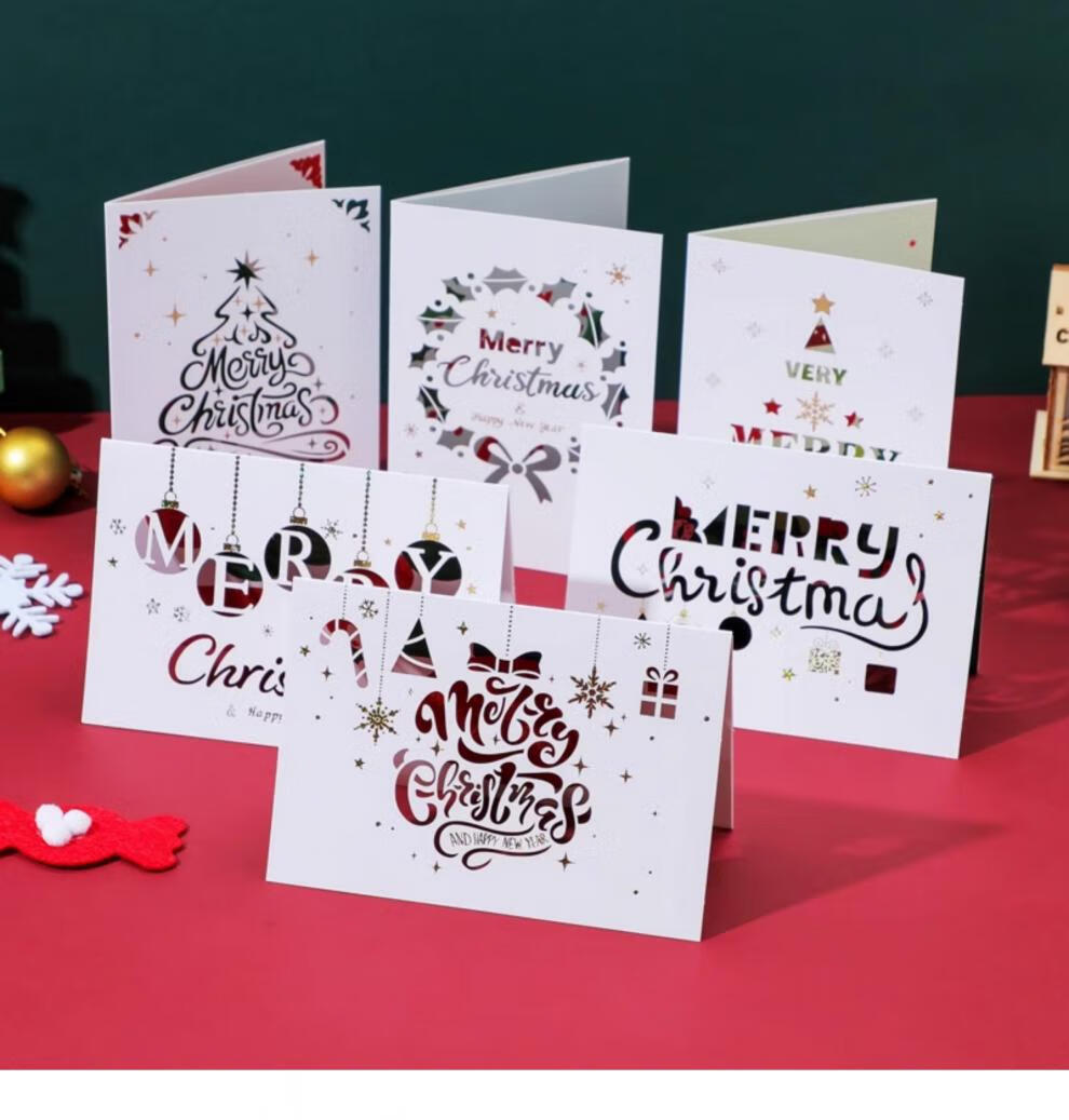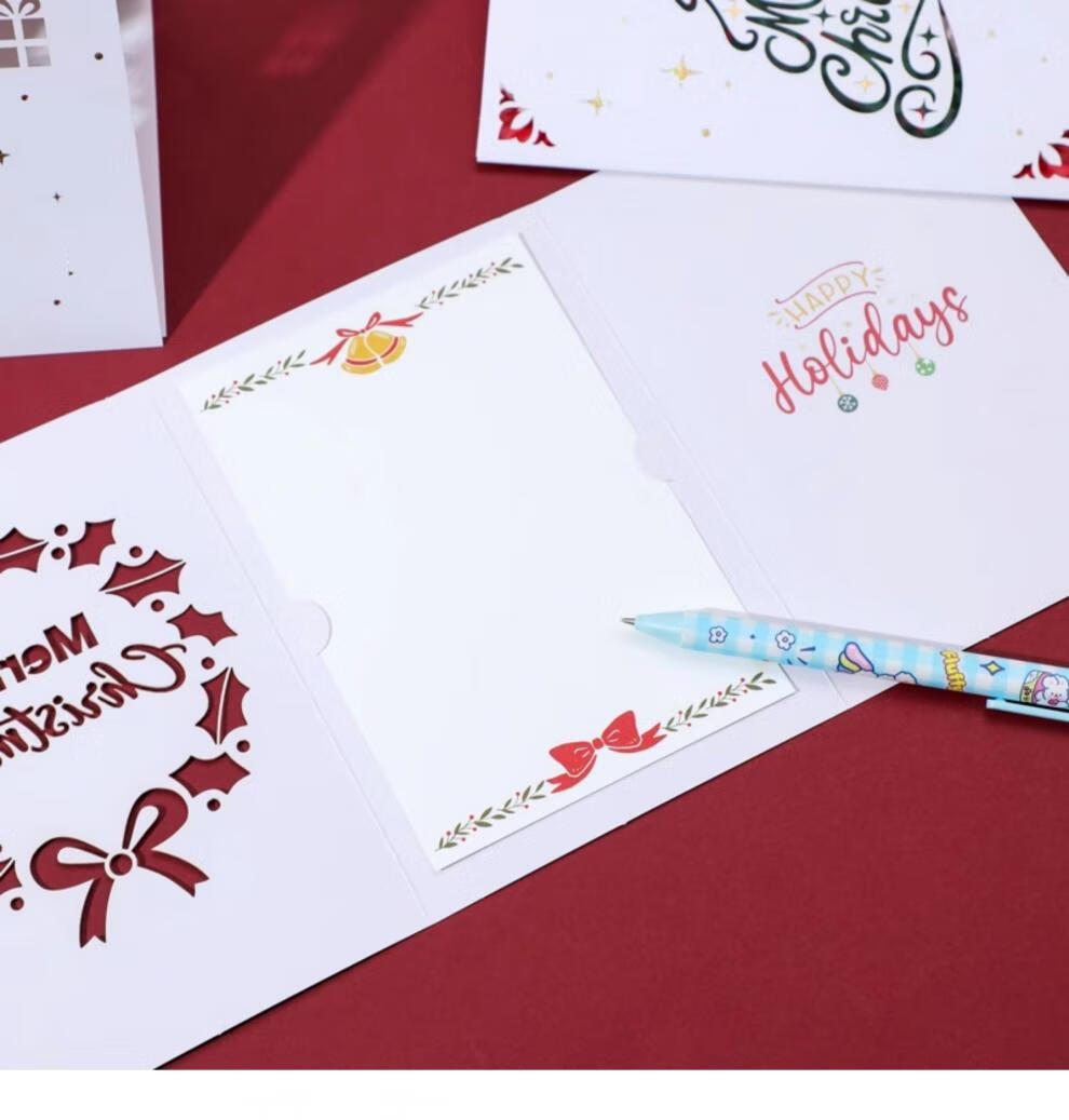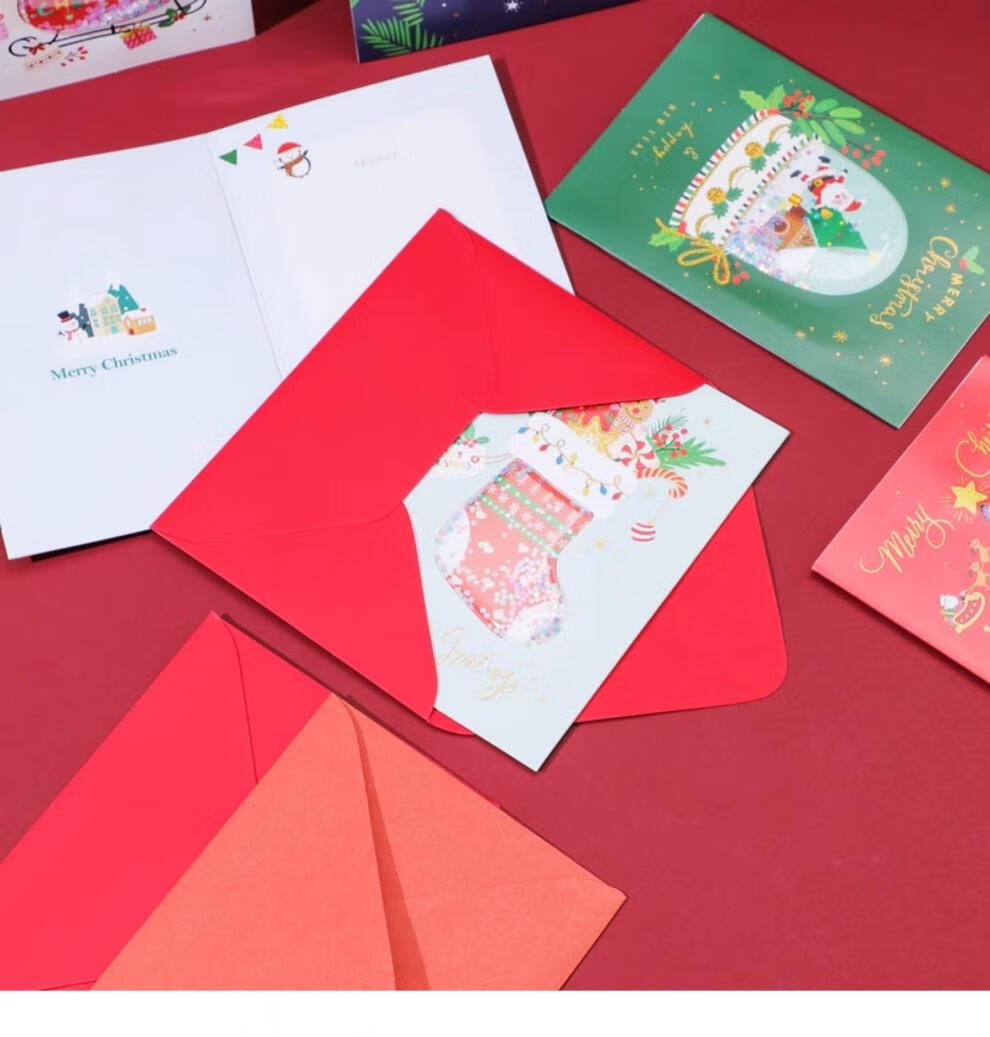 3D立体圣诞卡圣诞节贺卡礼物音乐迷你英文卡通儿童感谢祝福小卡片 A款随机6张送白色信封+:送信封