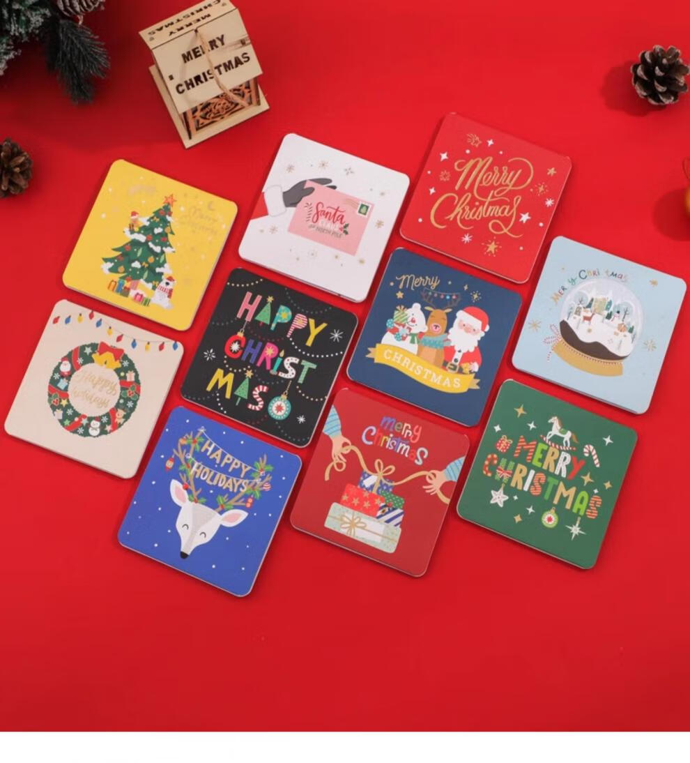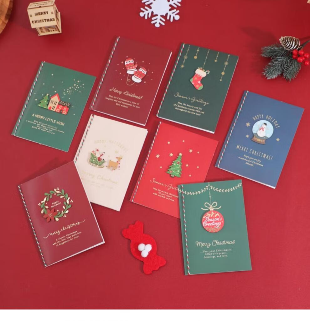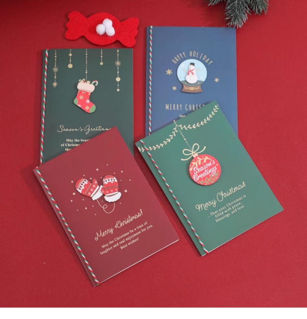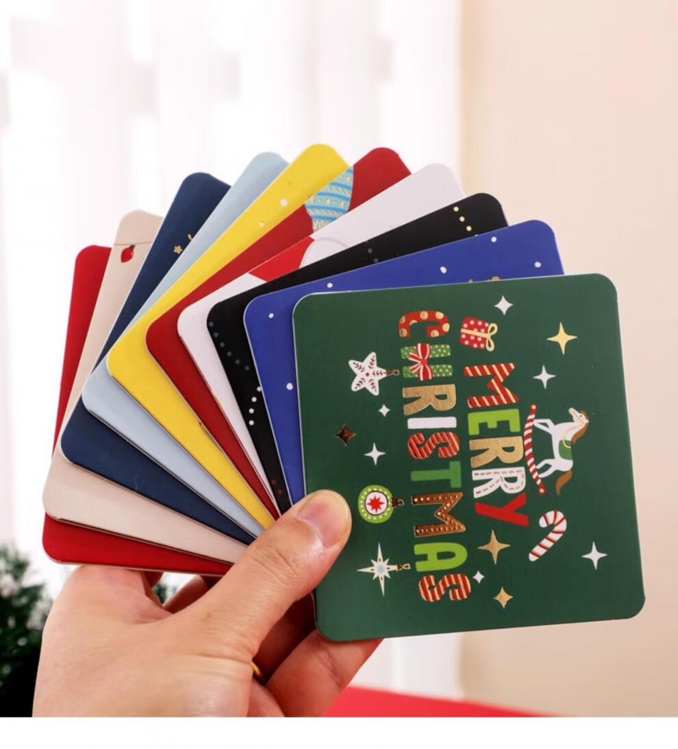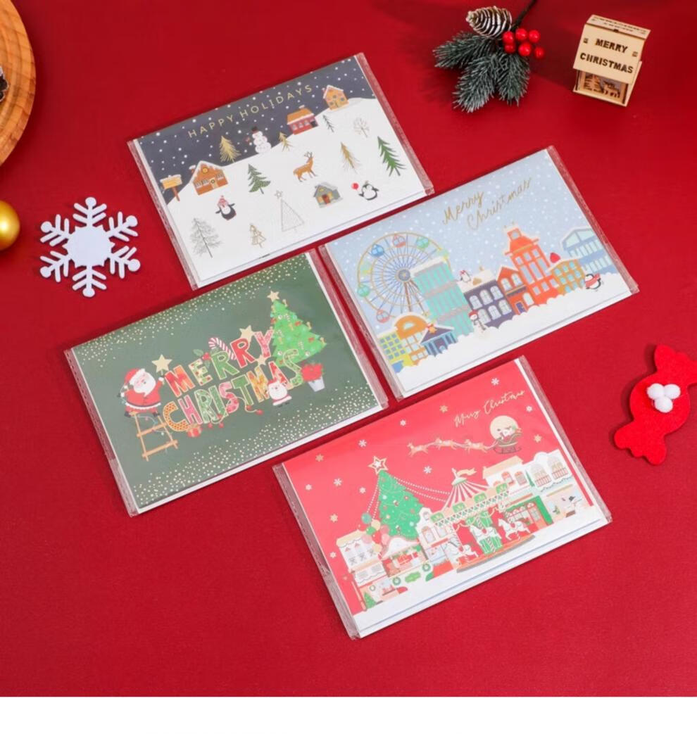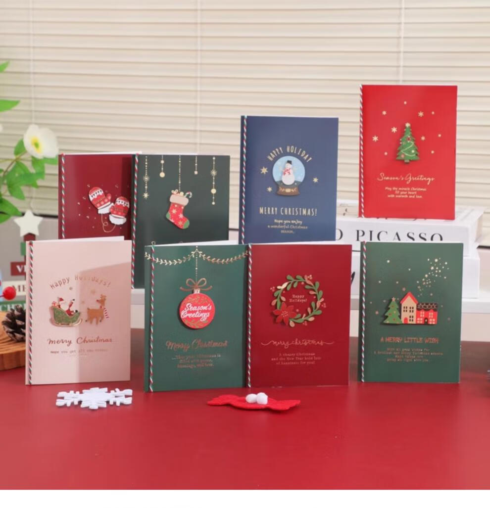 3D立体圣诞卡圣诞节贺卡礼物音乐迷你英文卡通儿童感谢祝福小卡片 A款随机6张送白色信封+:送信封